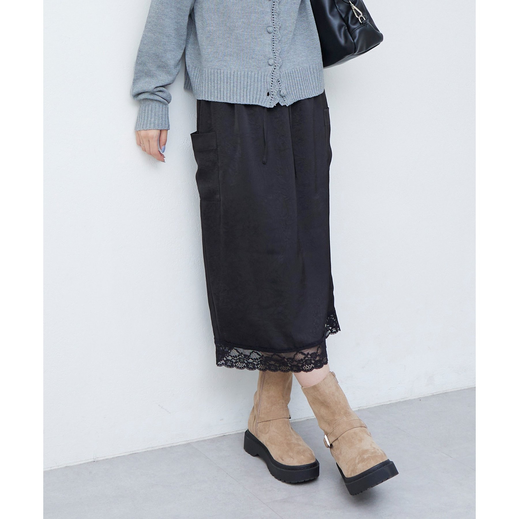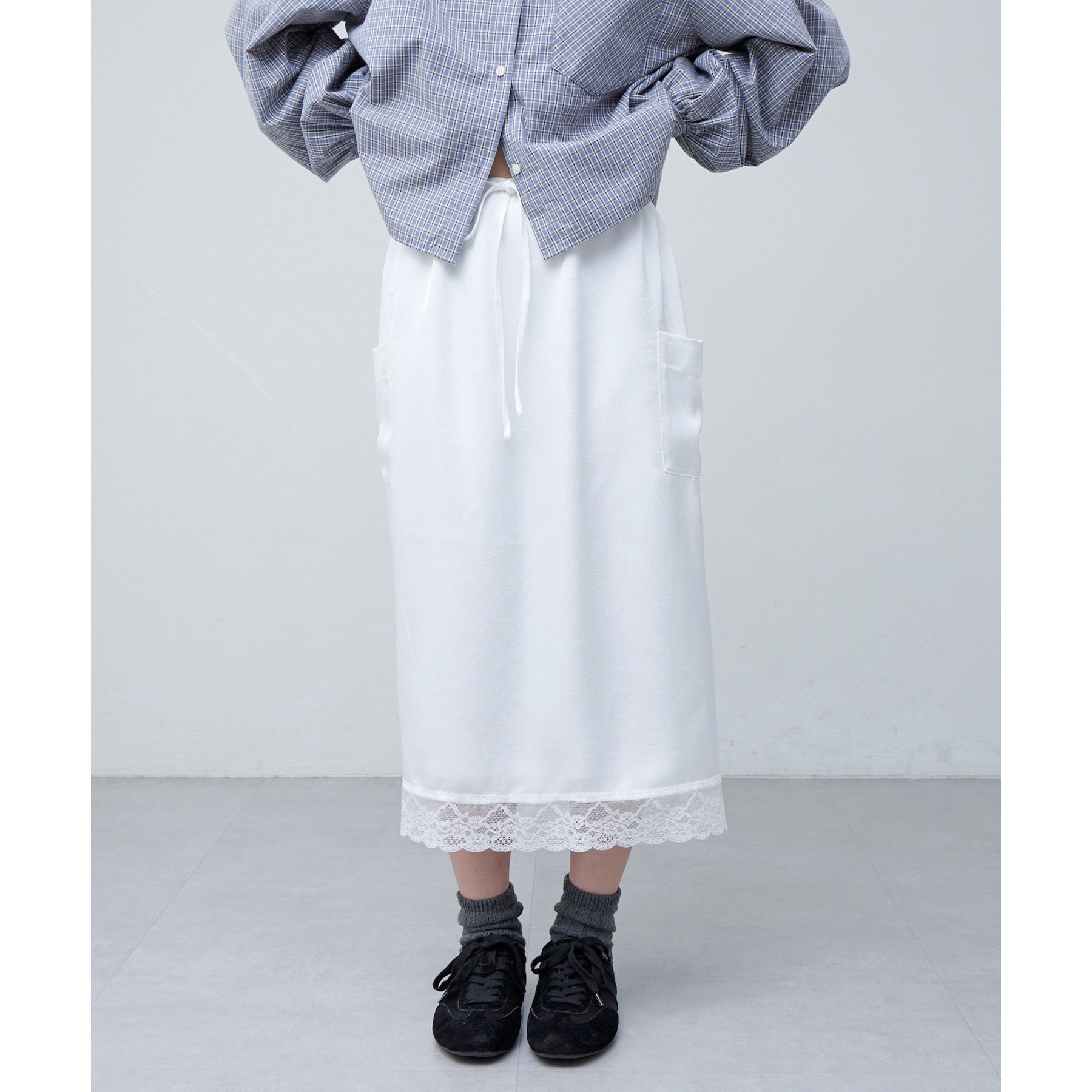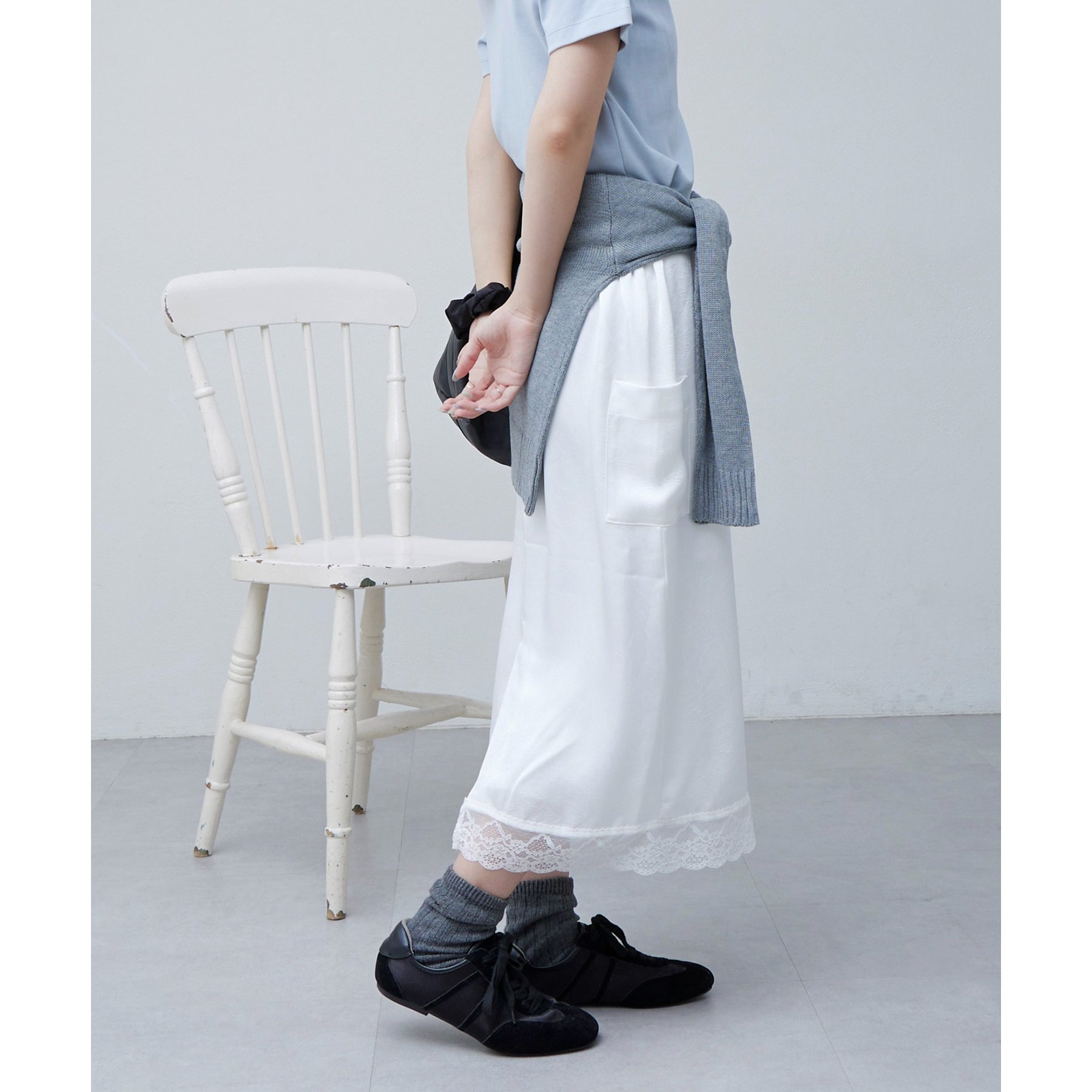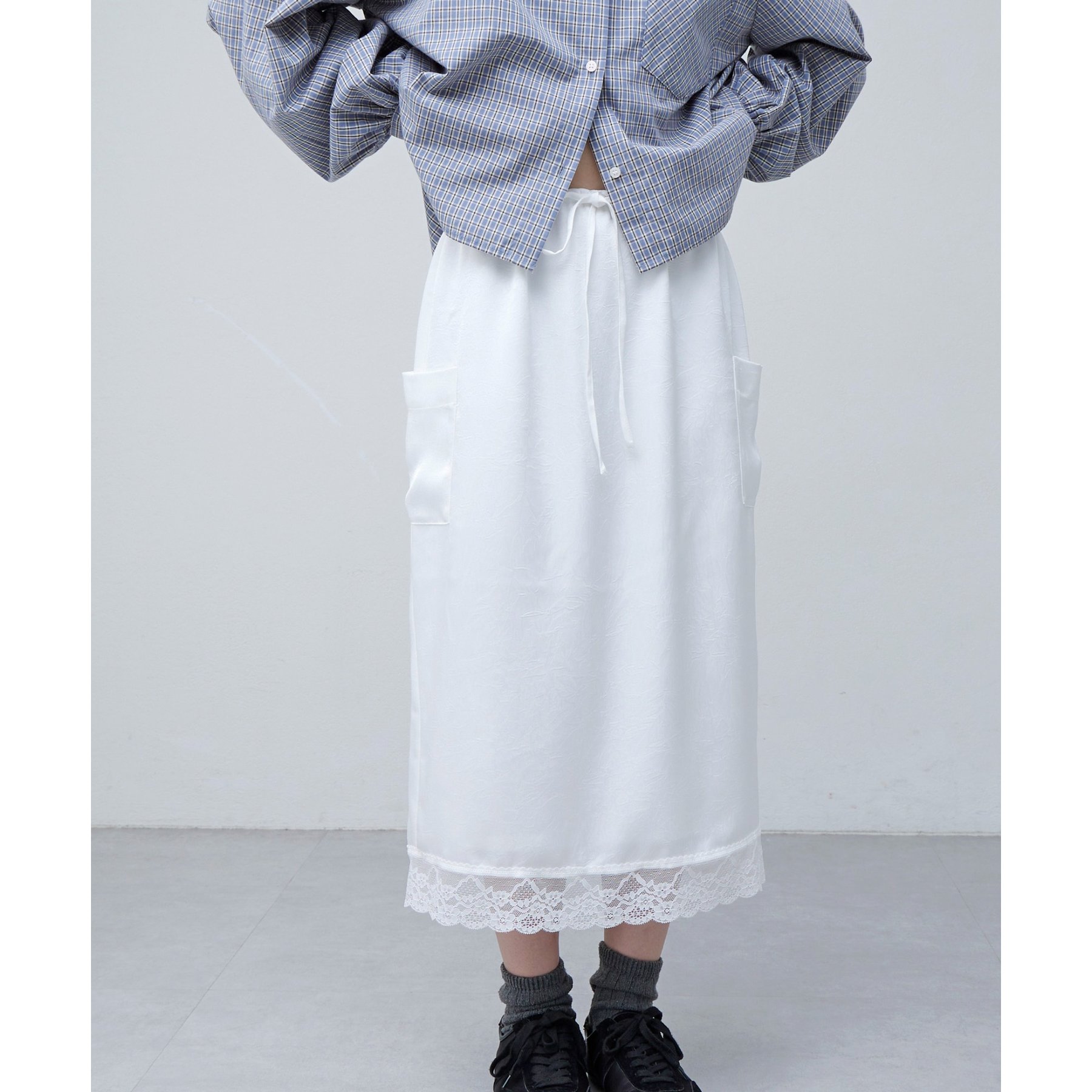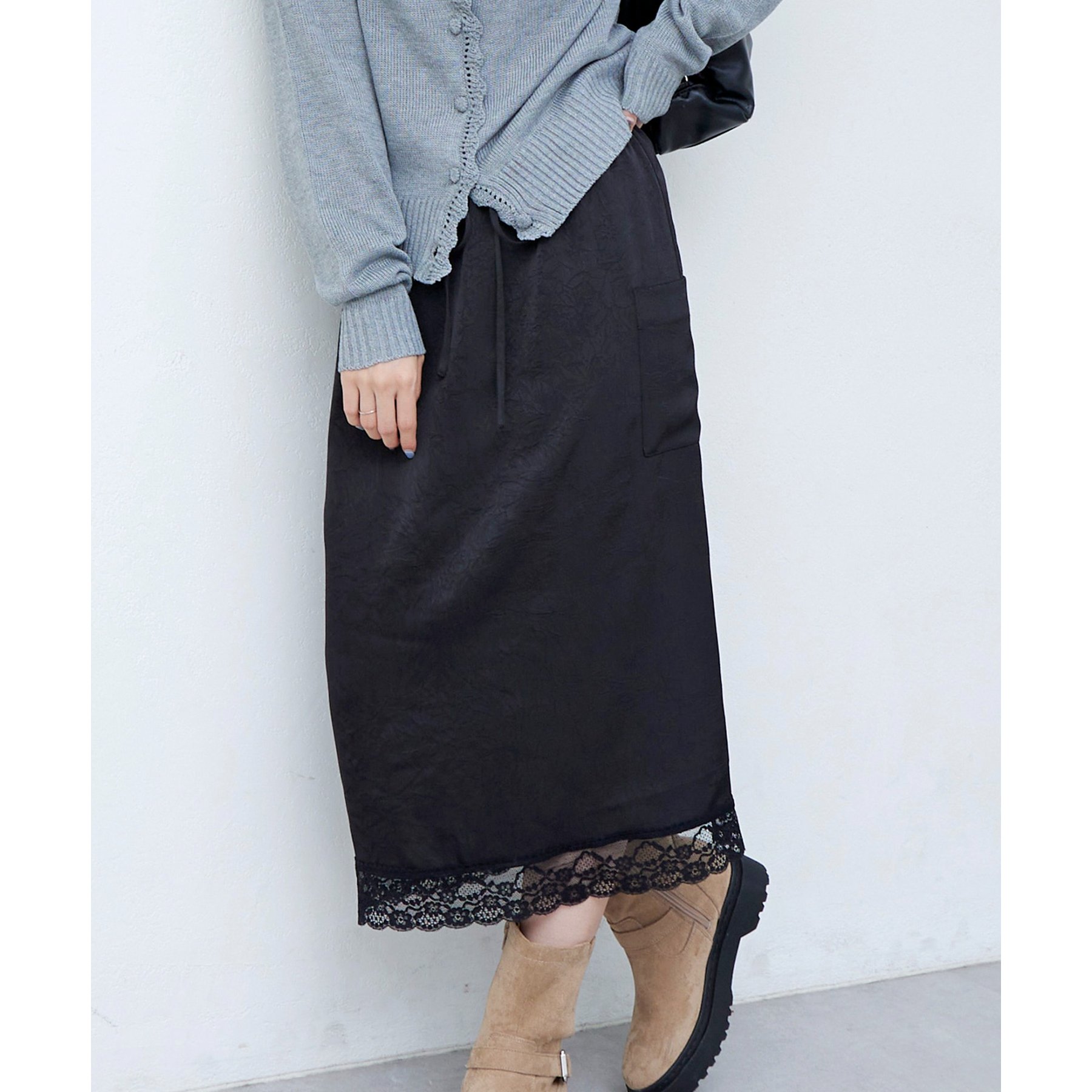 【umm.】裾レースクラッシュサテンスカート