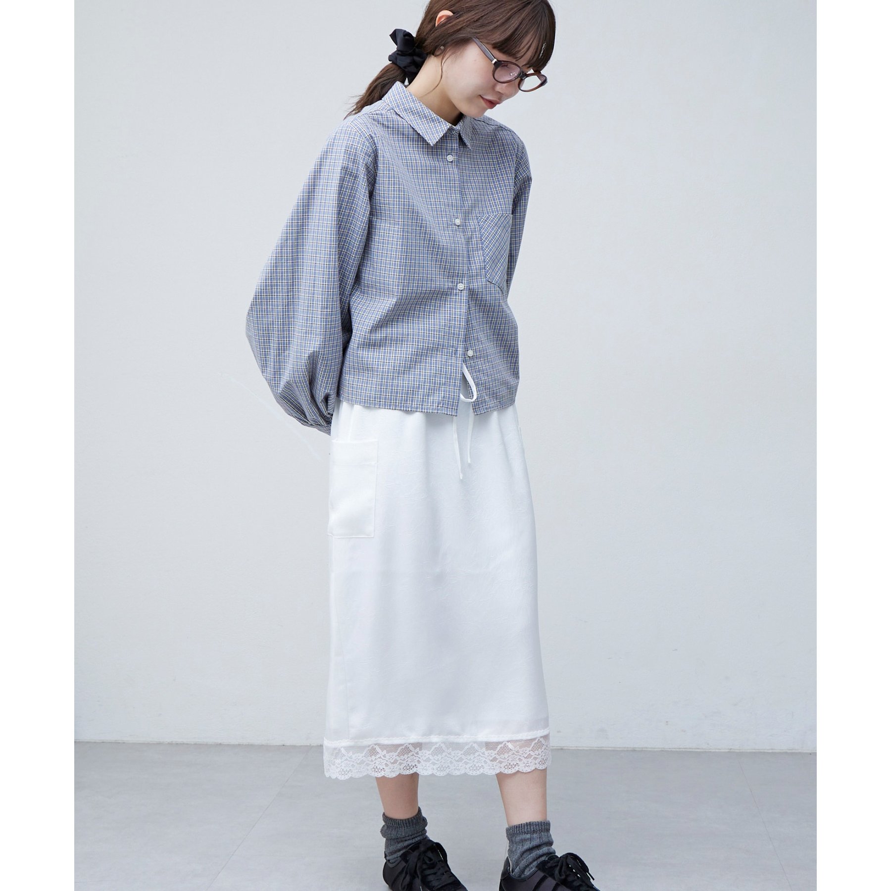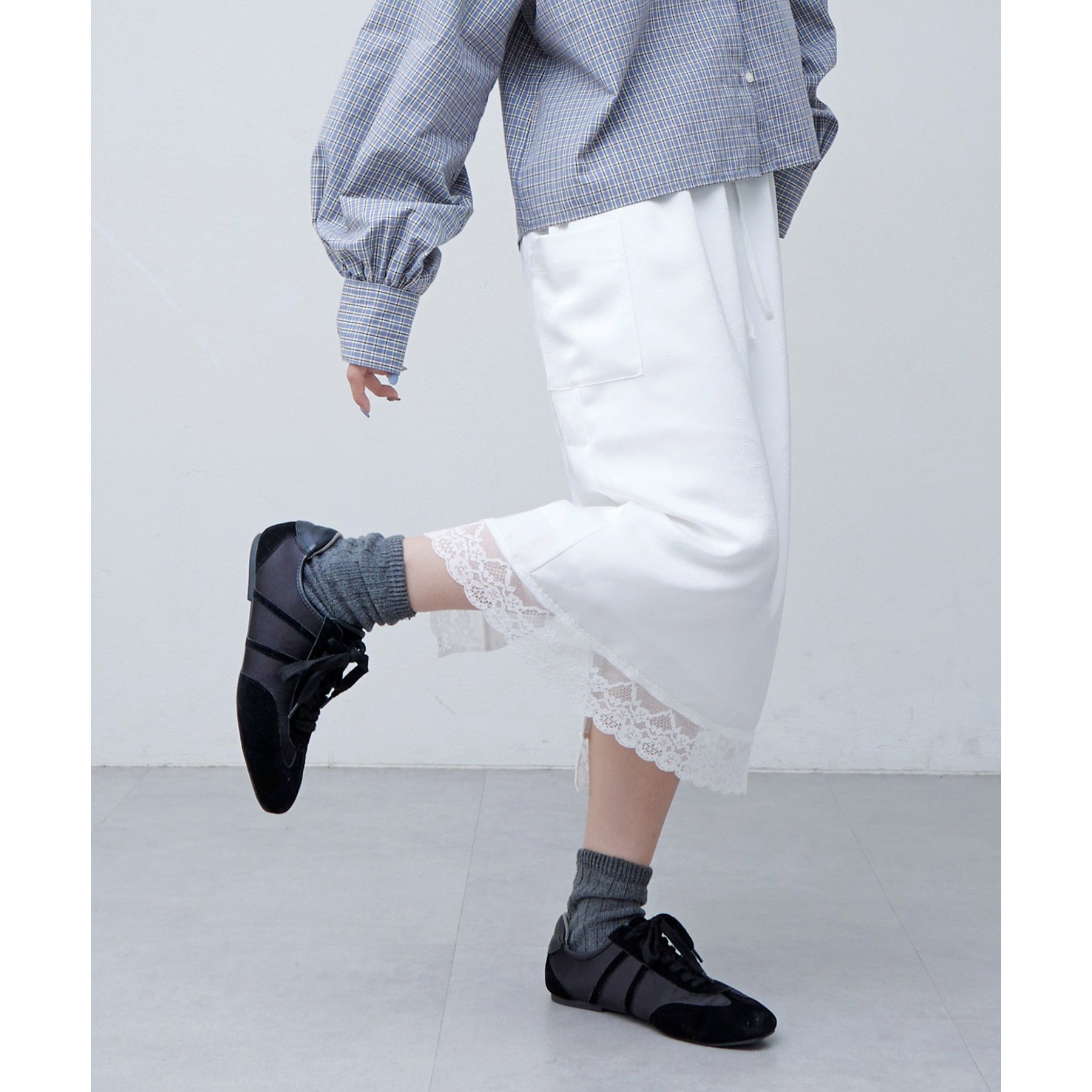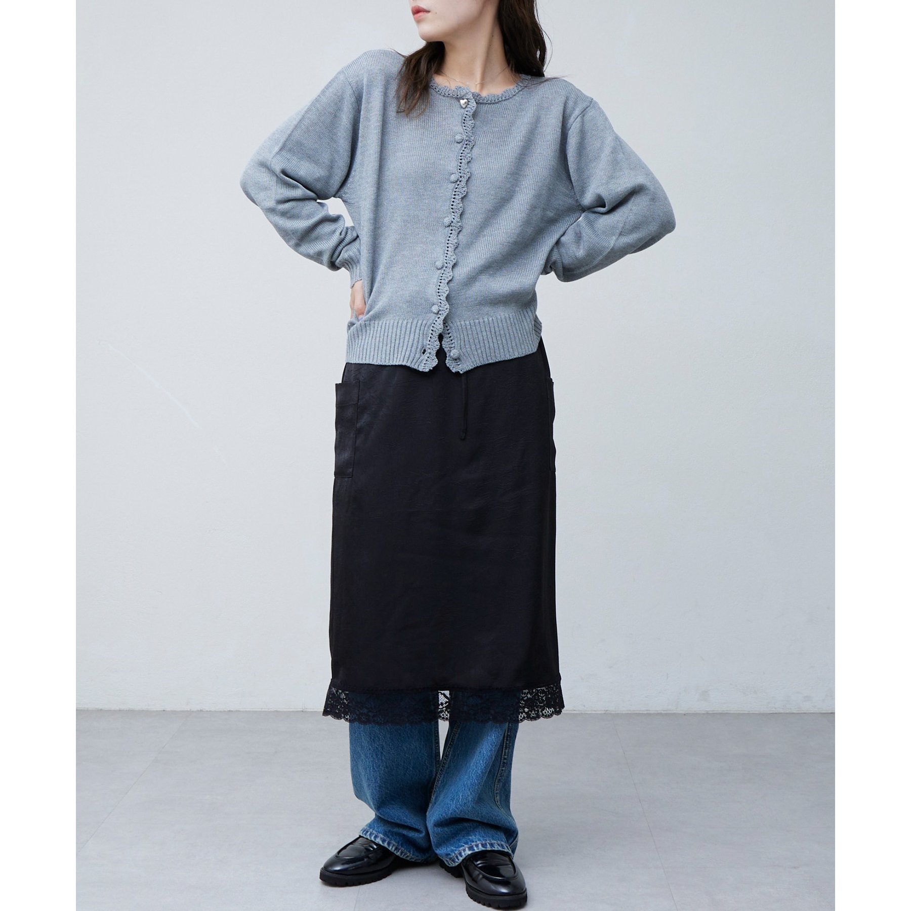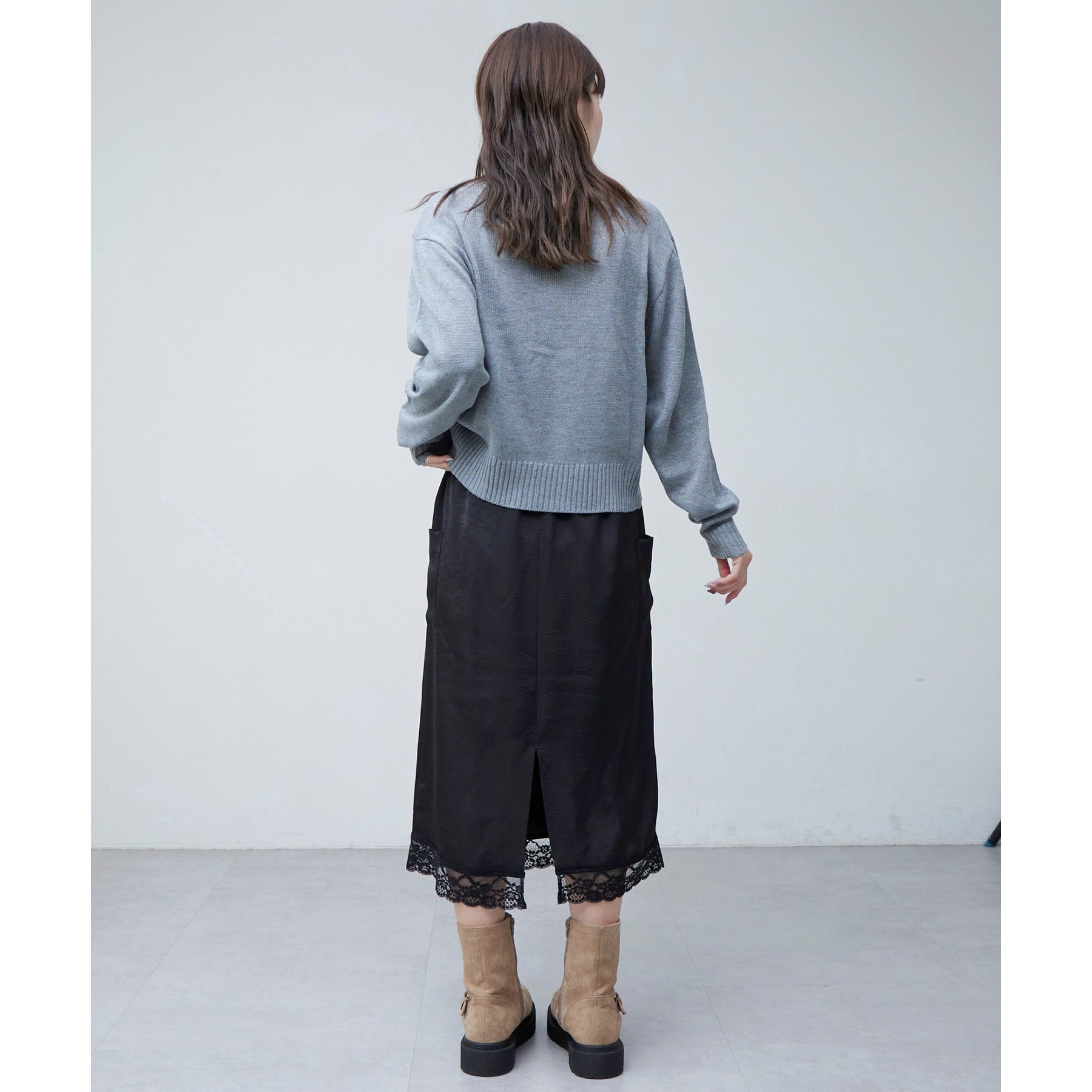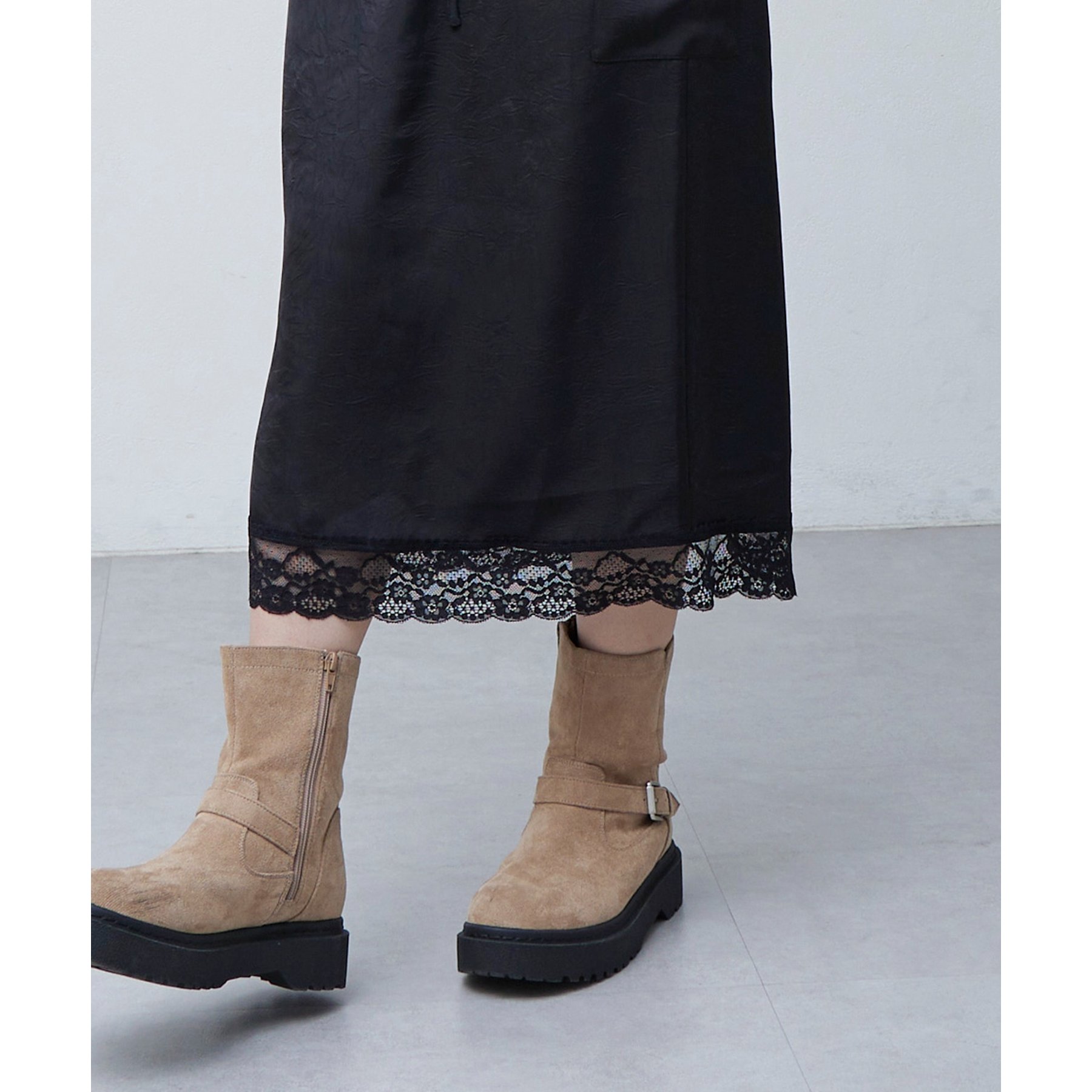 【umm.】裾レースクラッシュサテンスカート