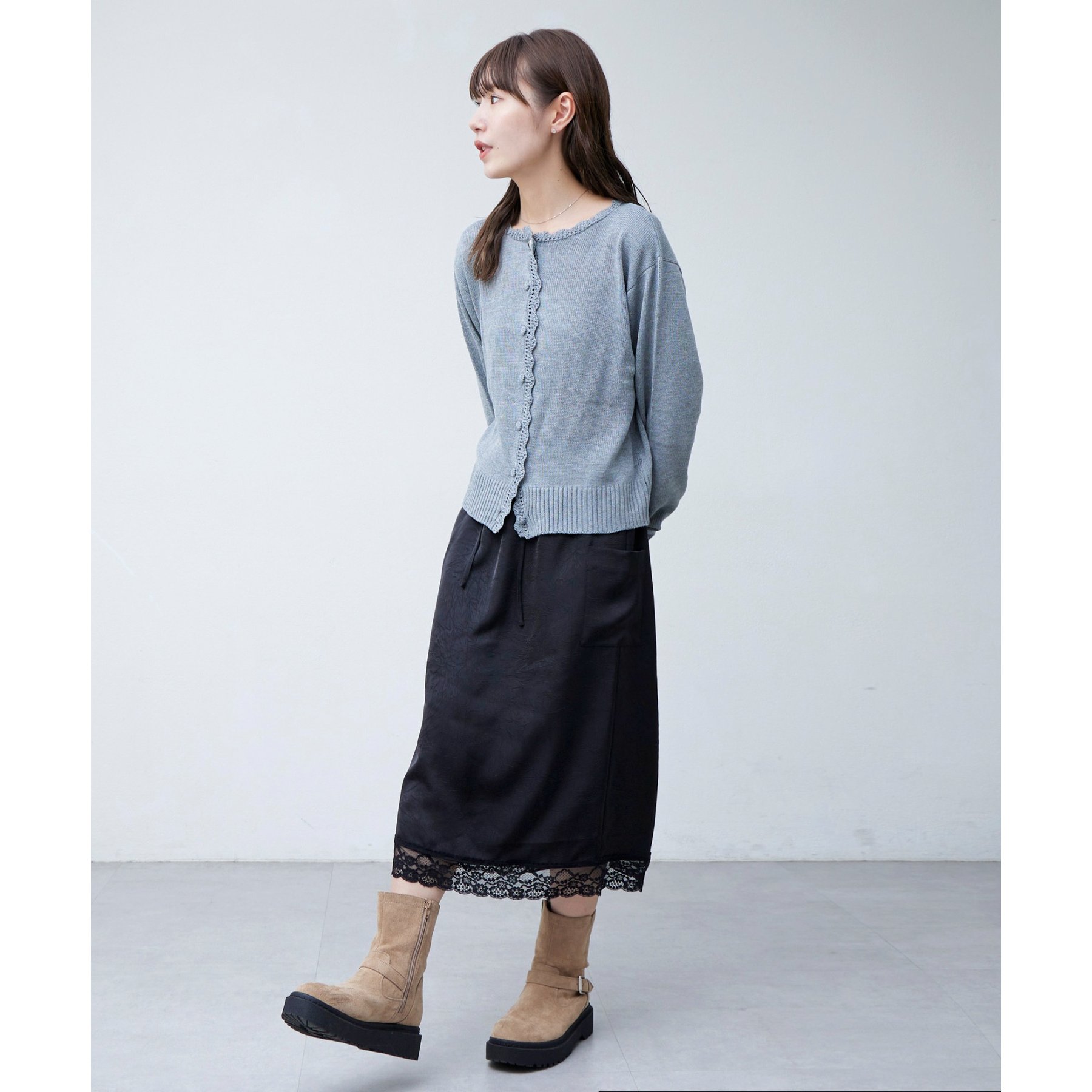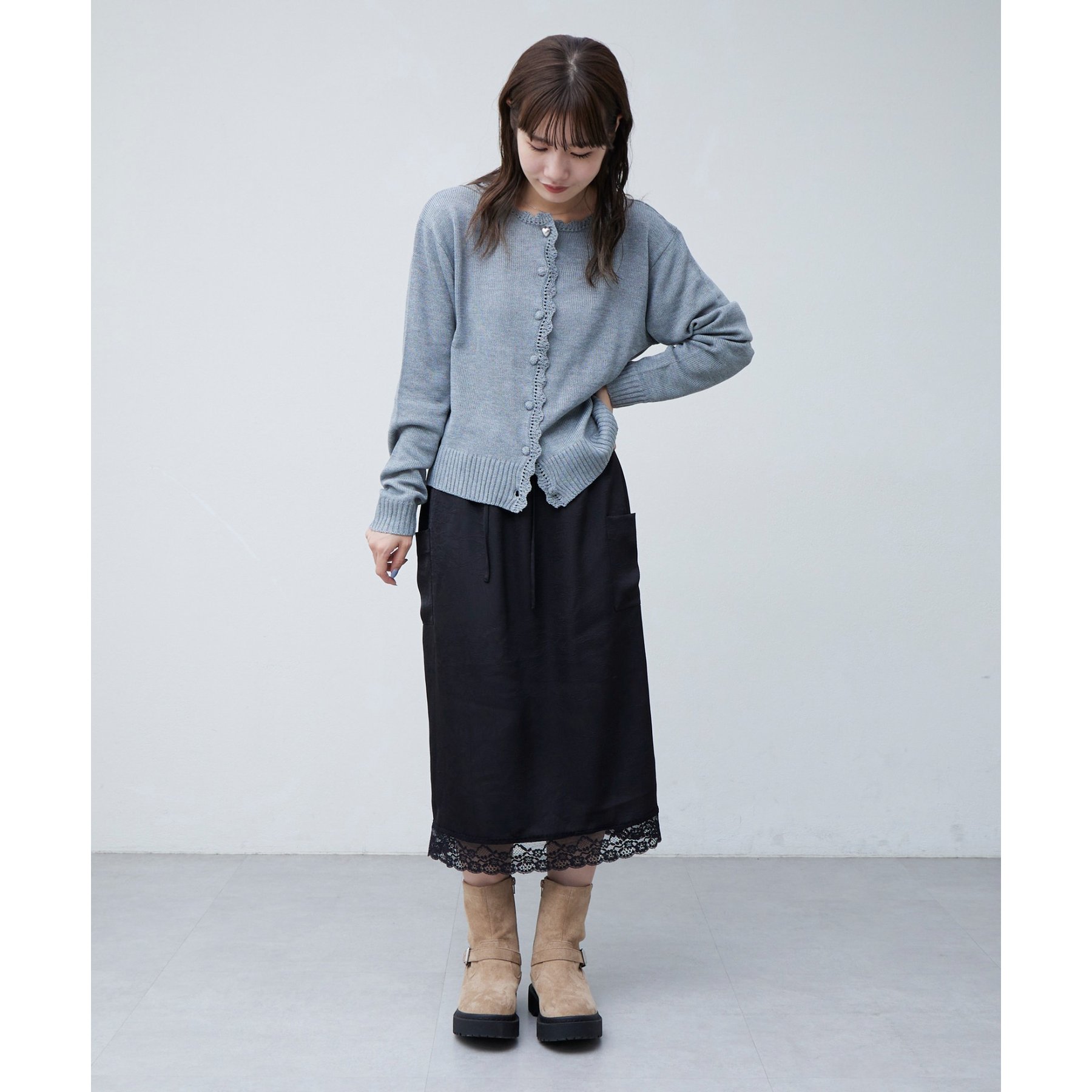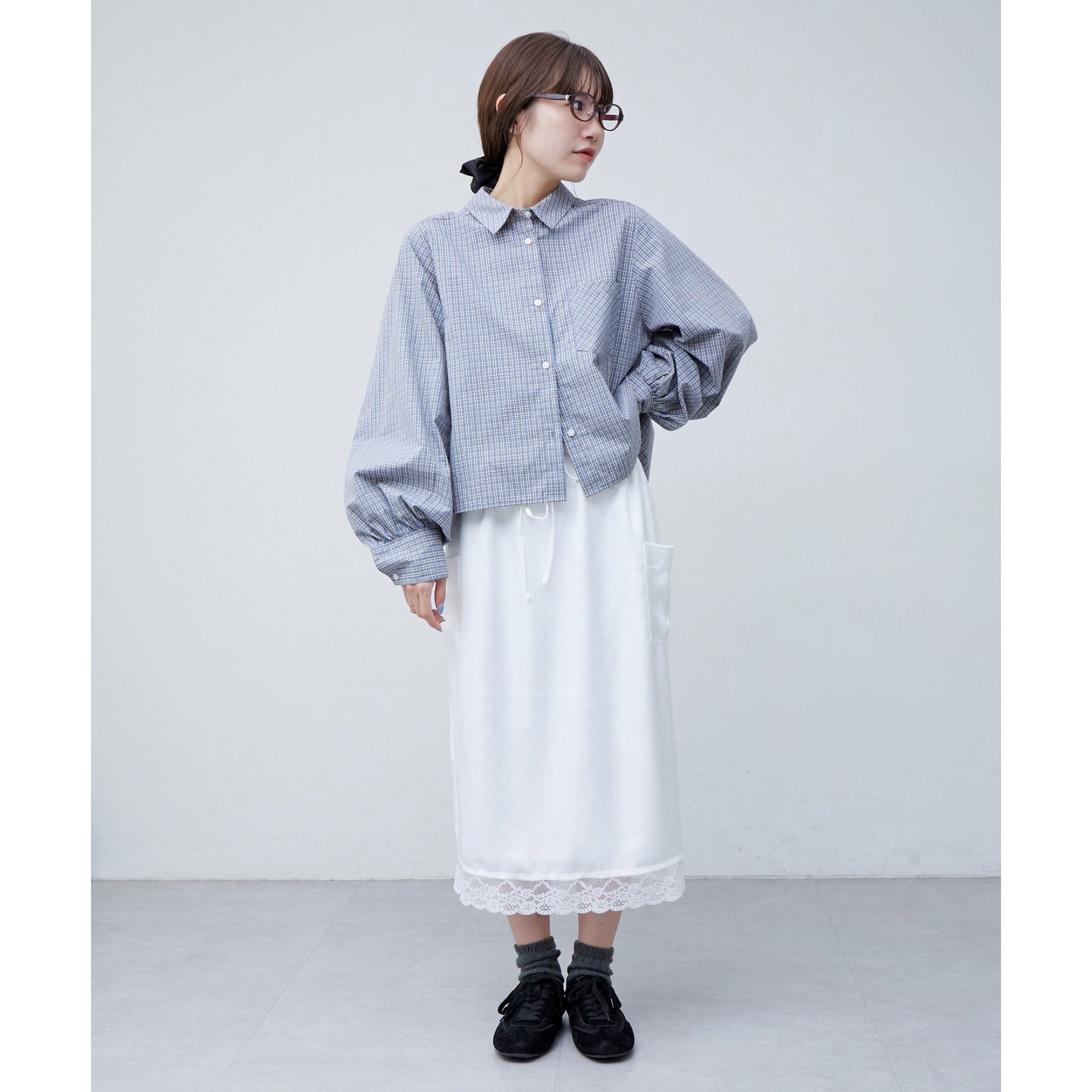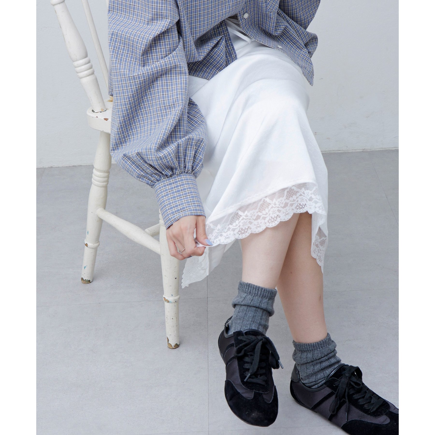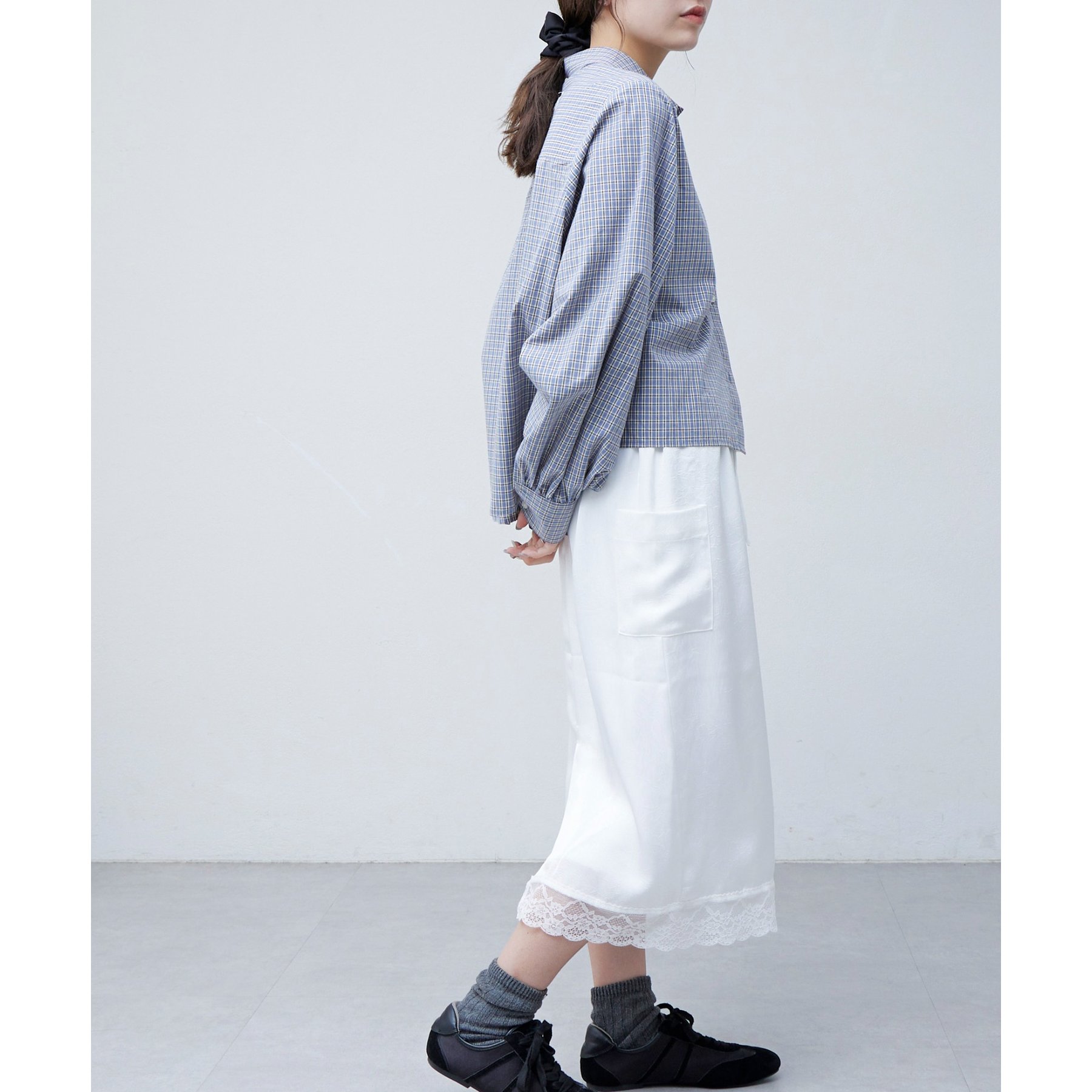 【umm.】裾レースクラッシュサテンスカート
