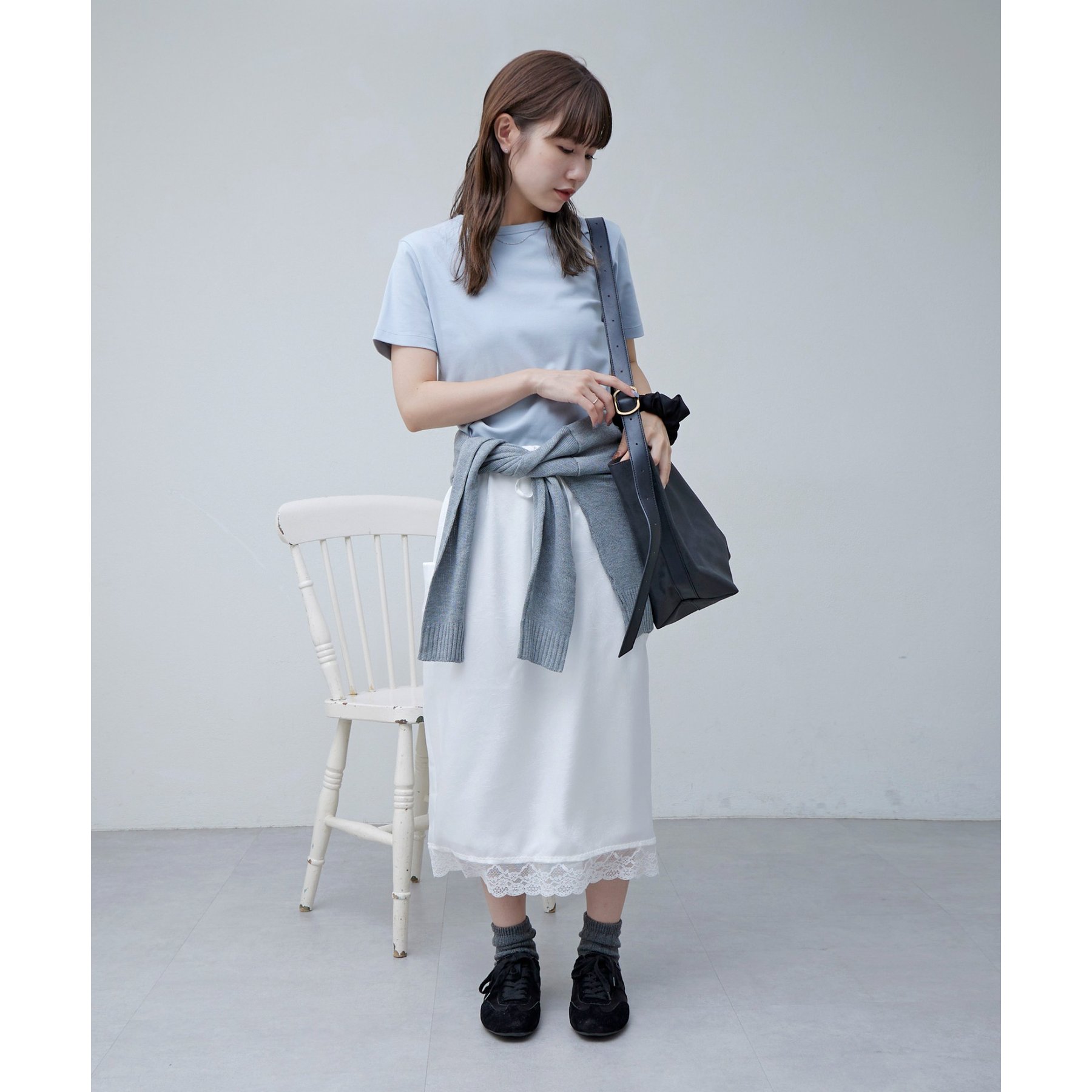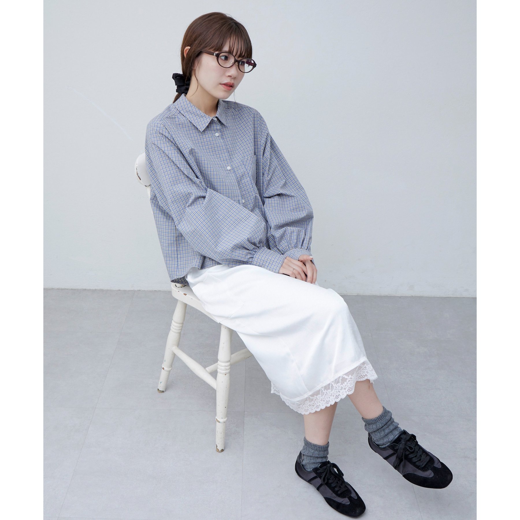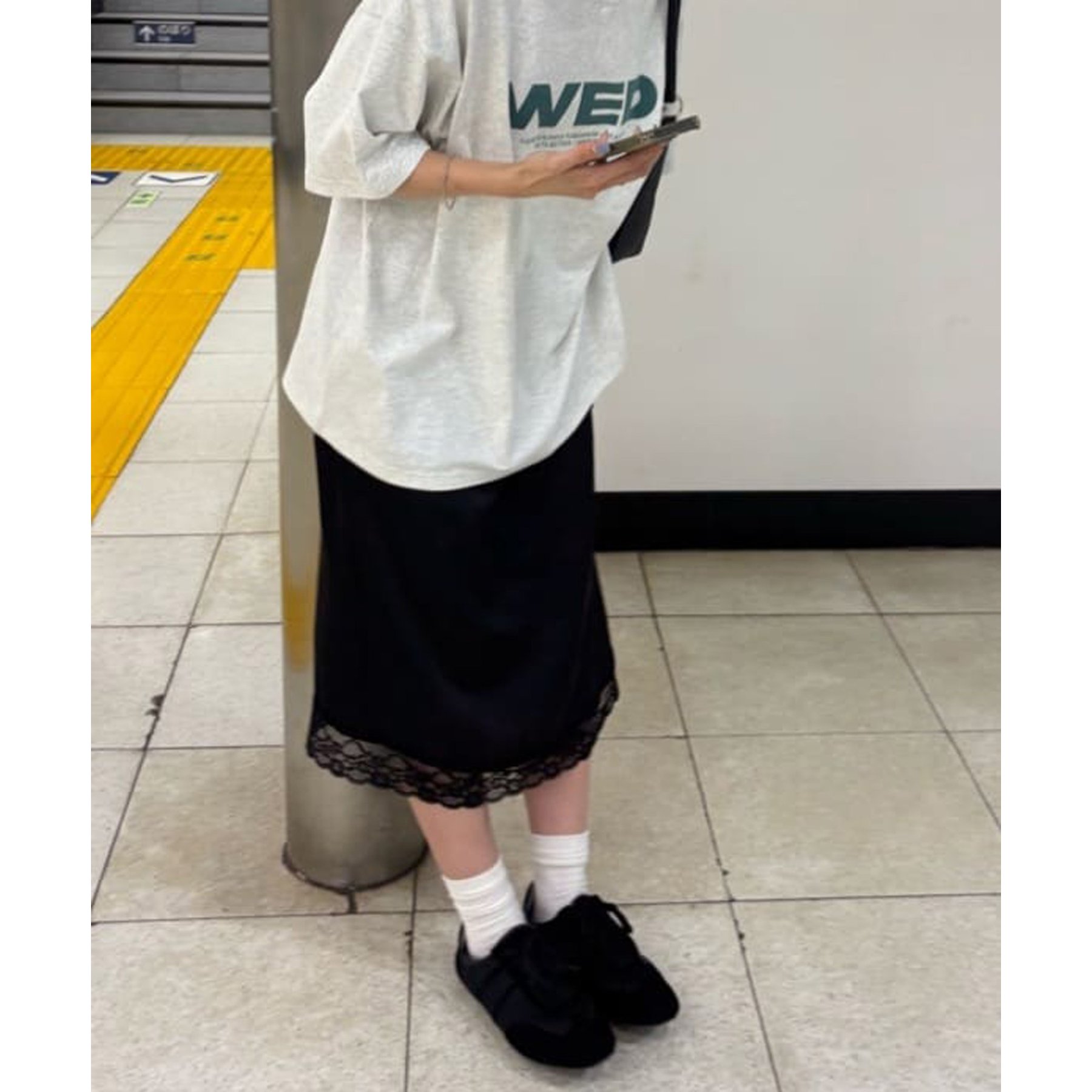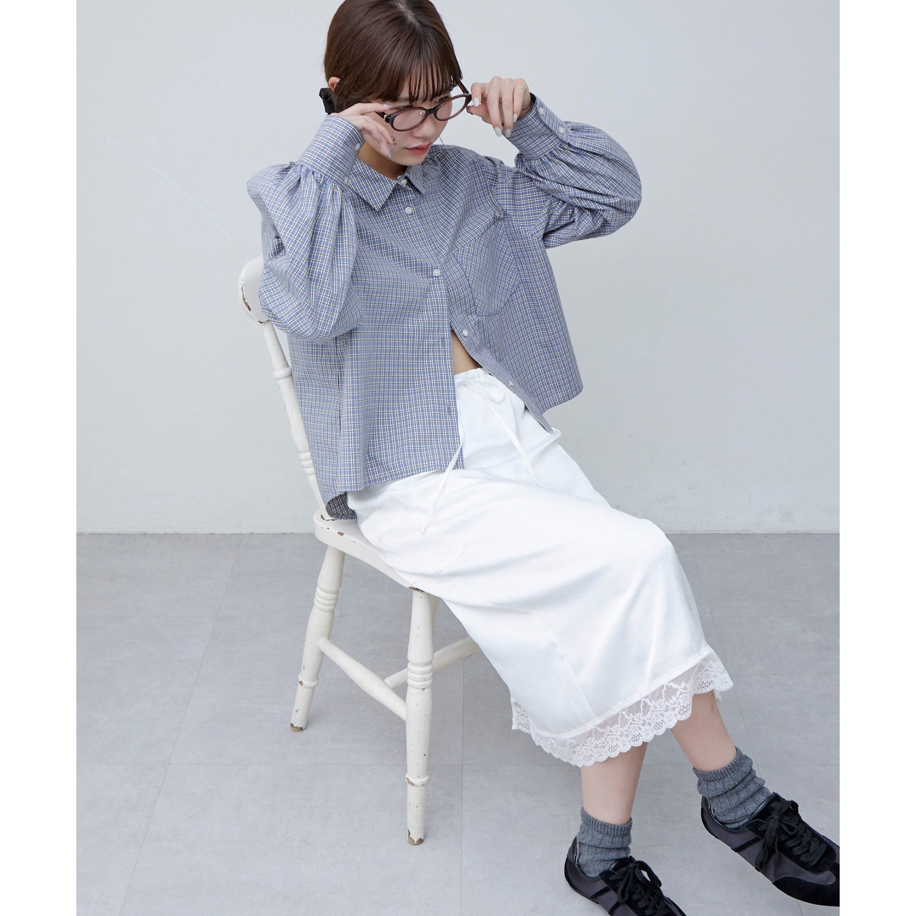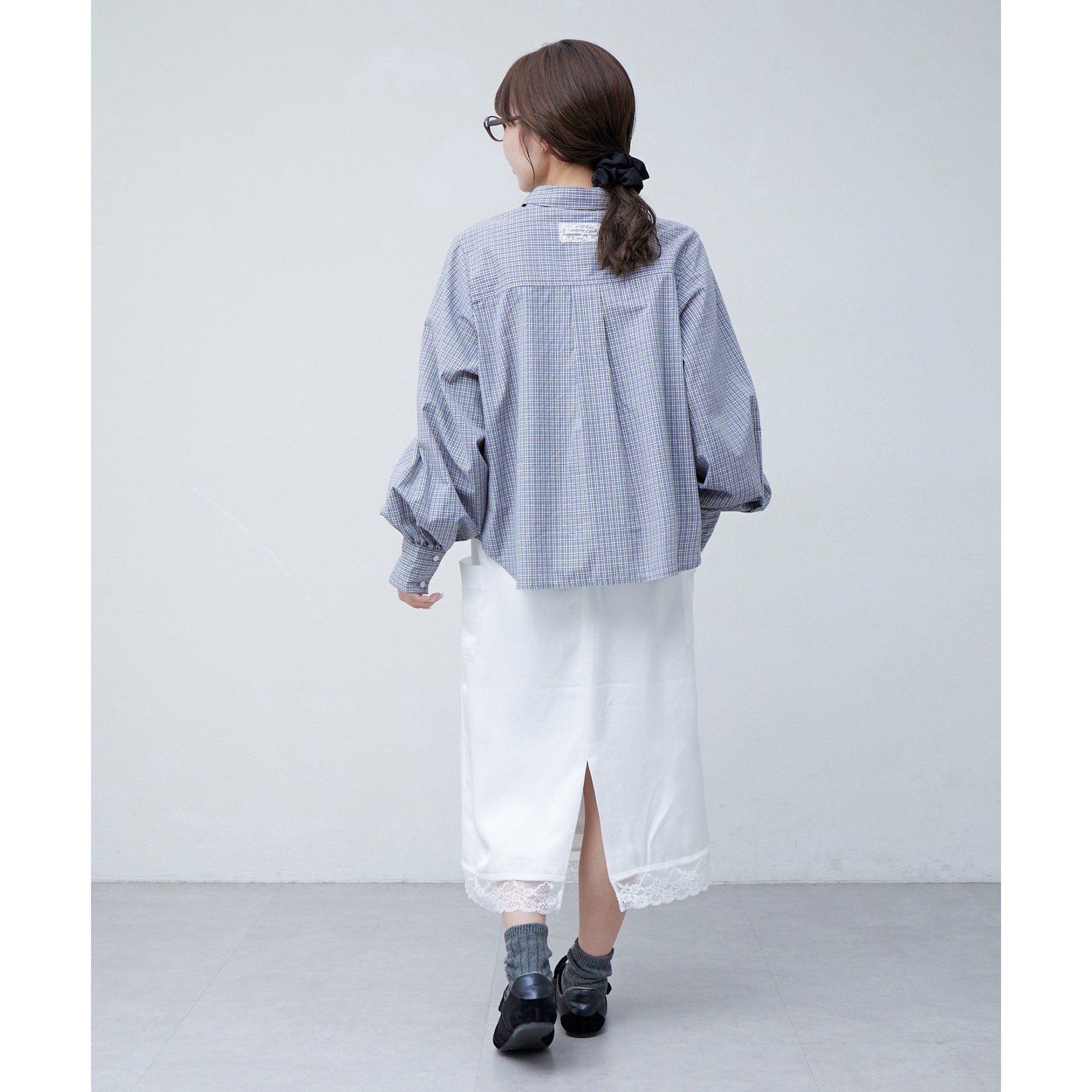 【umm.】裾レースクラッシュサテンスカート