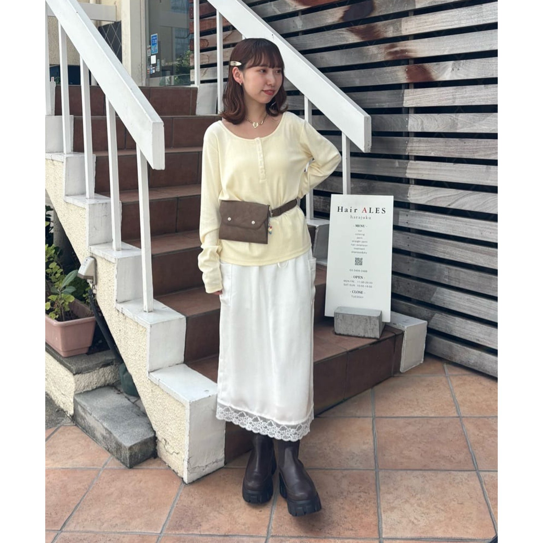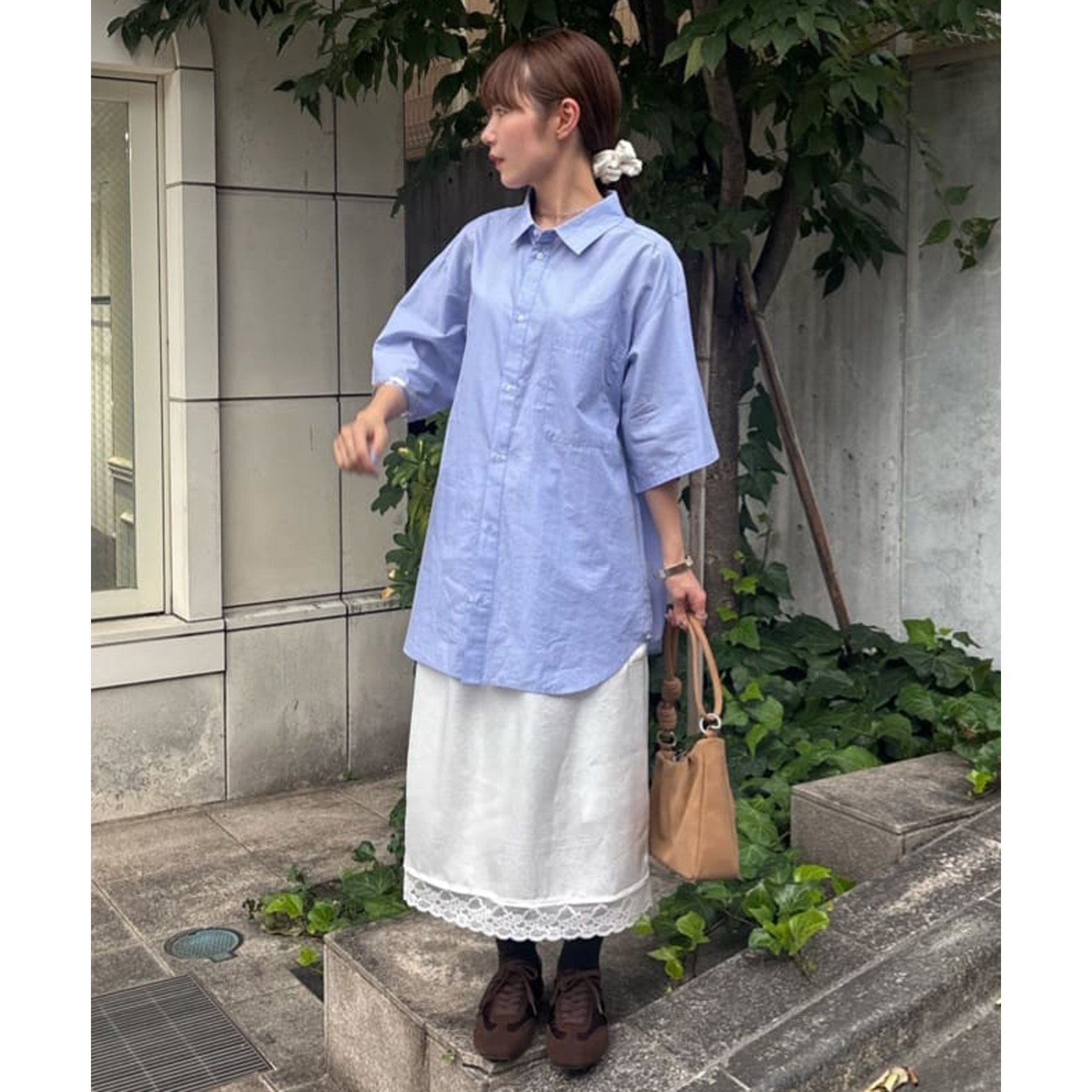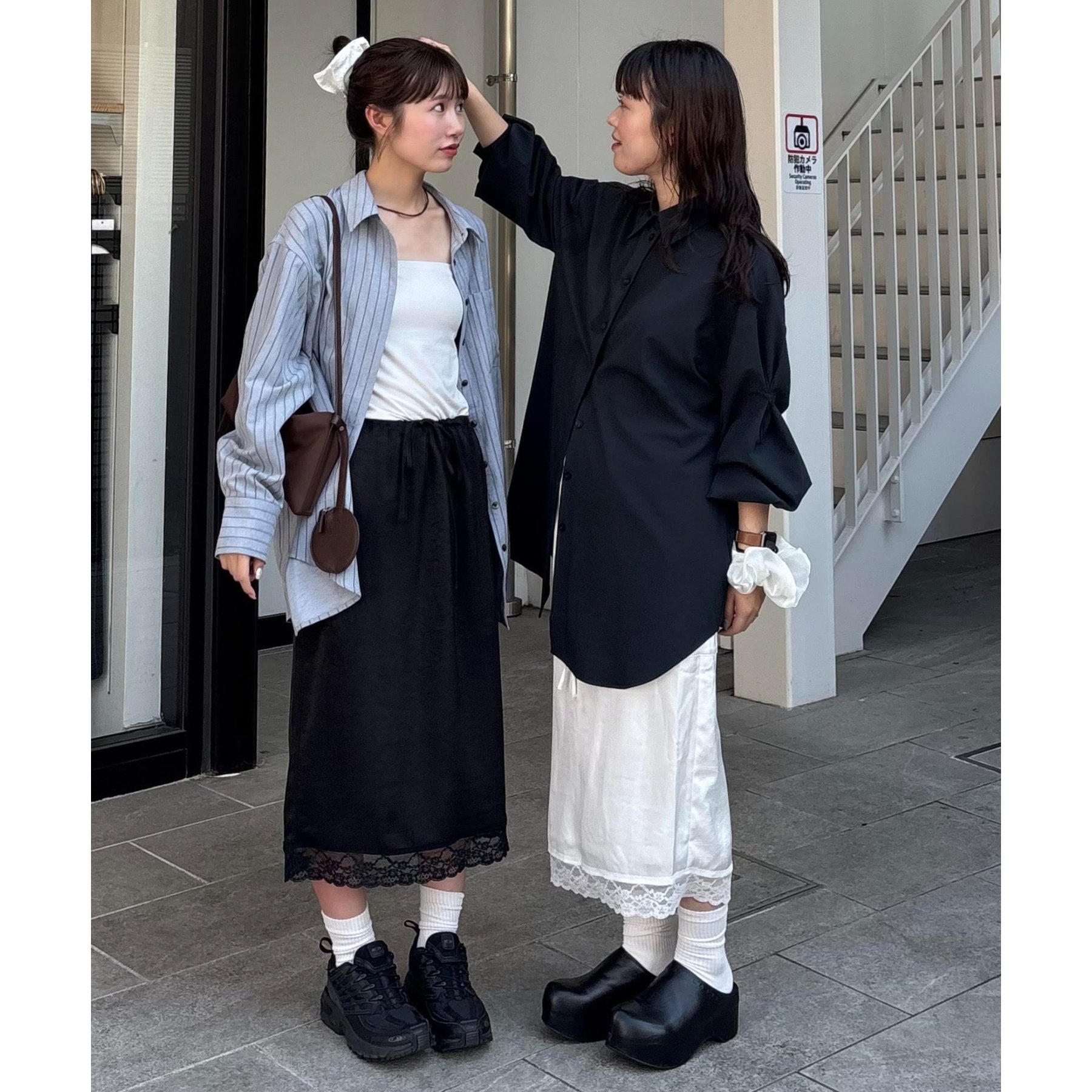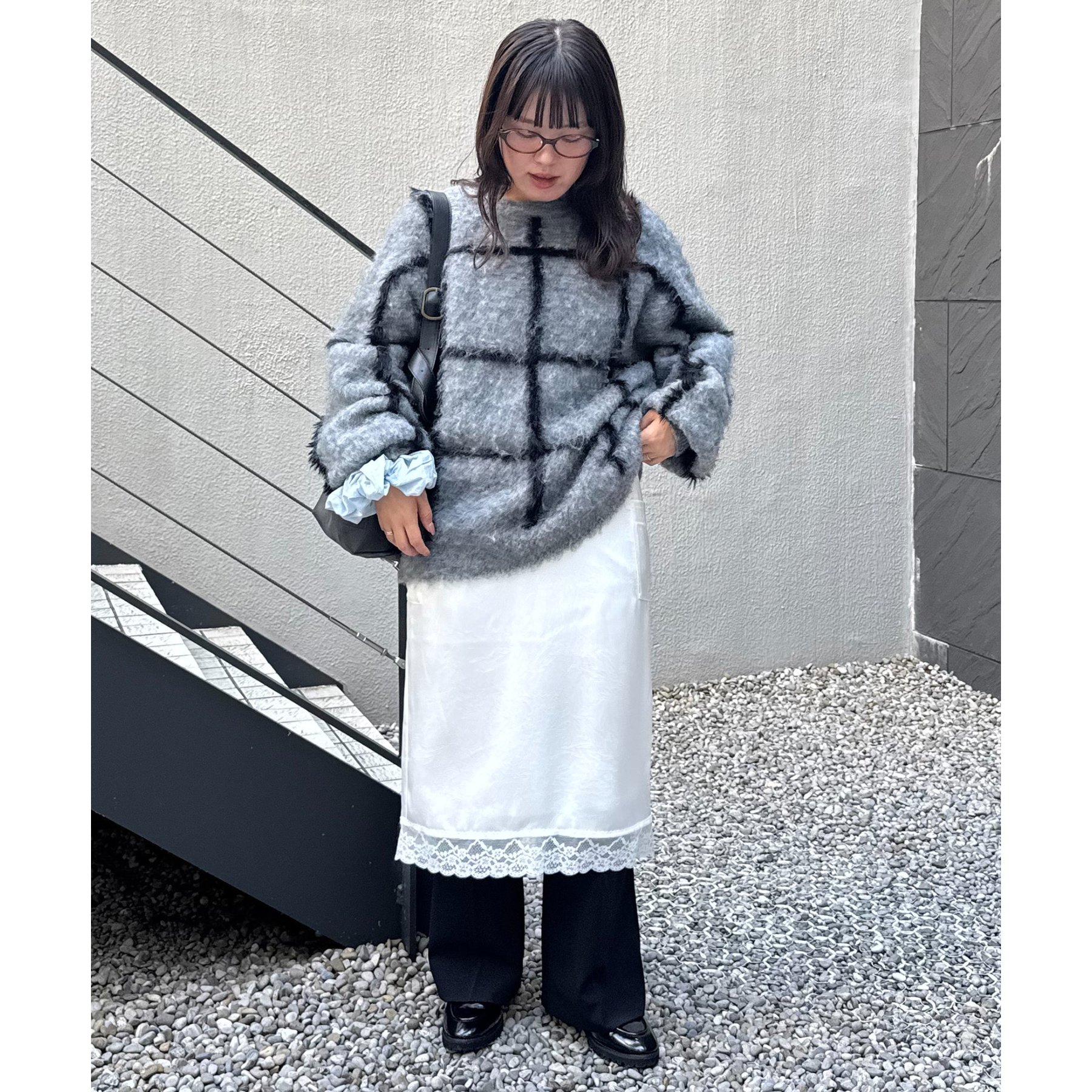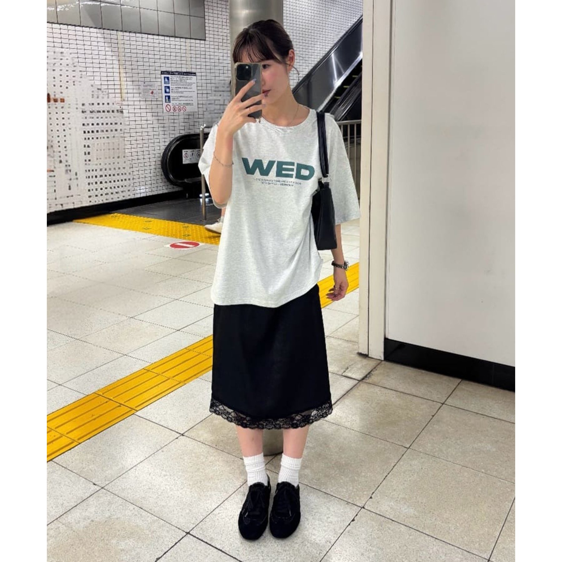 【umm.】裾レースクラッシュサテンスカート