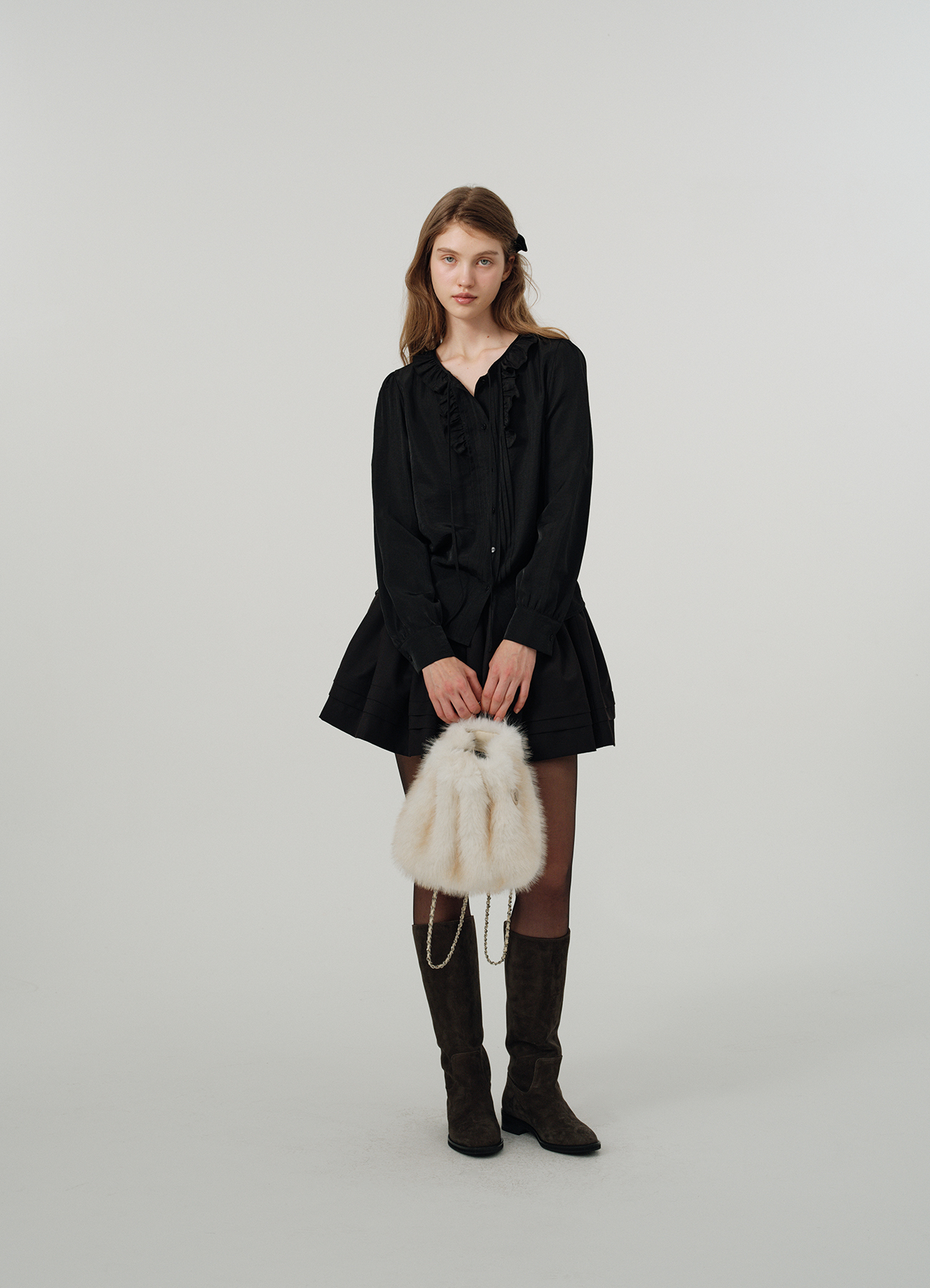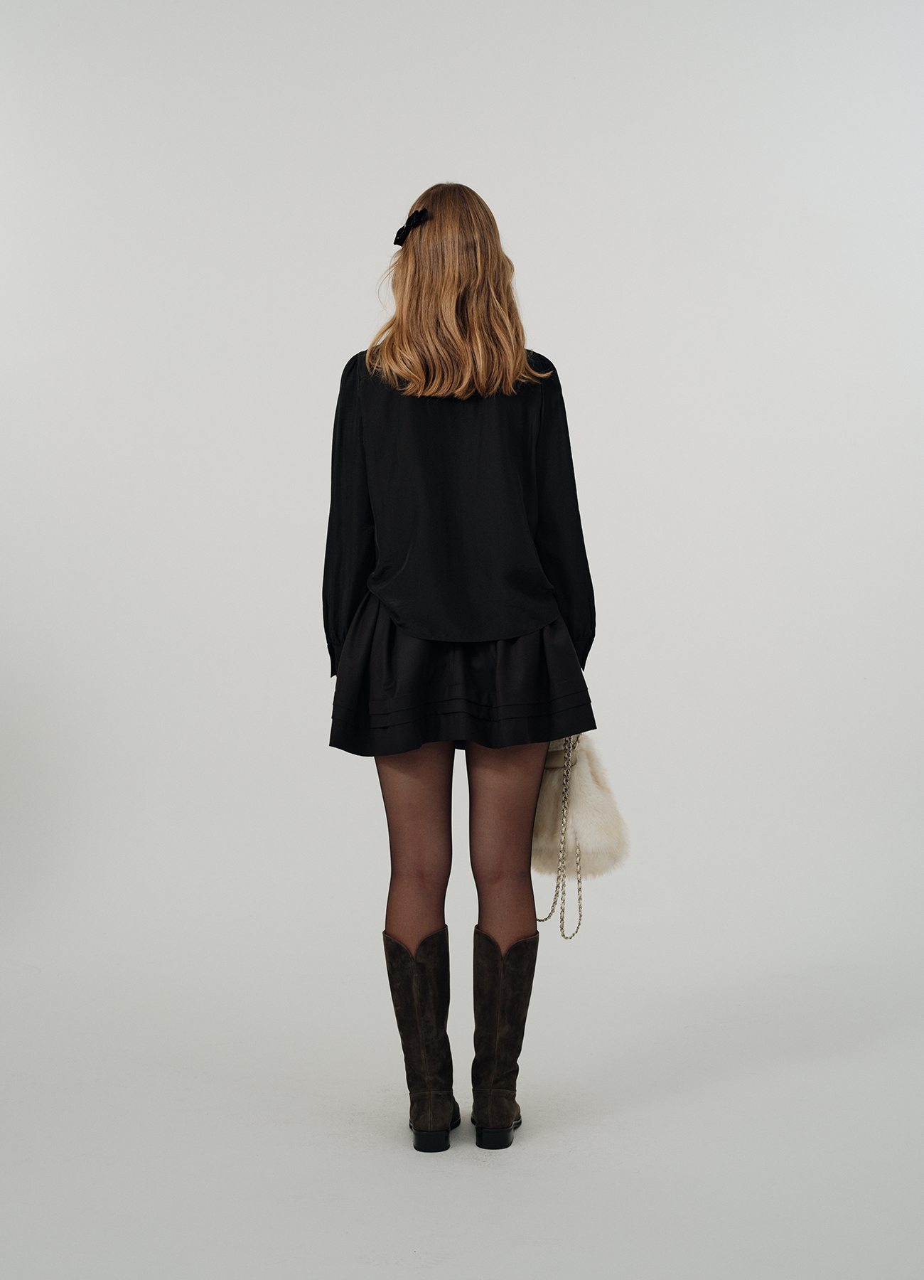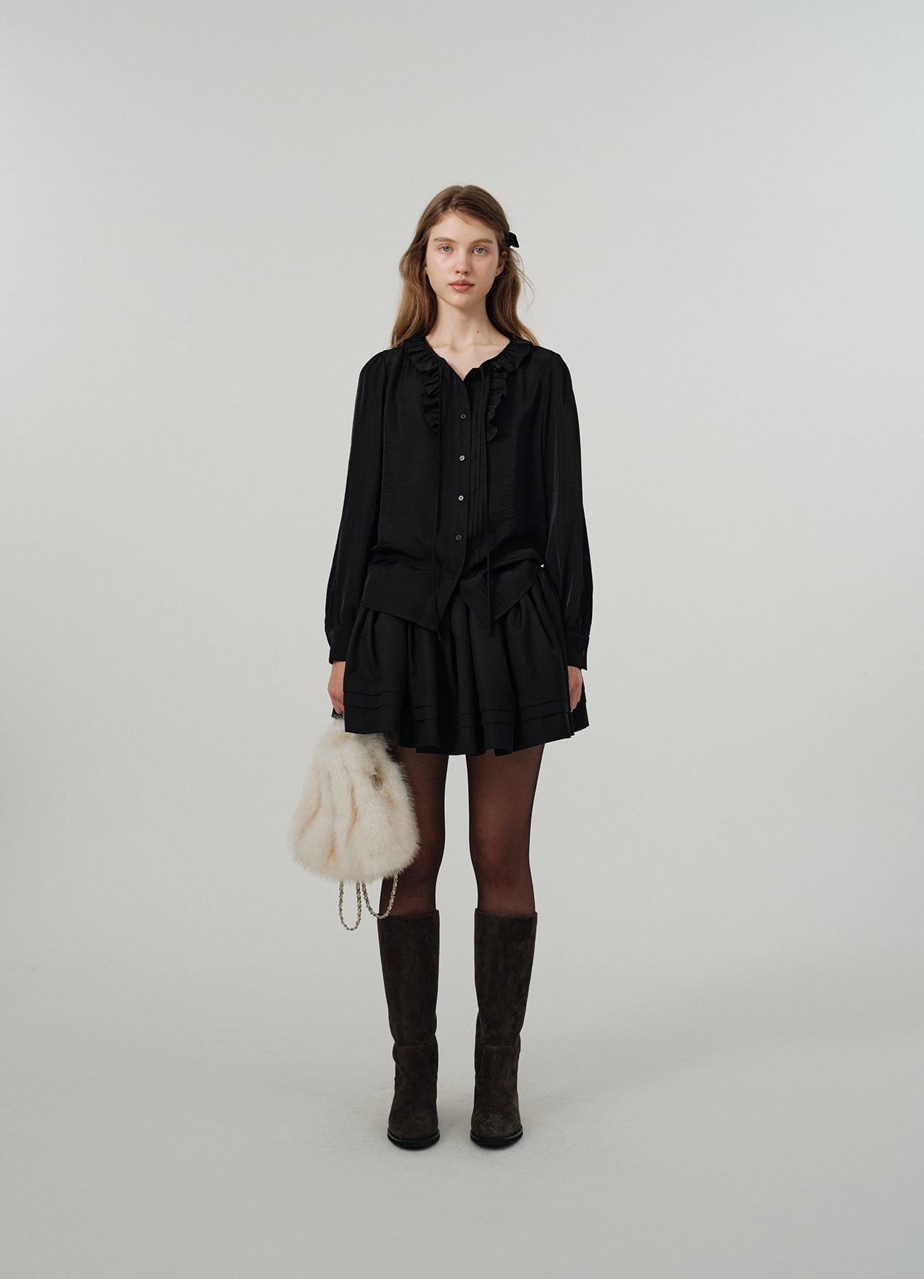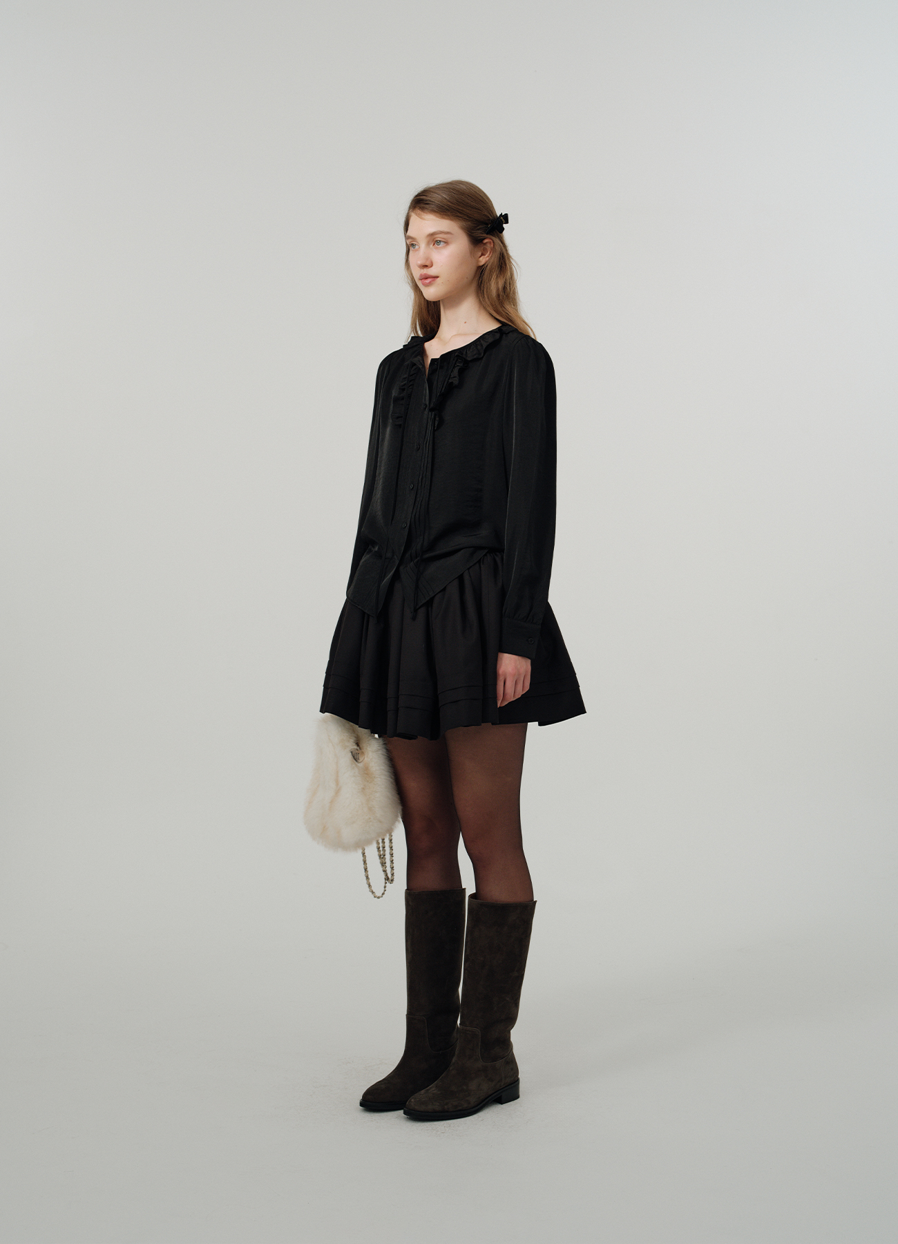 Pleated Tiered Mini Skirt - Black