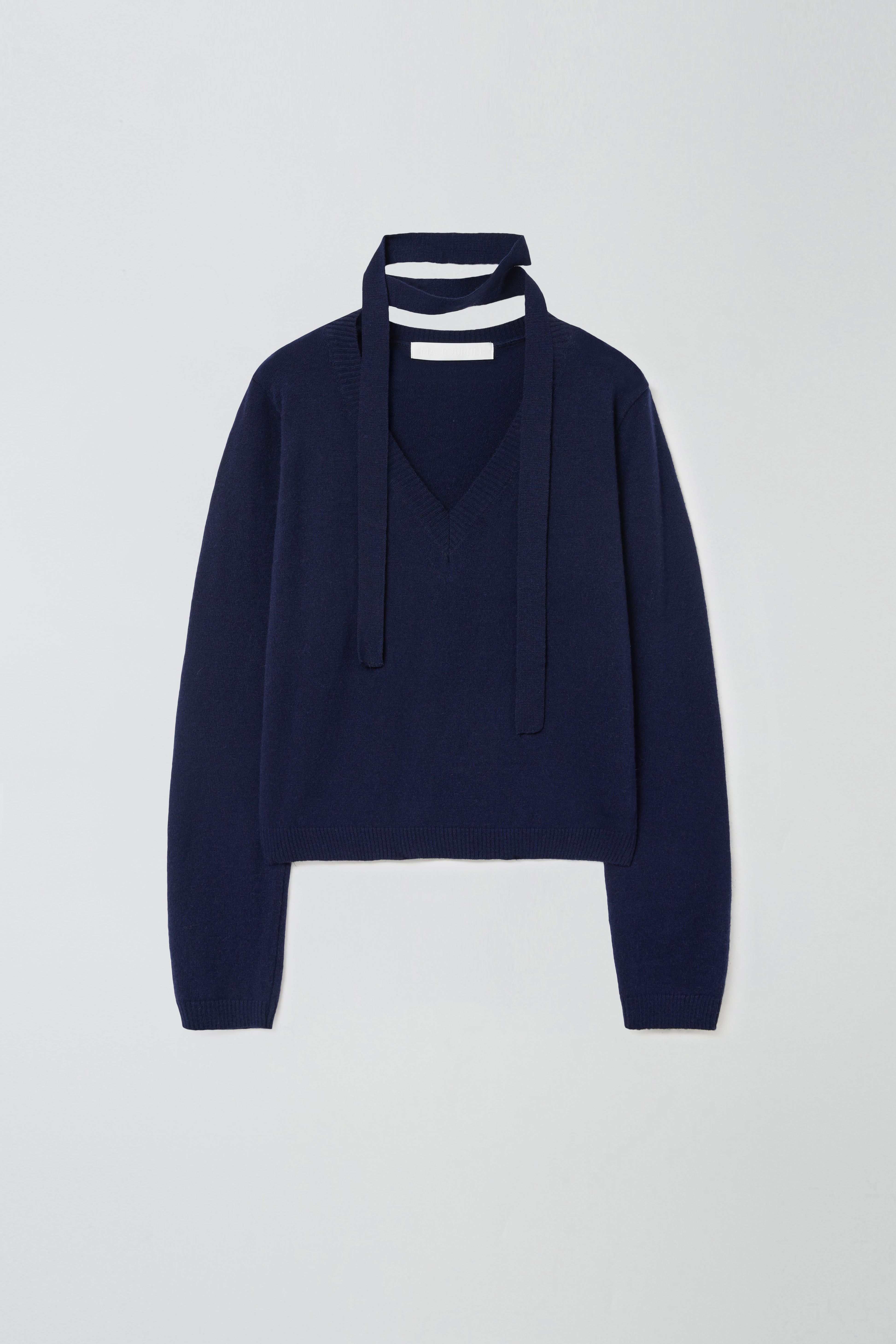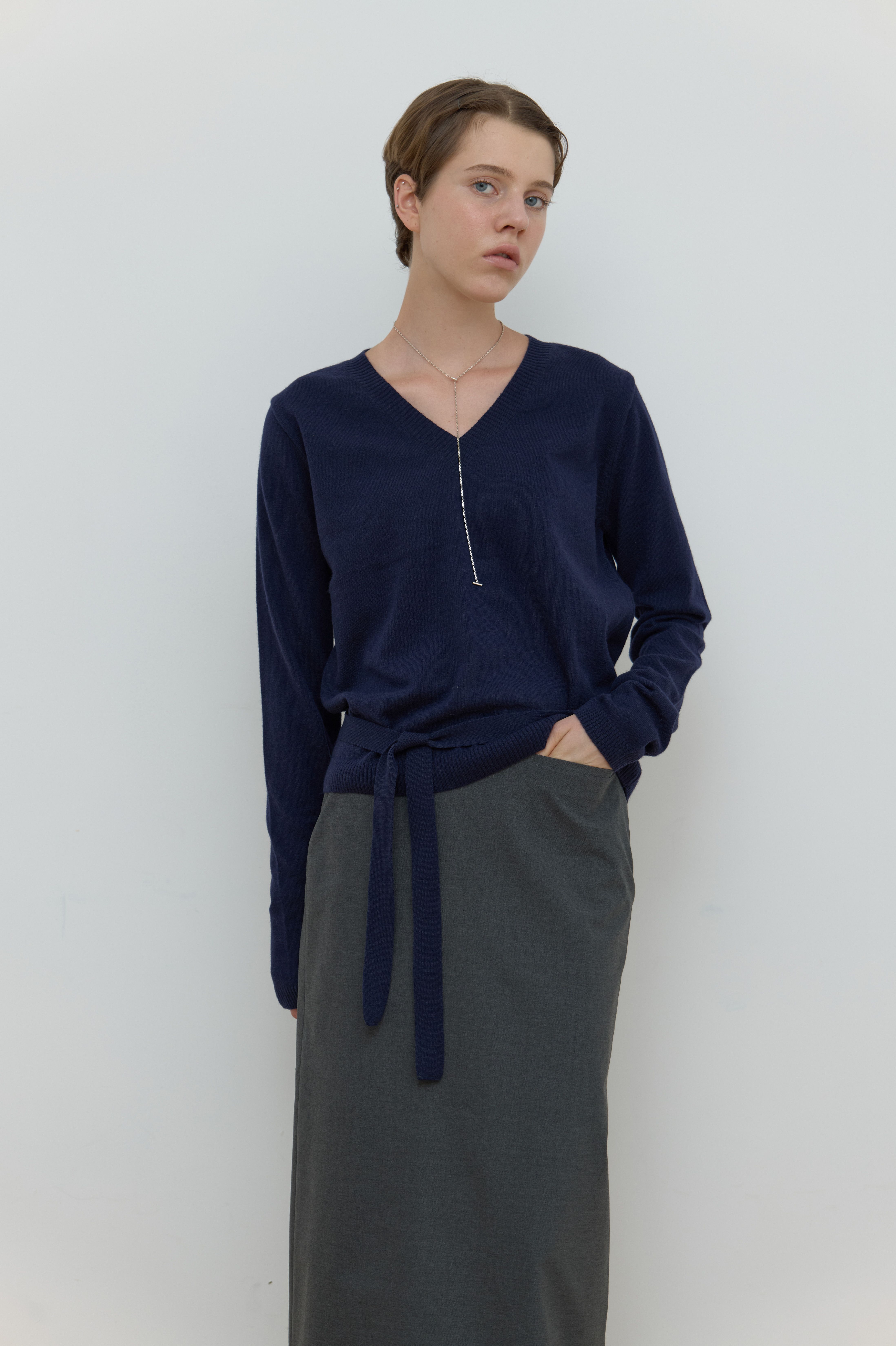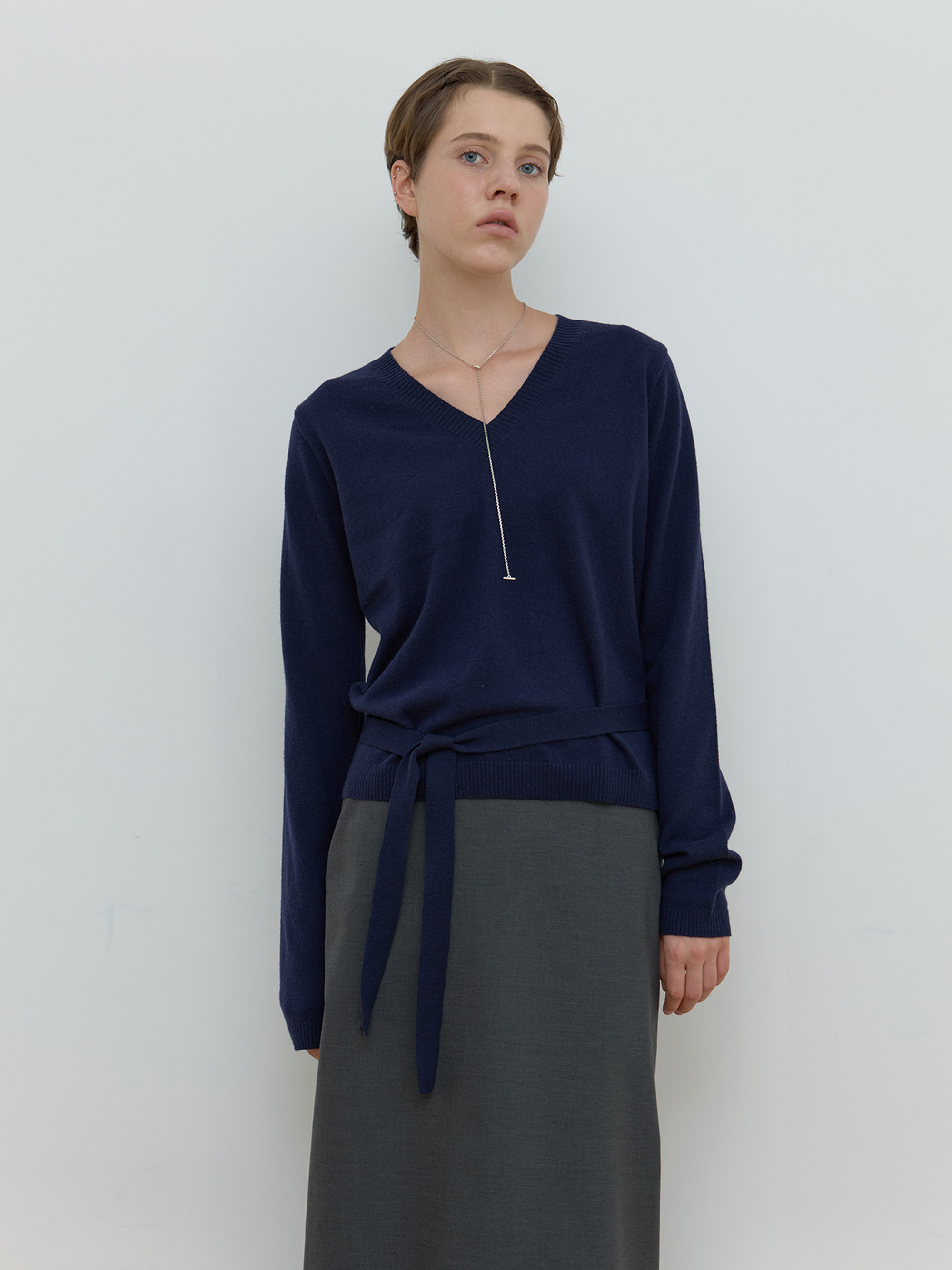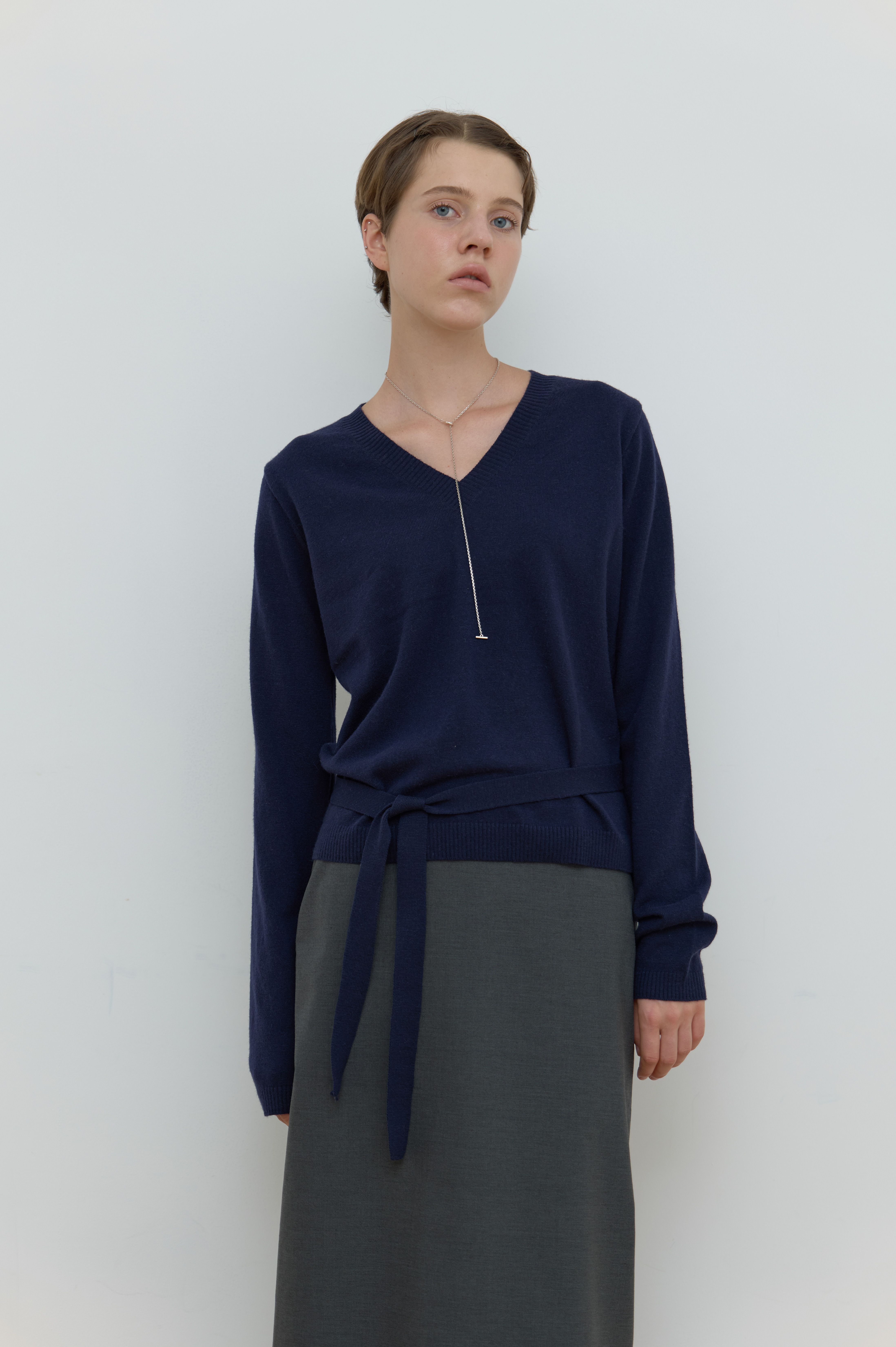 TIE SET V-NECK CASHMERE KNIT_NAVY
