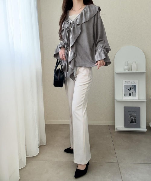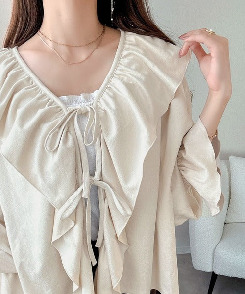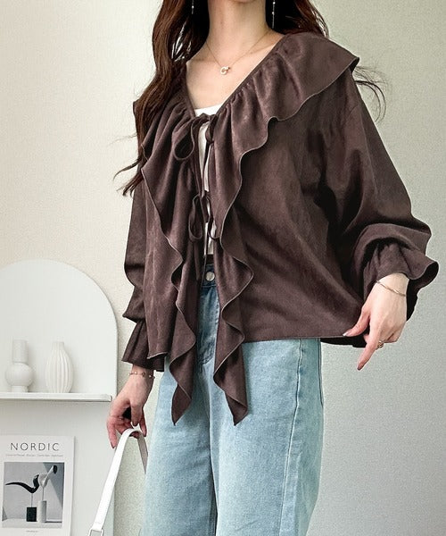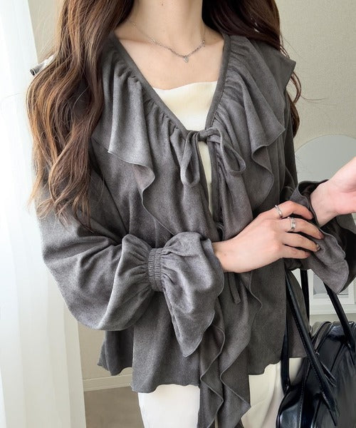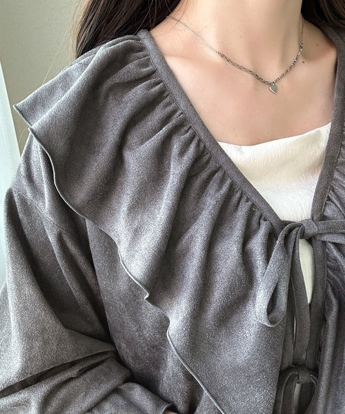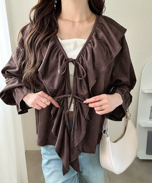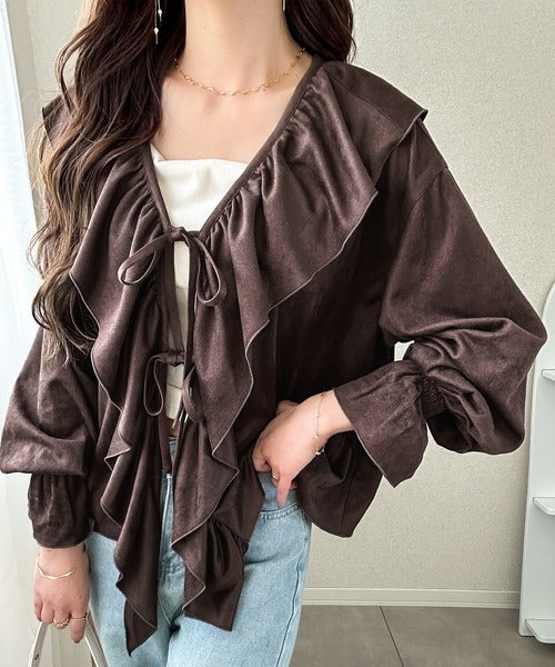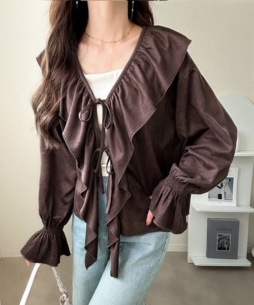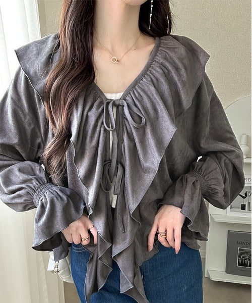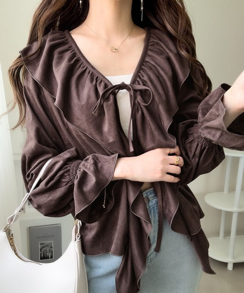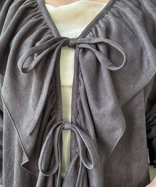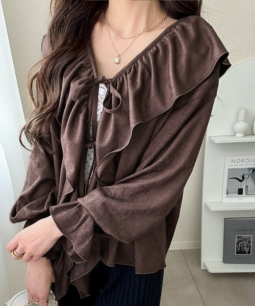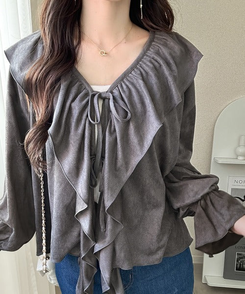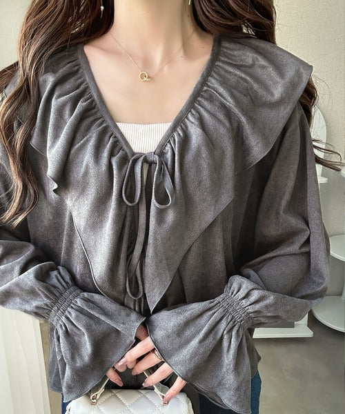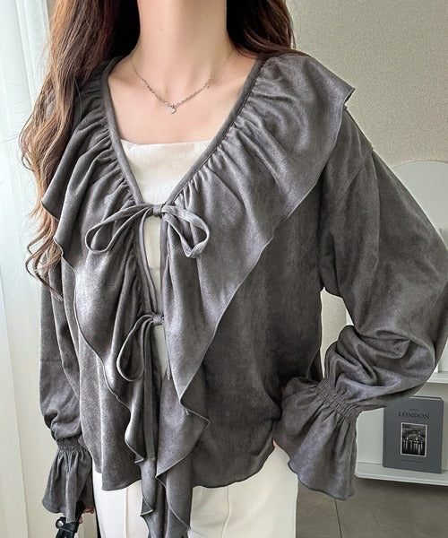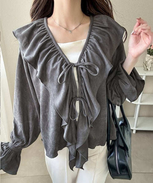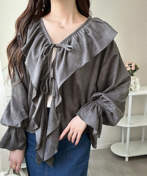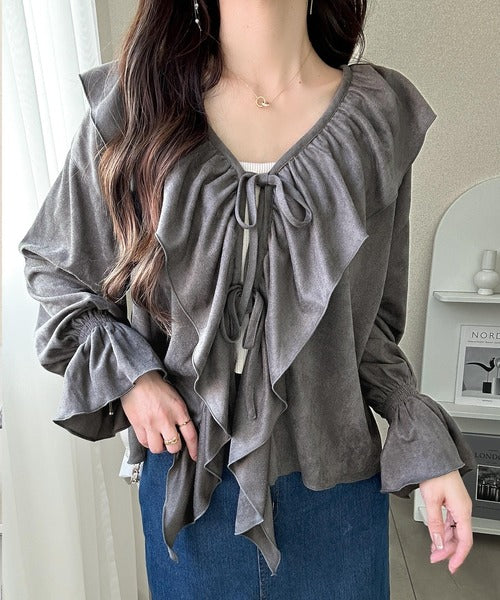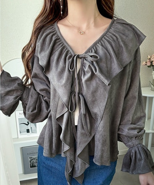 【mily bilet】ひらりと可憐に、上品フェミニン。フェイクスエード前開きリボンブラウス(長袖) mi1019110