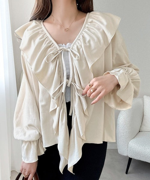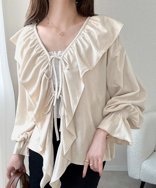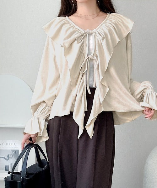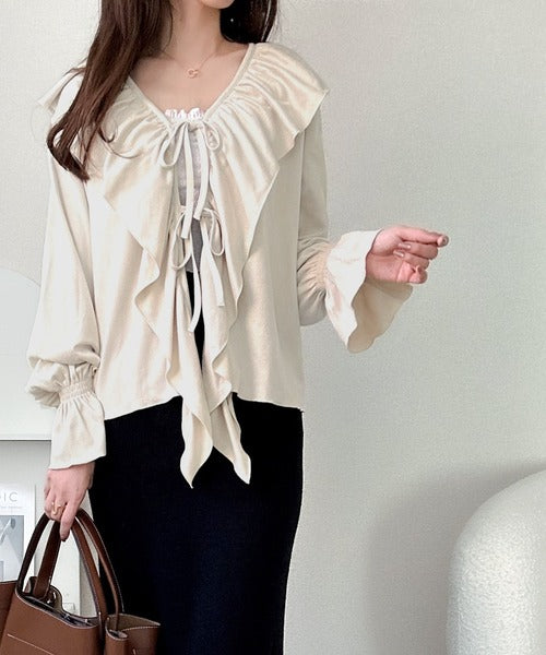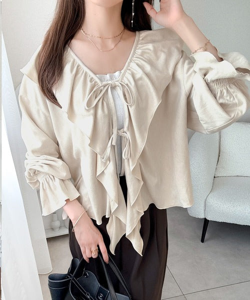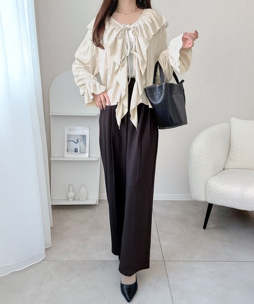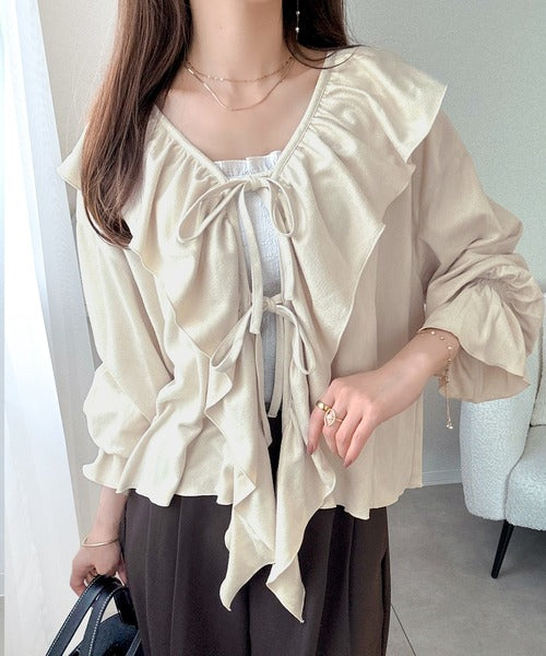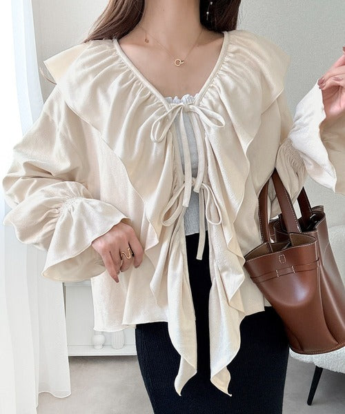 ひらりと揺れるラッフルとリボンが大人可愛いブラウス♪