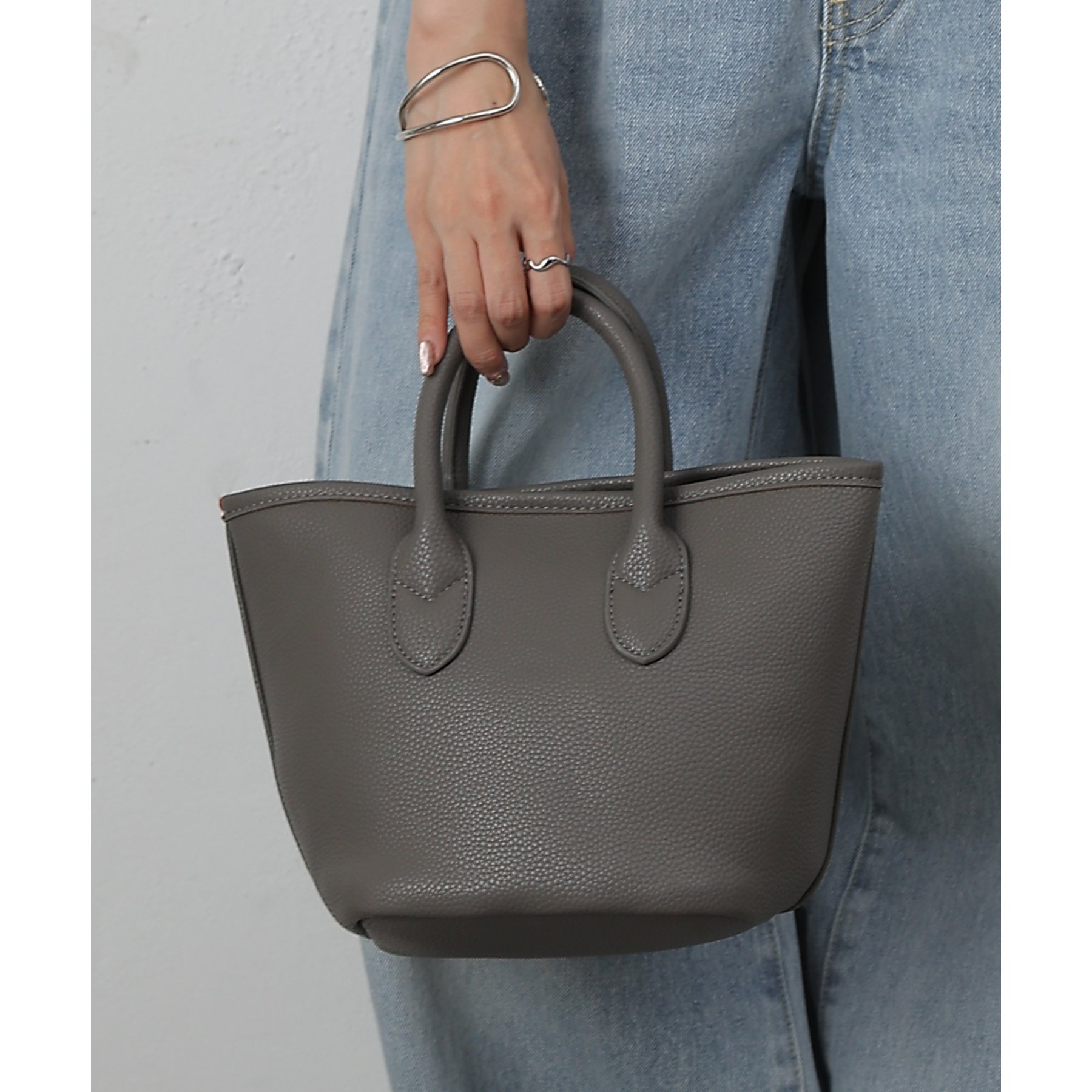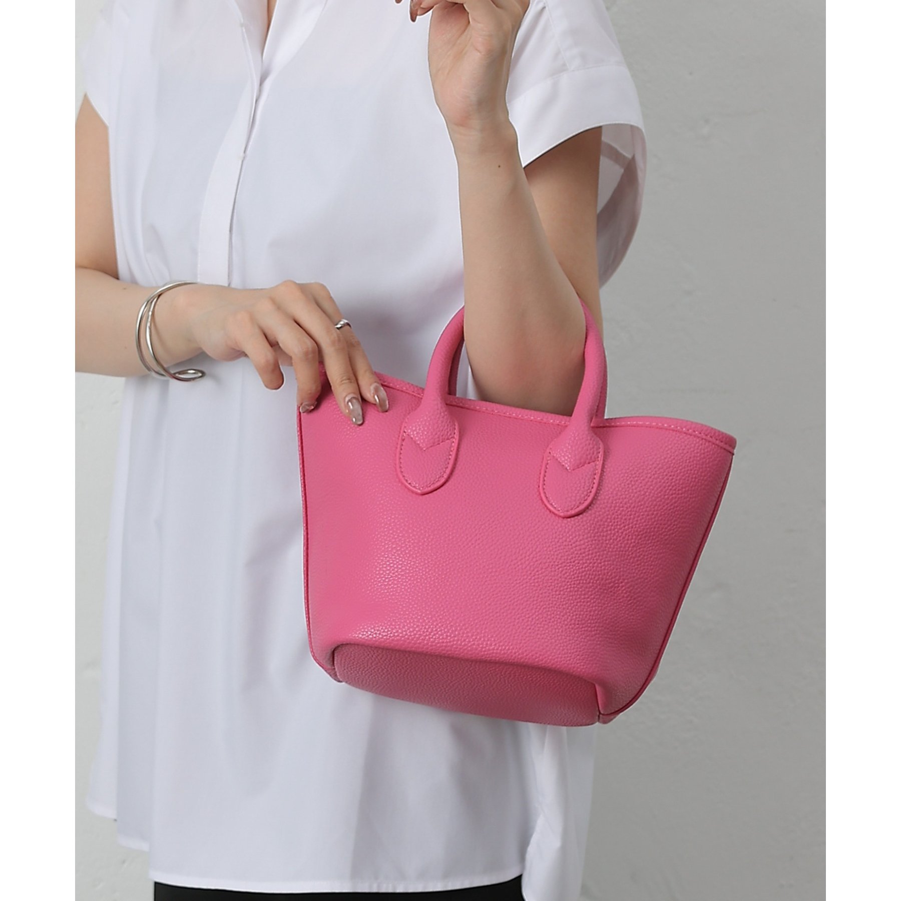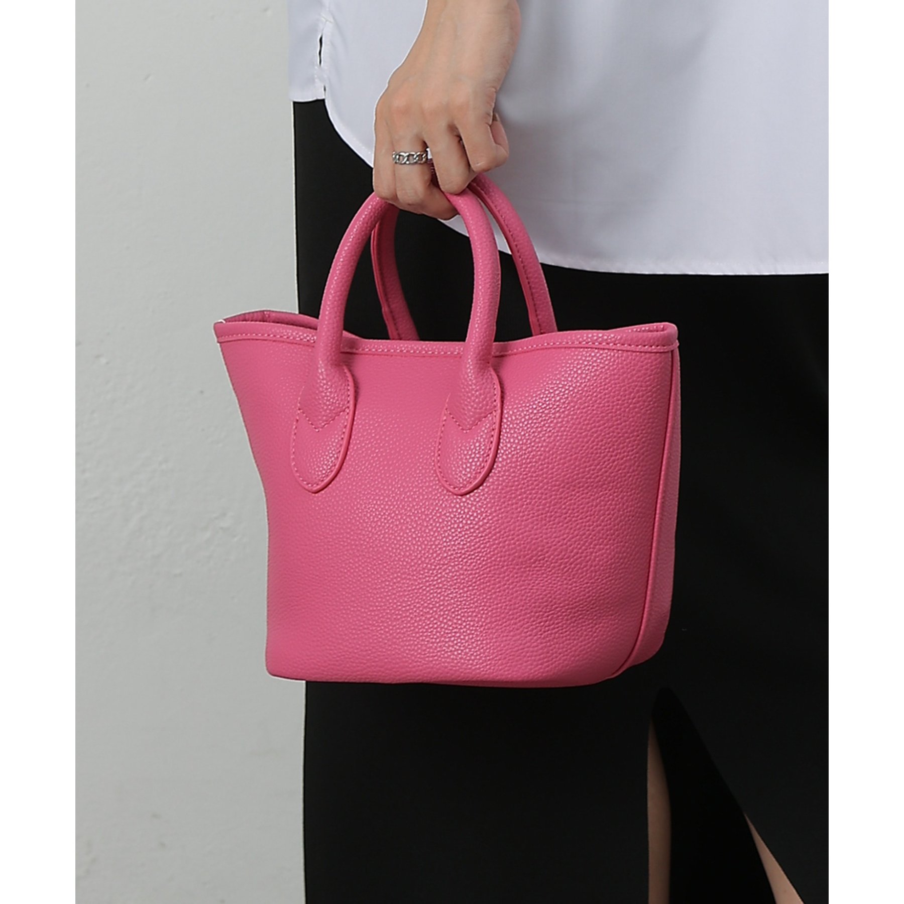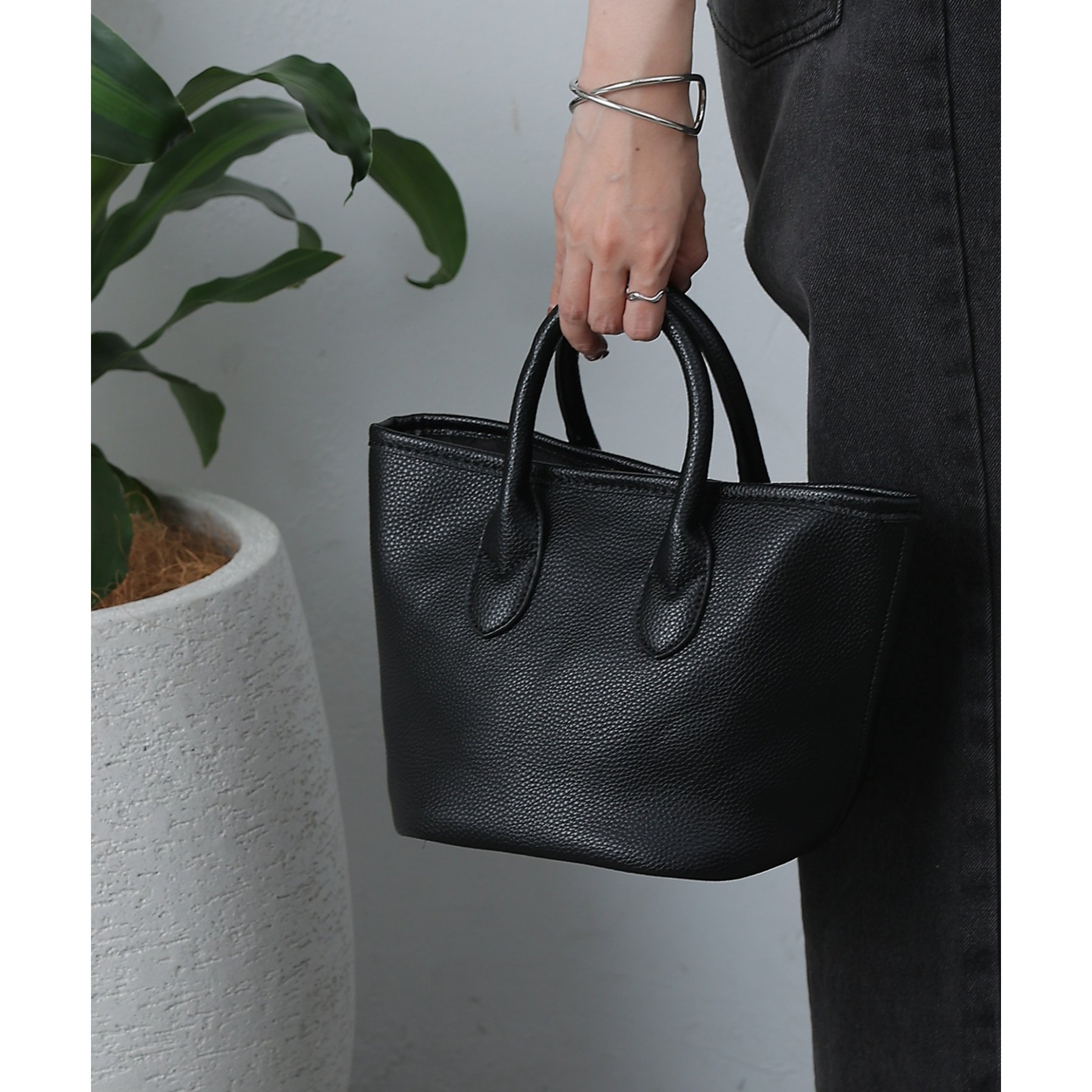 【コンパクトでも頼れる。合皮プチトートバッグ】