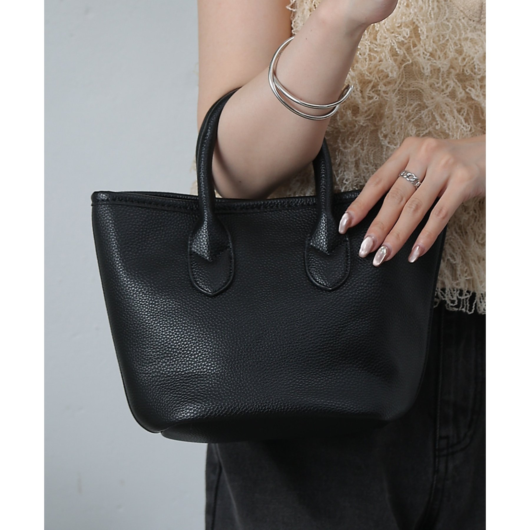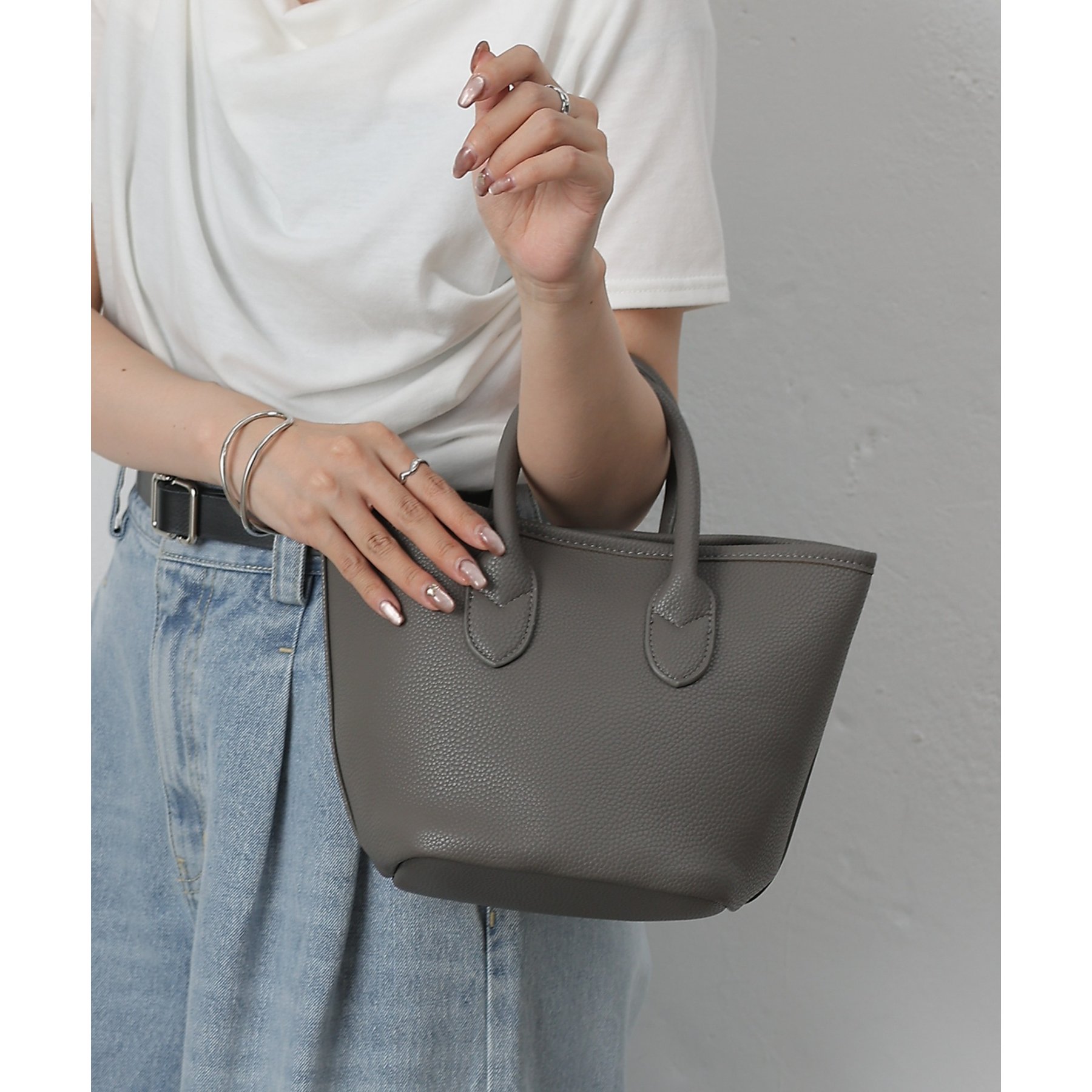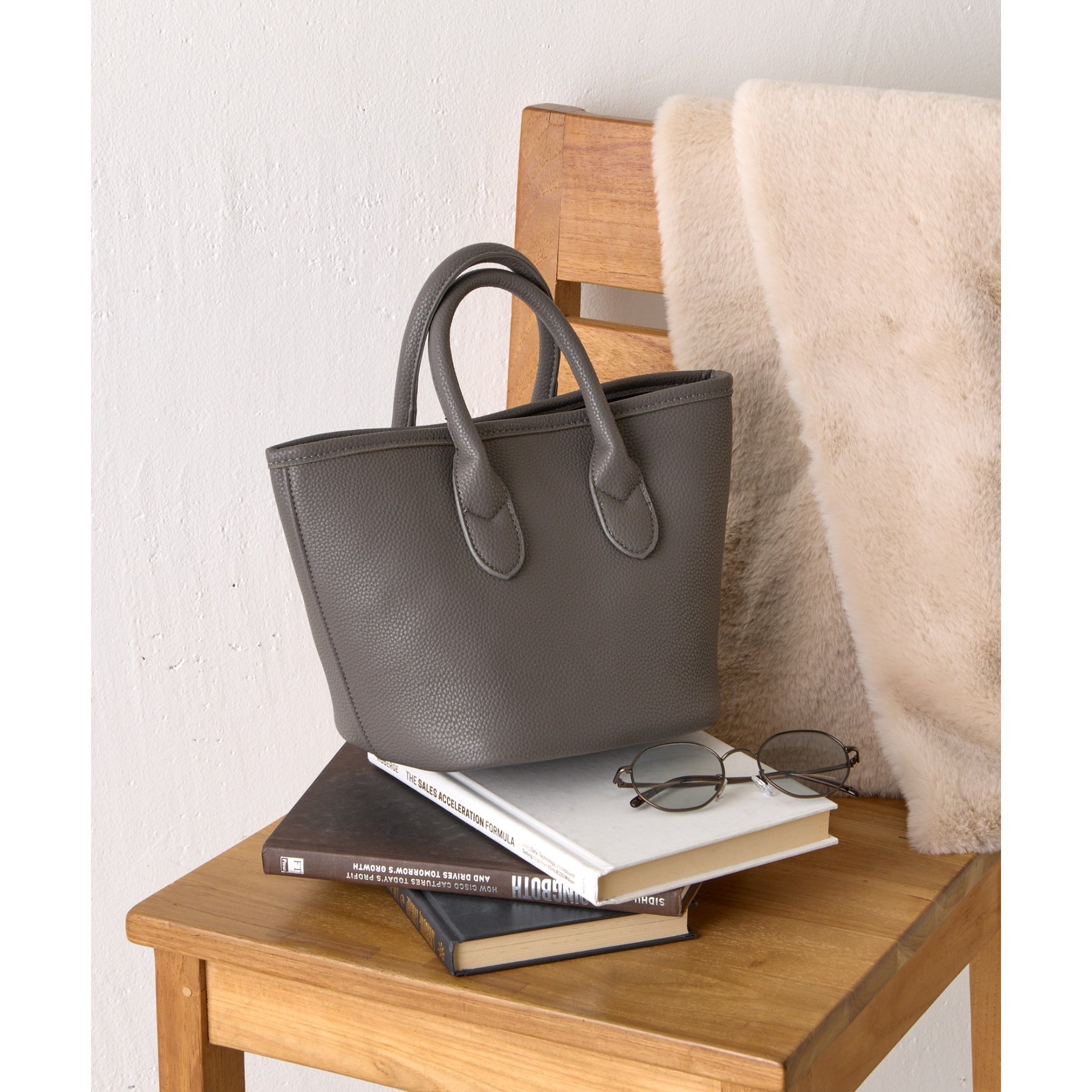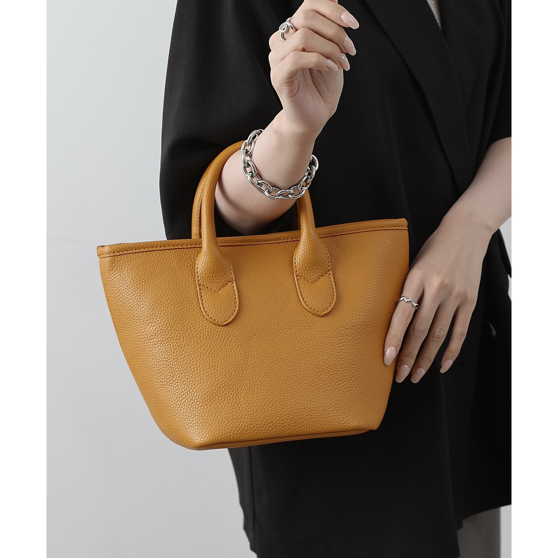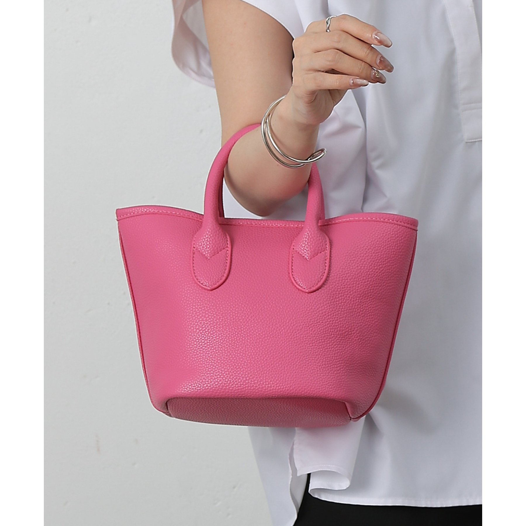 【コンパクトでも頼れる。合皮プチトートバッグ】