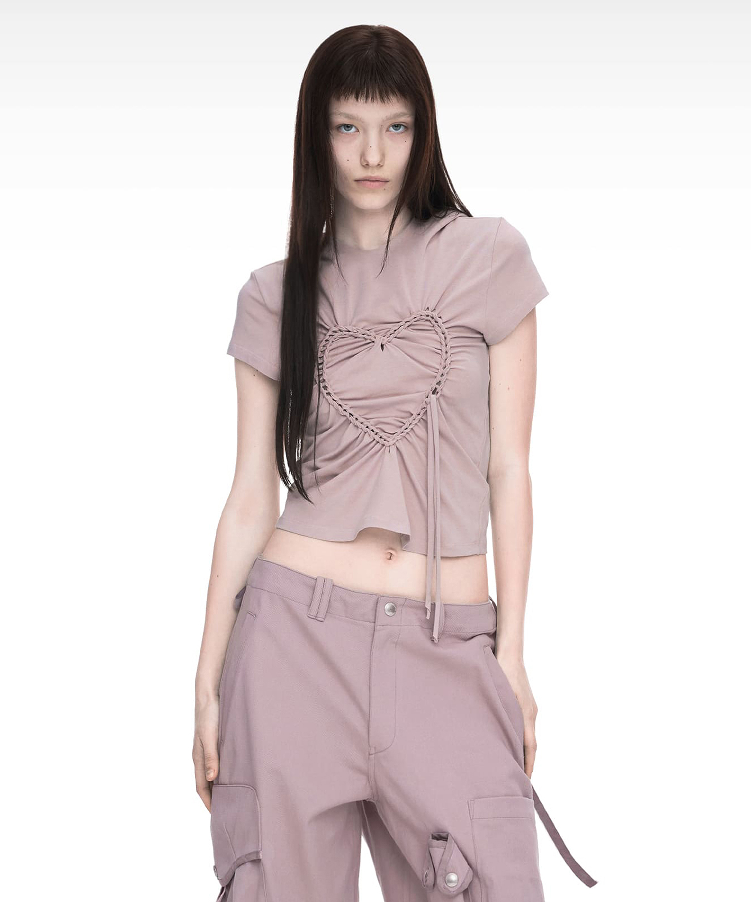 HEART BRAID HOODIE T-SHIRT DUSTY PINK