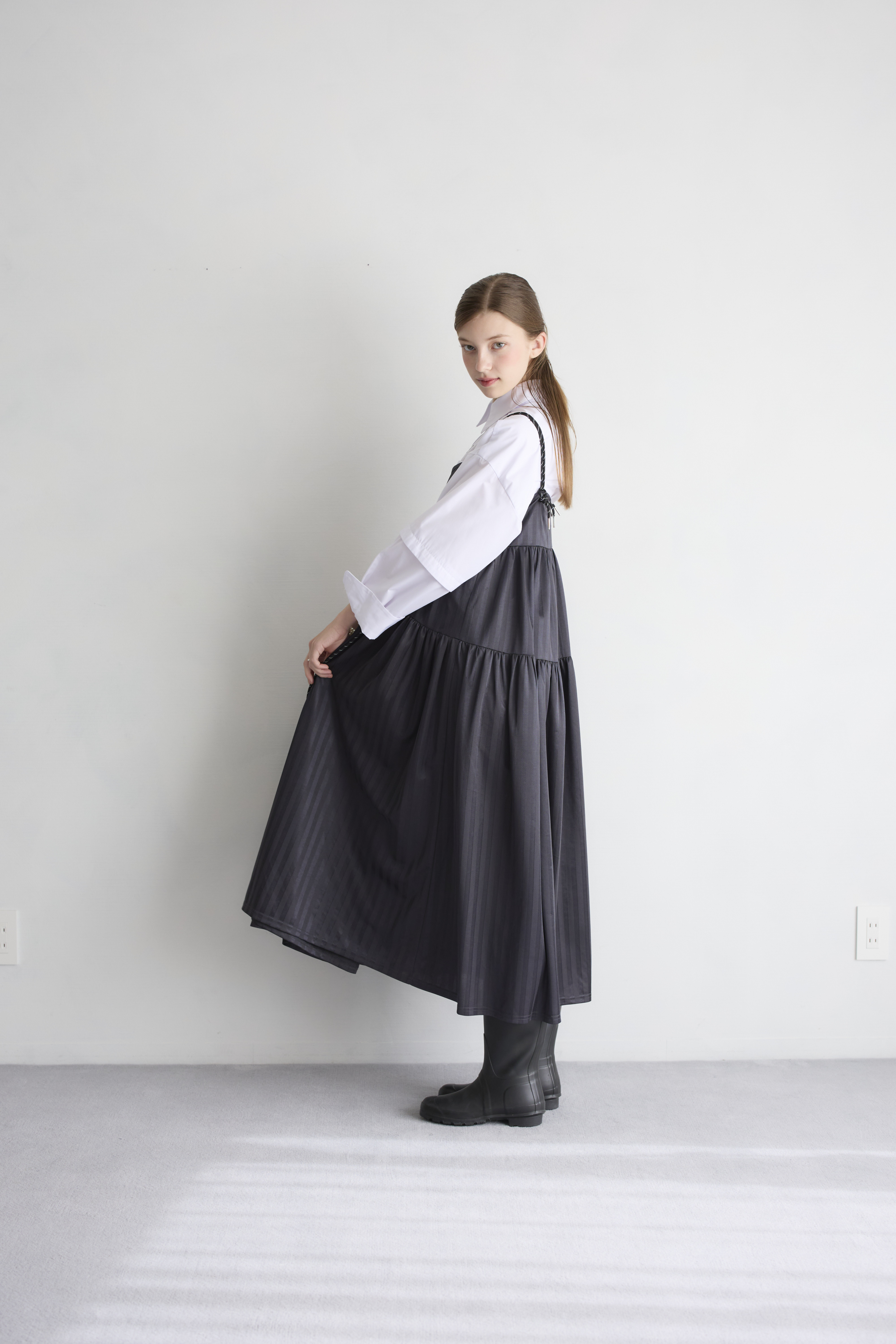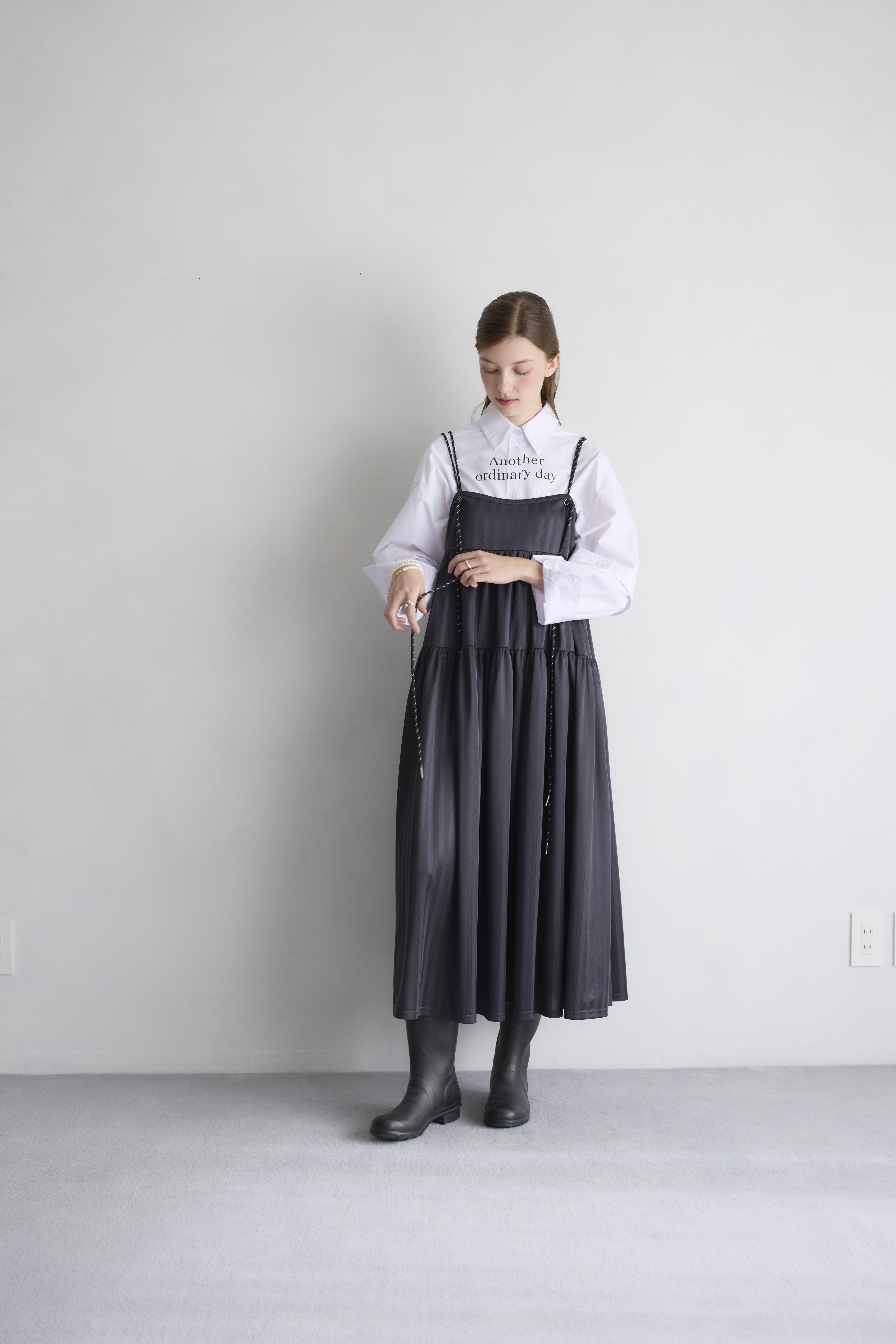 同色のストライプ柄が洗練された印象をプラス!