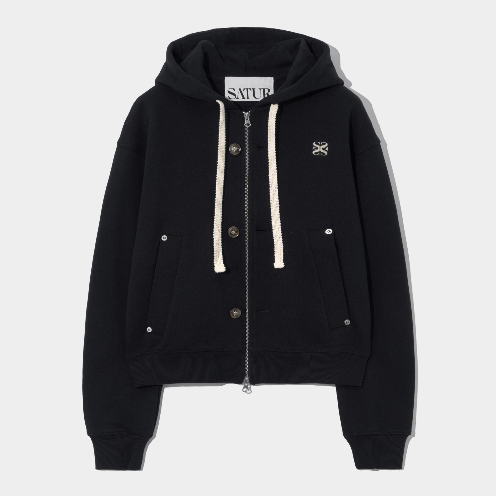 (W) Teo Cotton All Day Hood Zip-Up - Palette Black