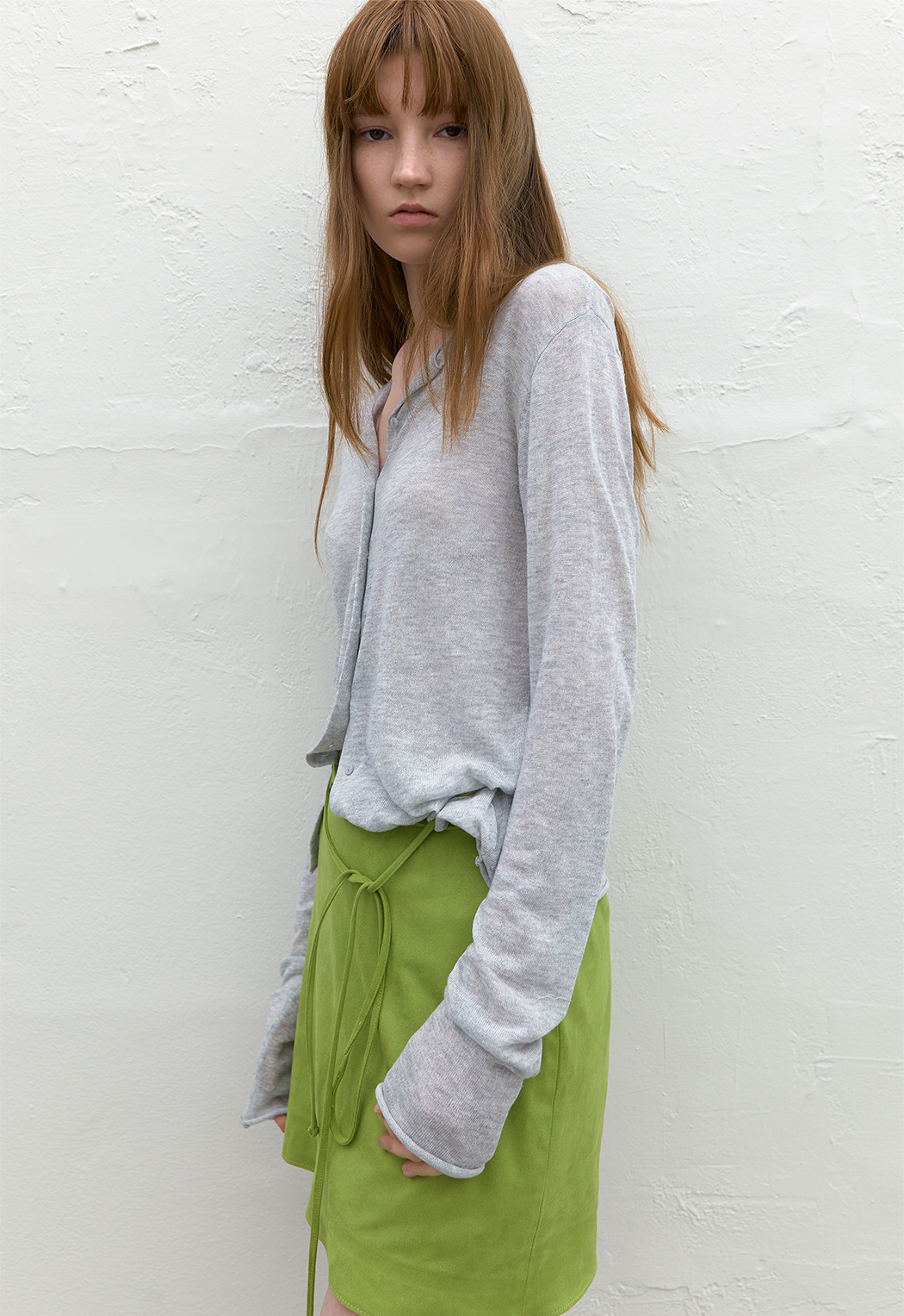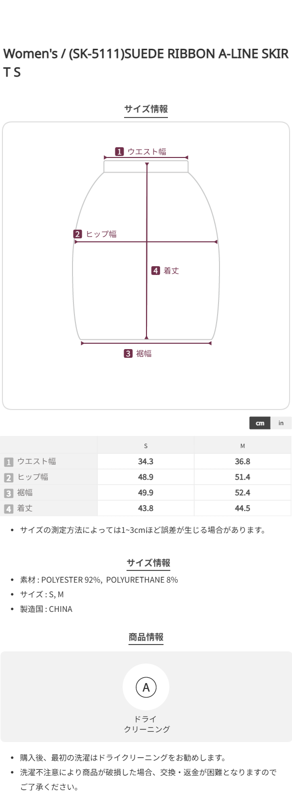 (SK-5111)SUEDE RIBBON A-LINE SKIRT S