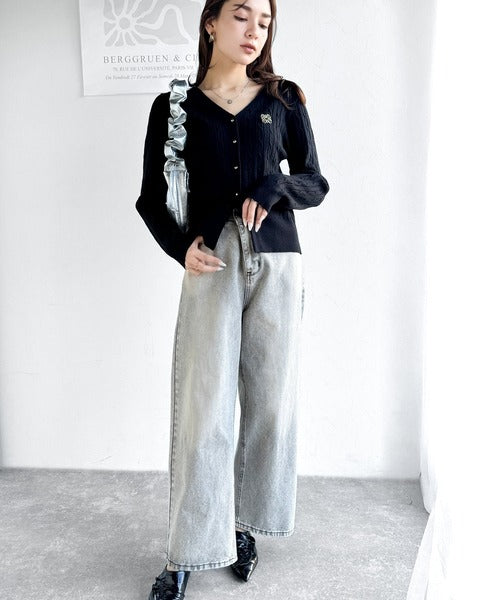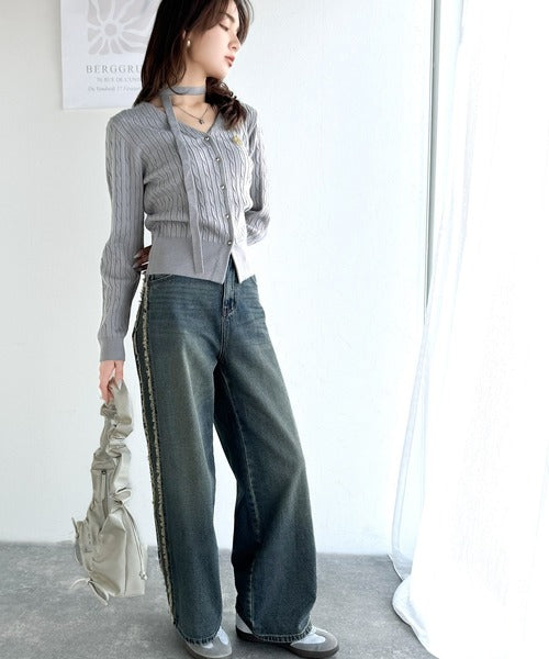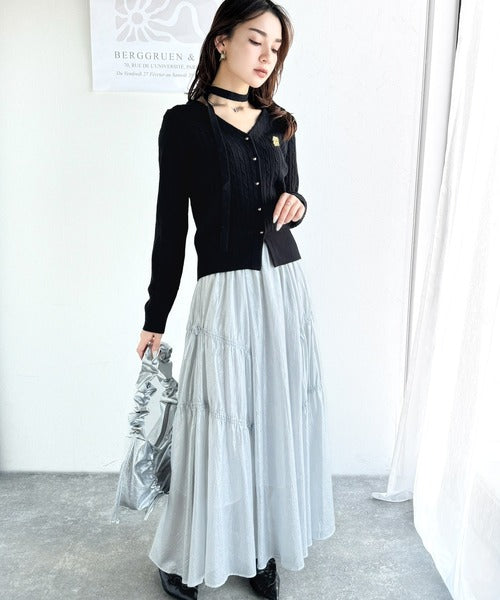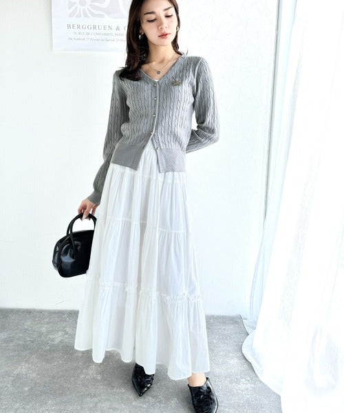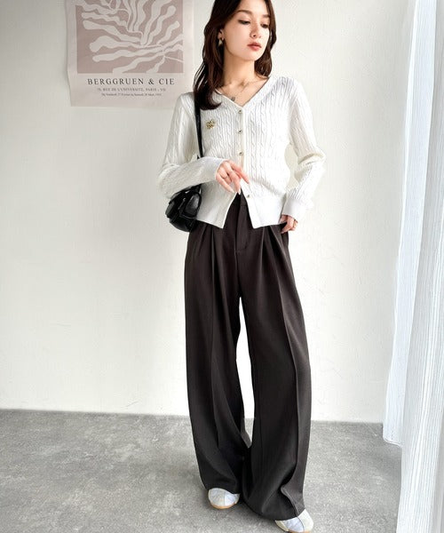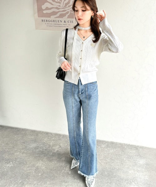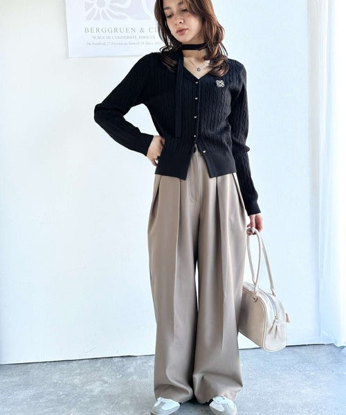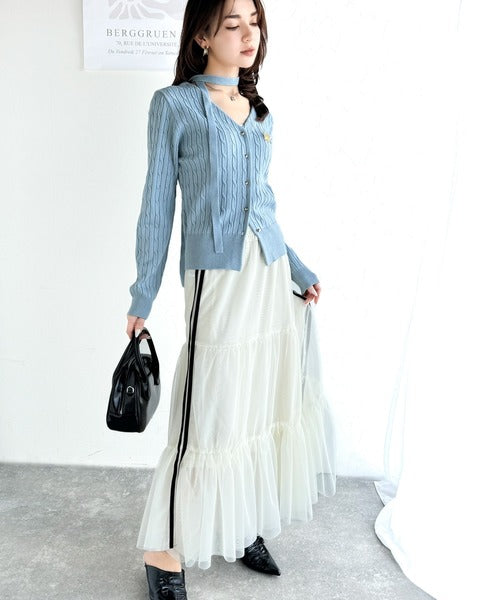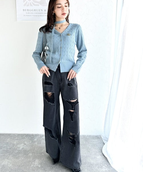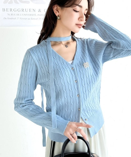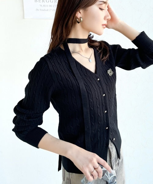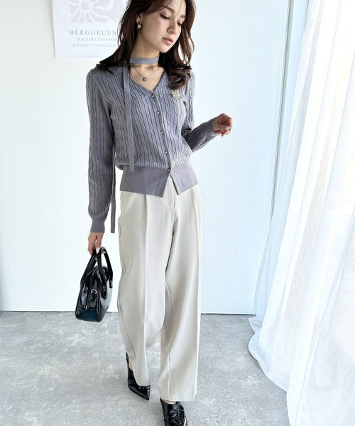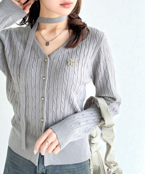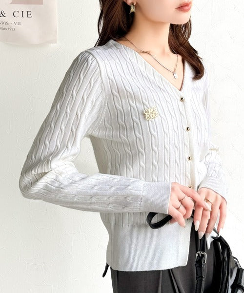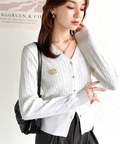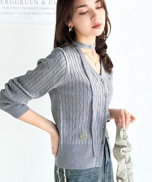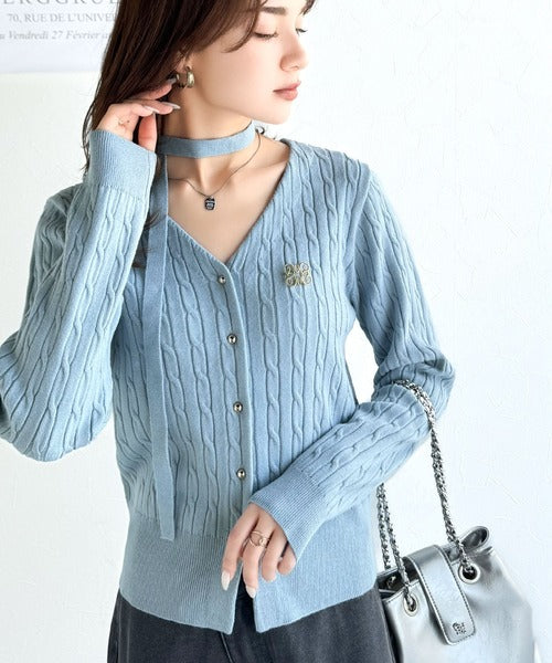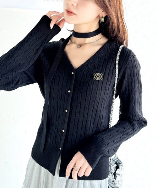 【mily bilet】大人ニットを極める。チョーカー&ブローチ付きケーブル編みVネックニットカーディガン mi1029098