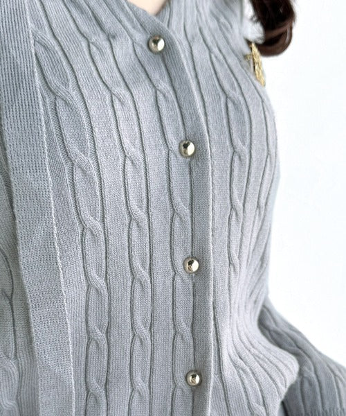 ふっくらとしたミニケーブル編みのニットカーディガン。
