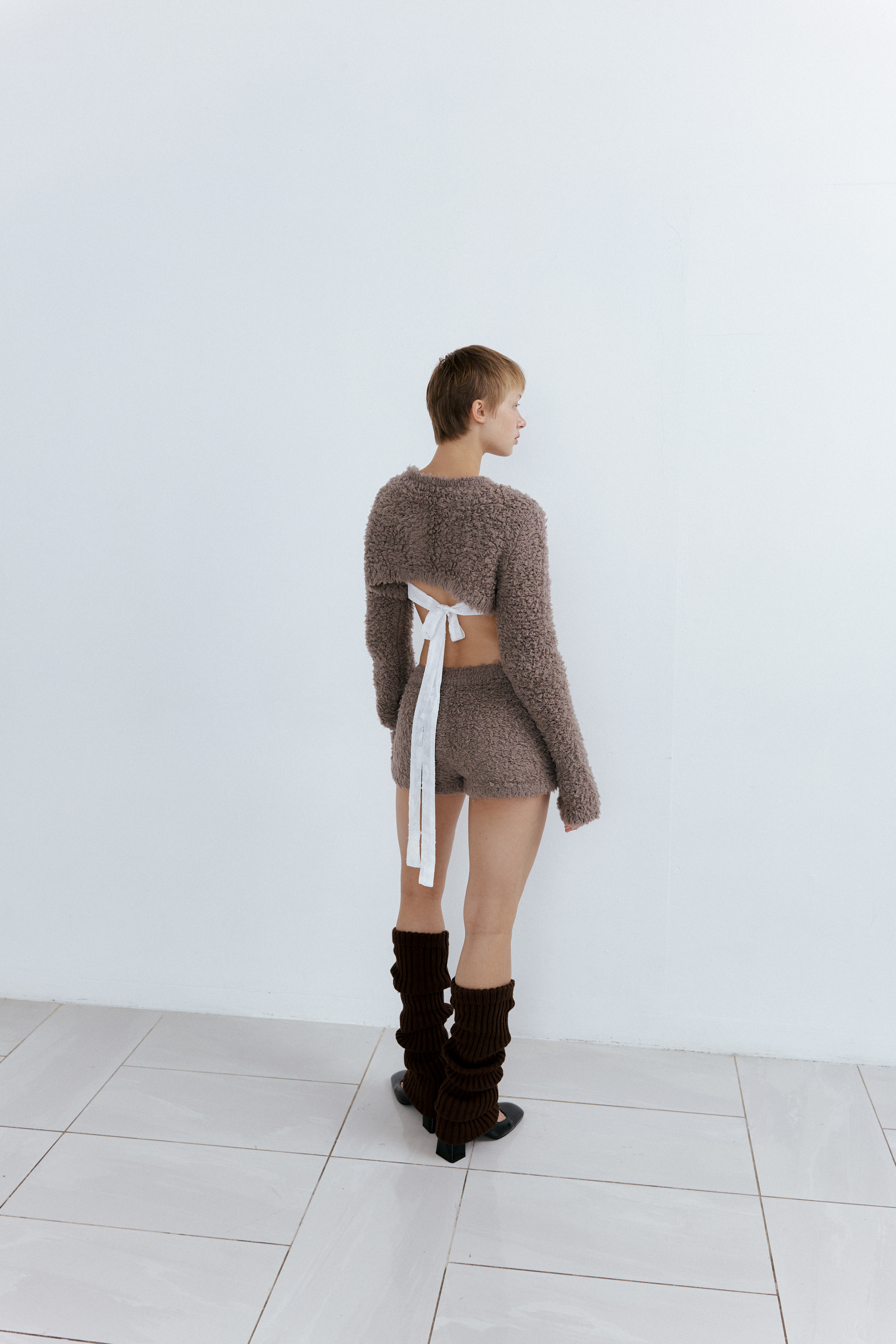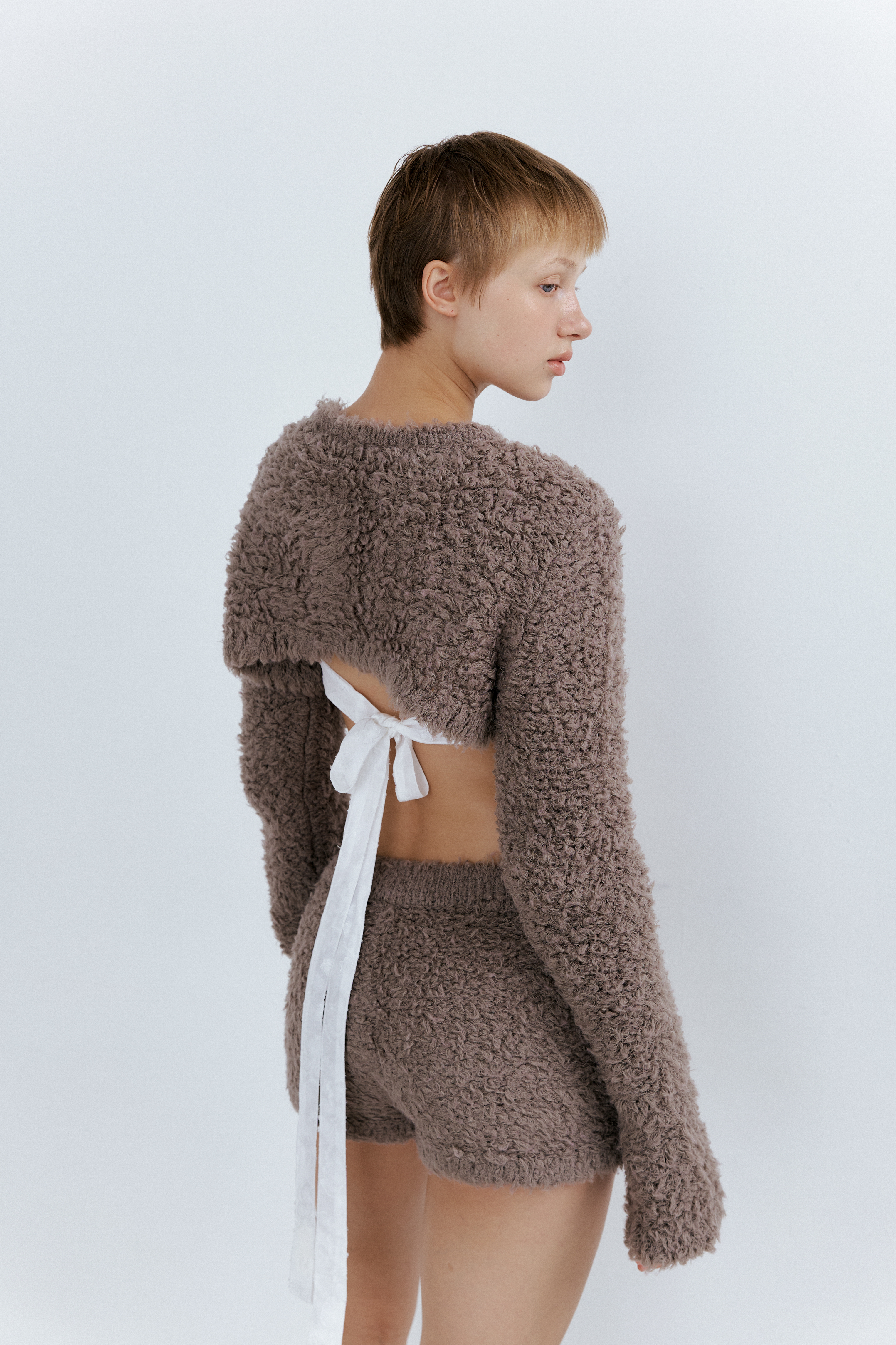 Fuzzy Bolero Cardigan_Mocha
