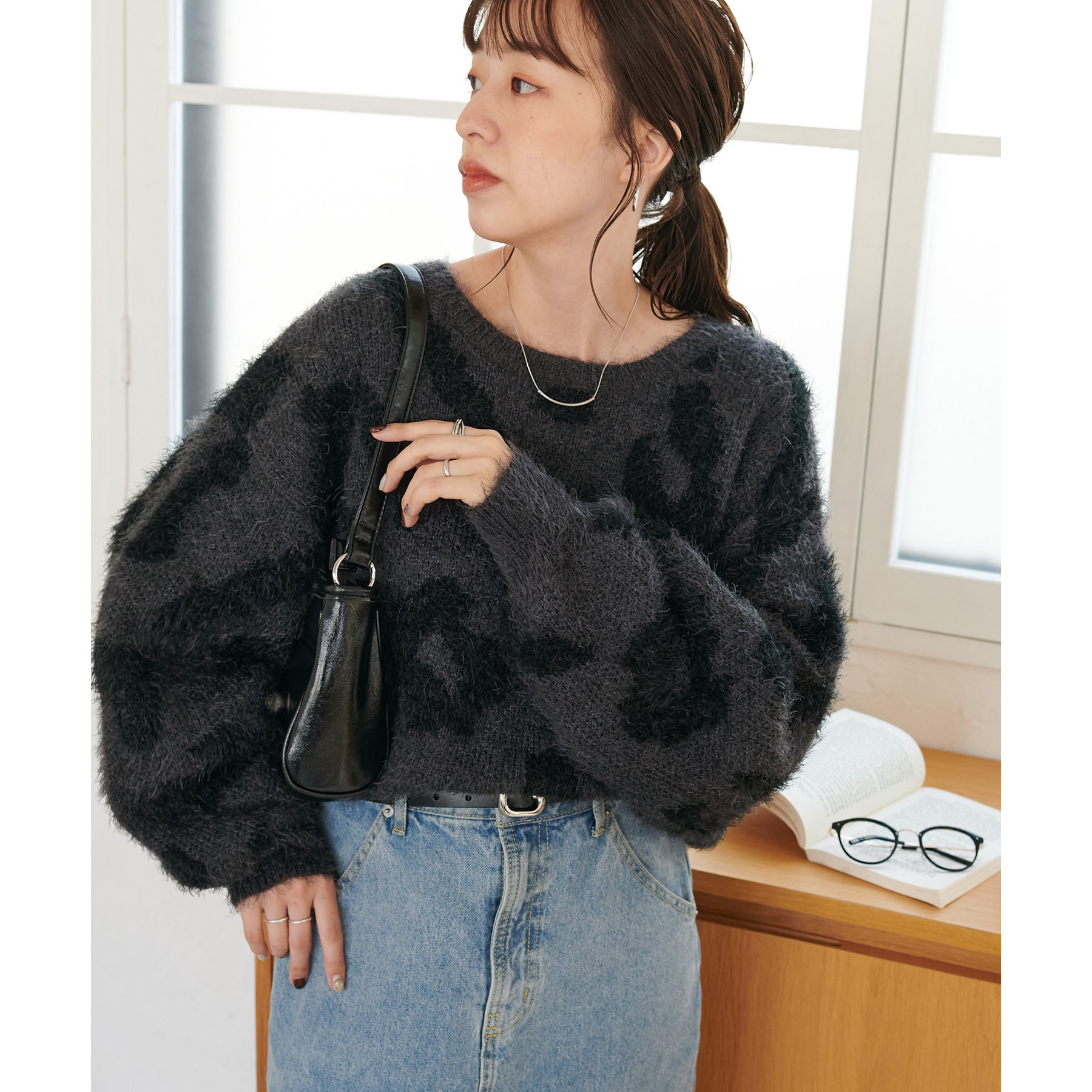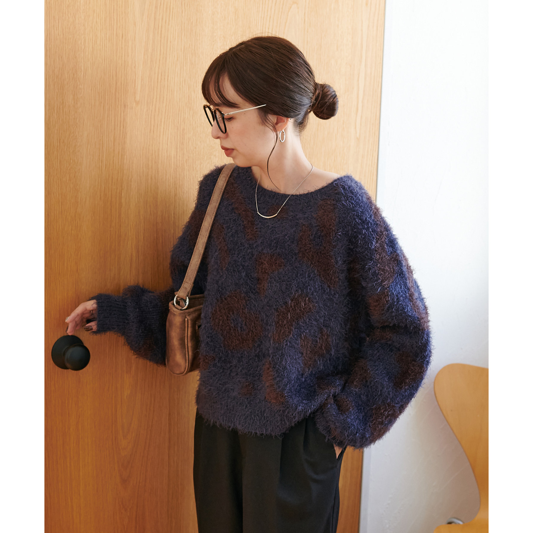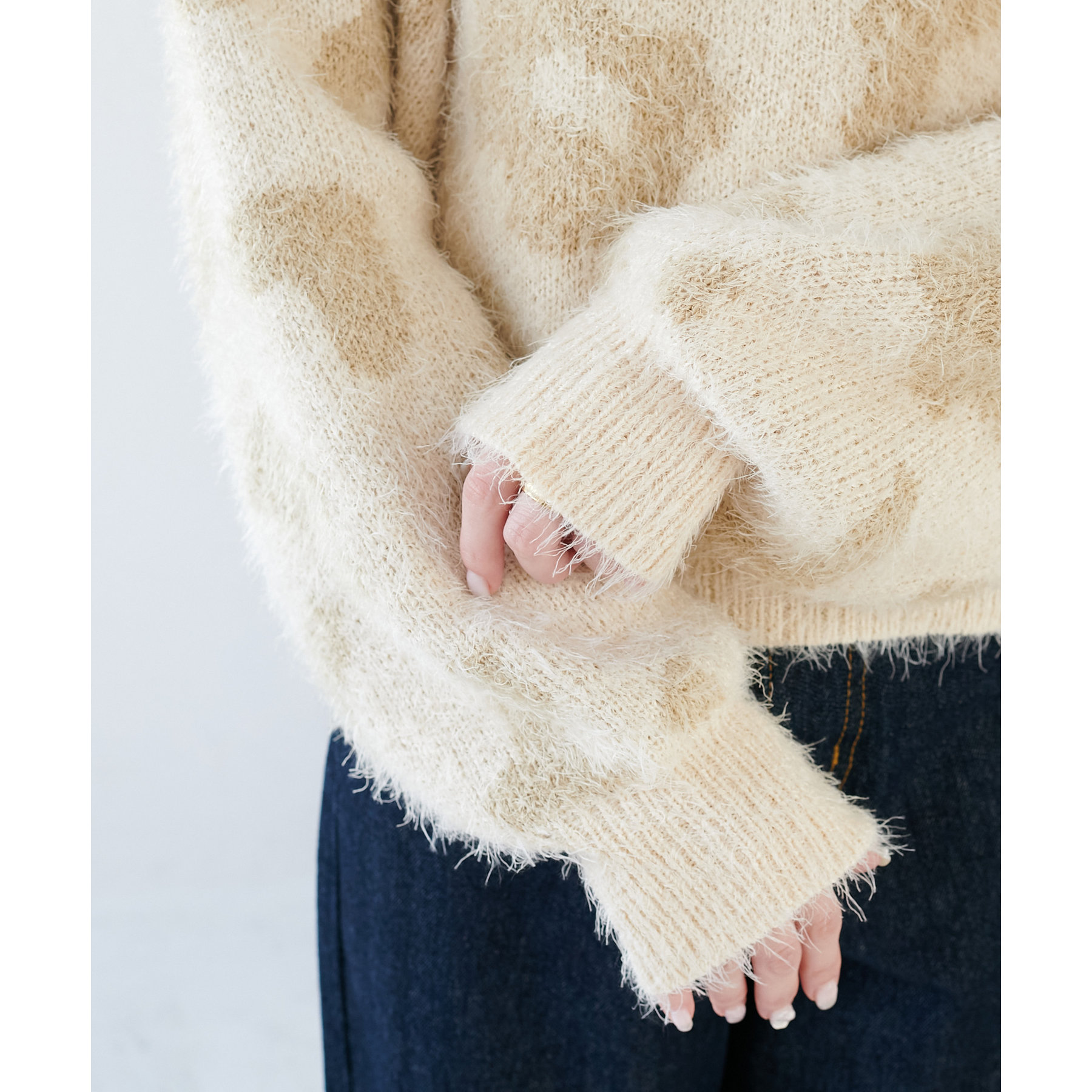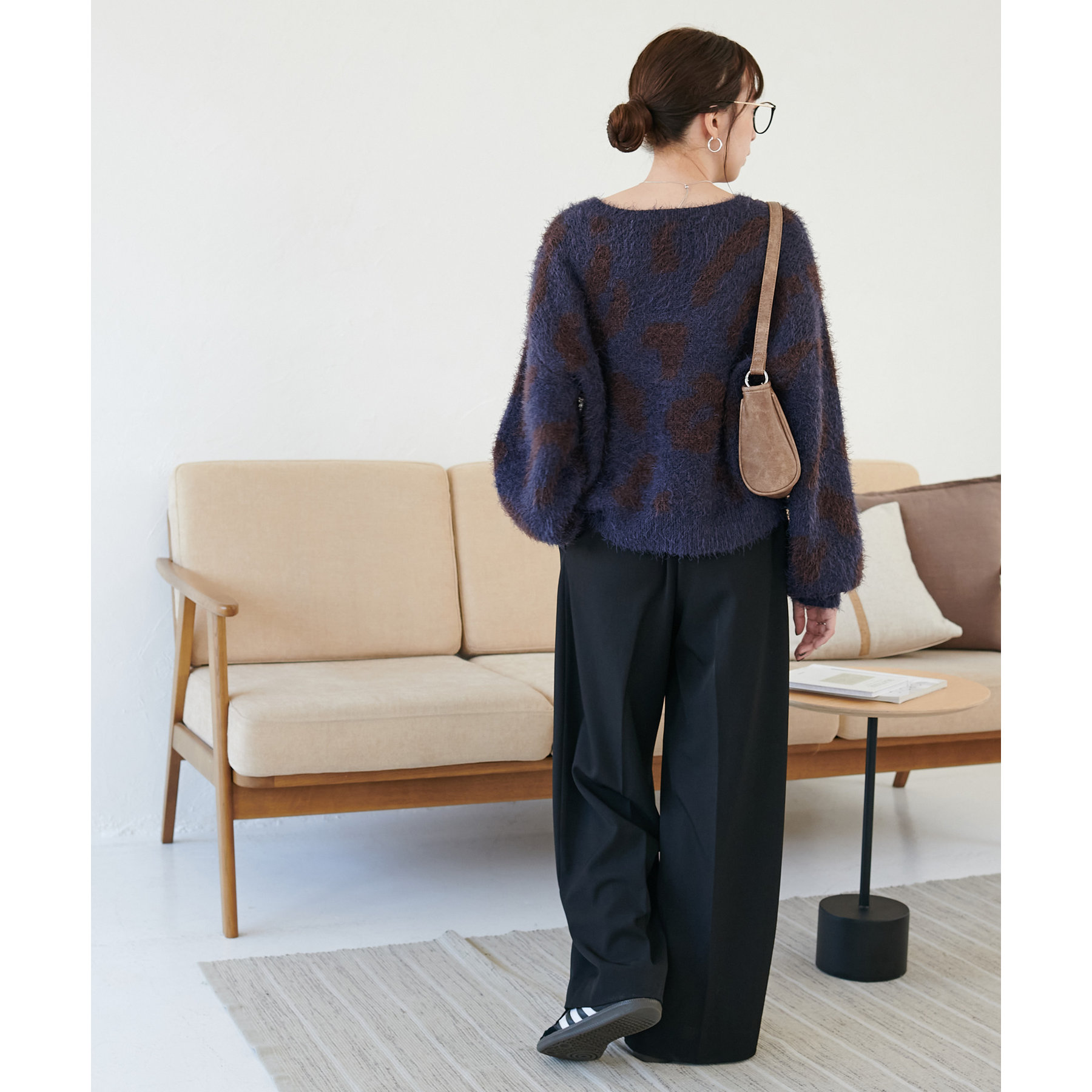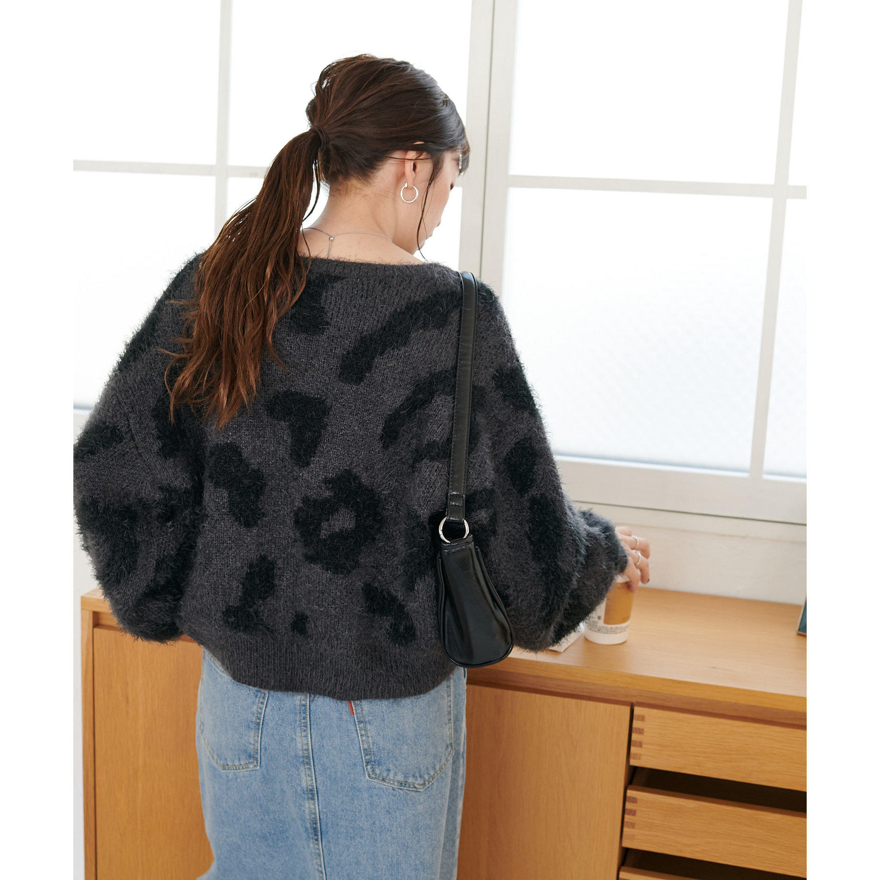 165cmスタッフ:レオパードといえばカジュアルな印象でしたが、フェザーヤーン素材にしたことで柔らかな印象になり甘目のアイテムとも合わせられます!