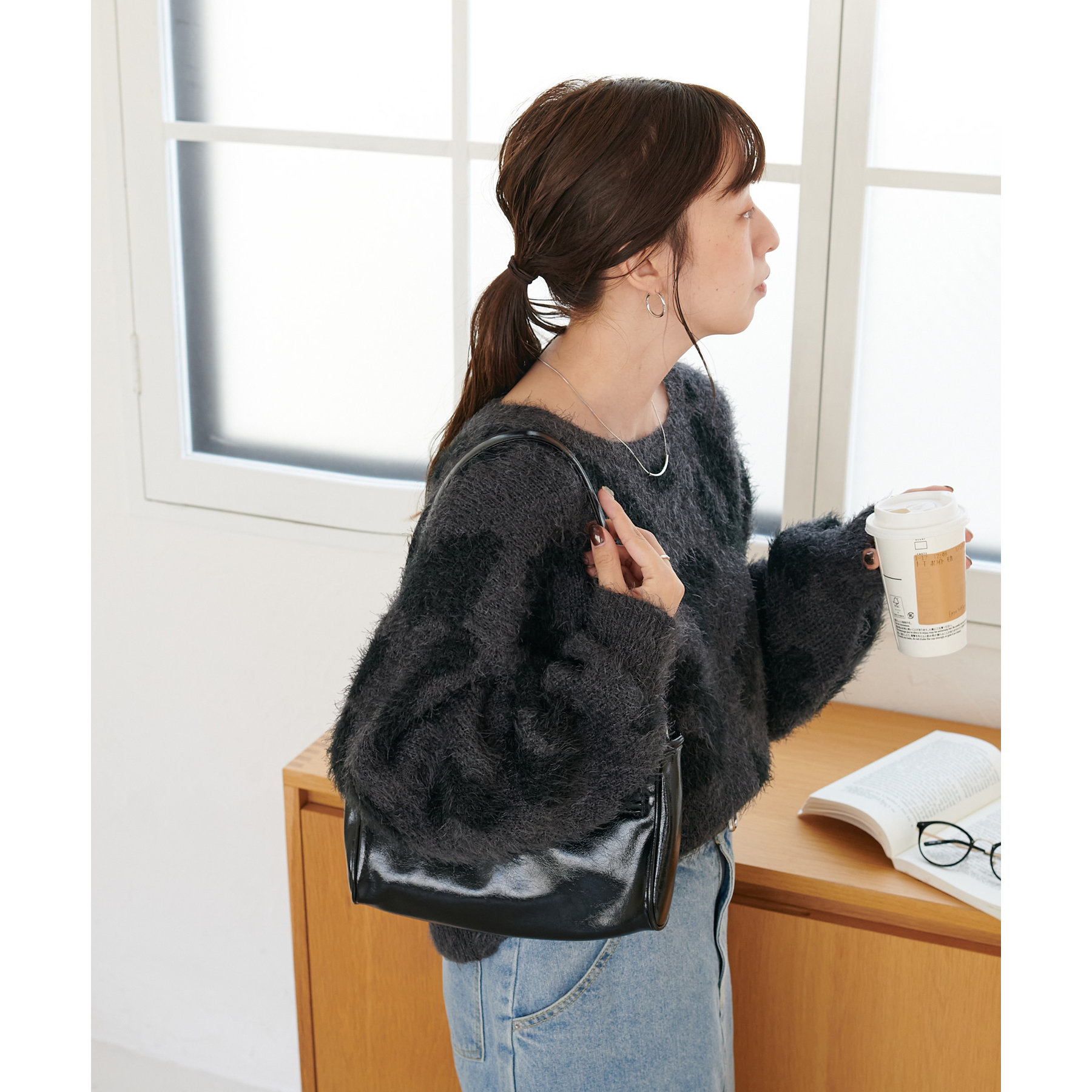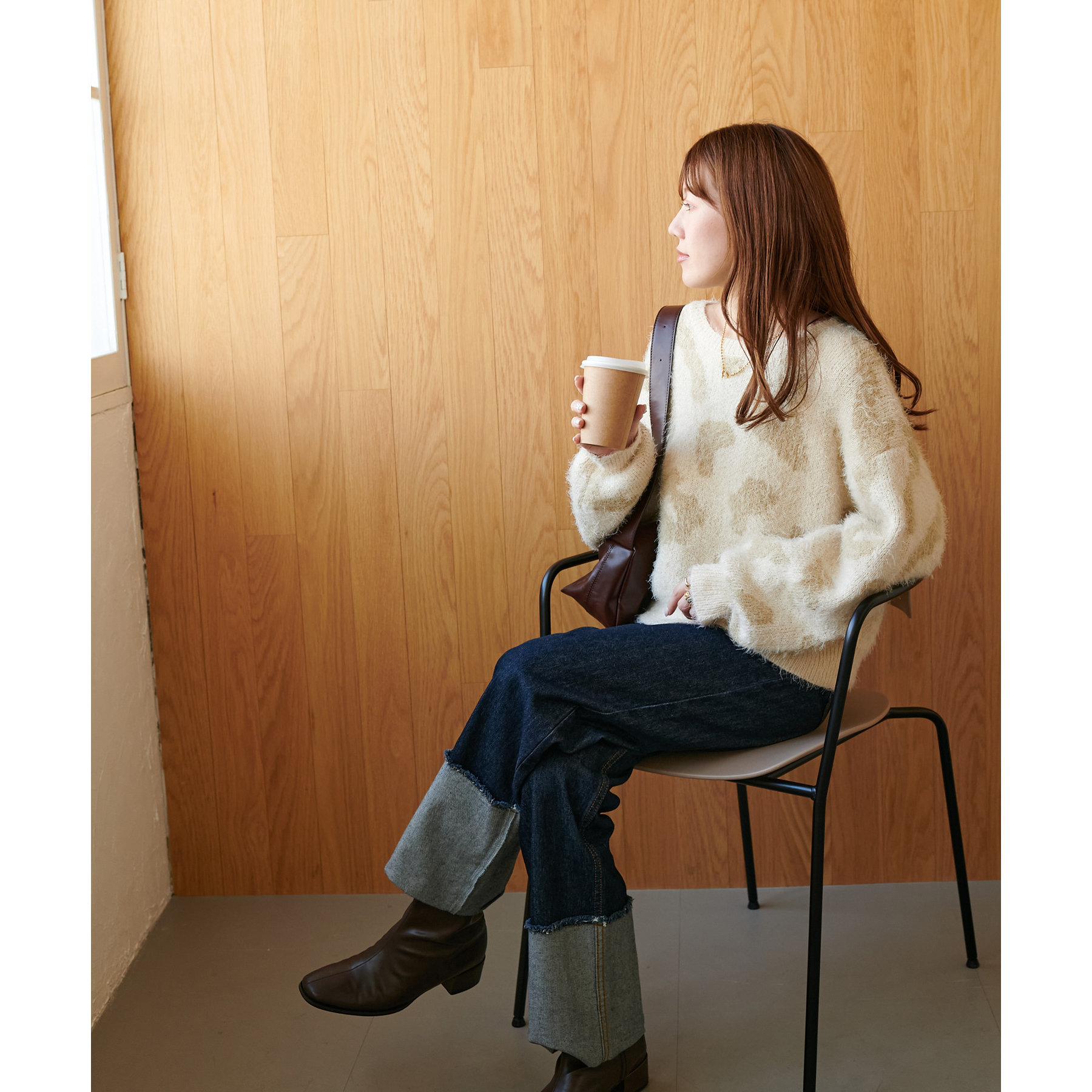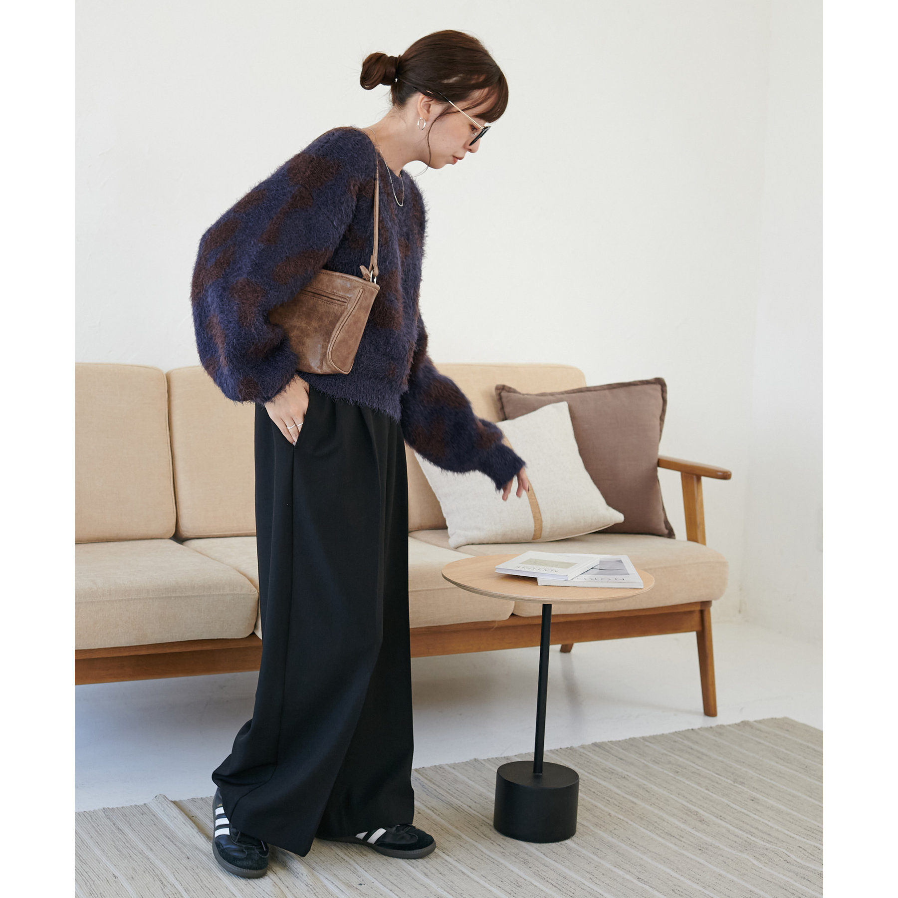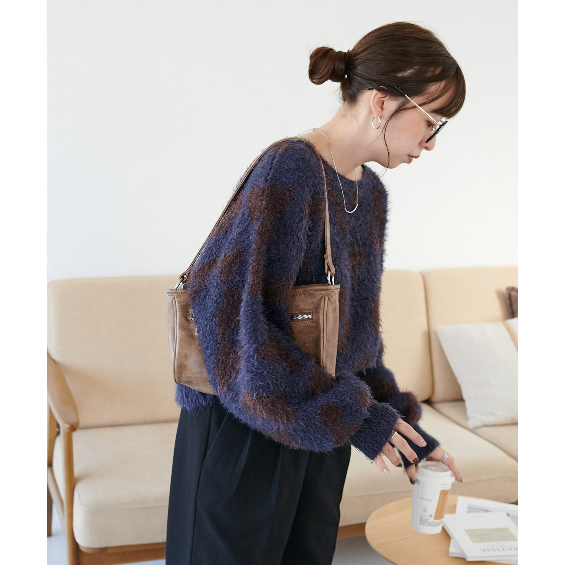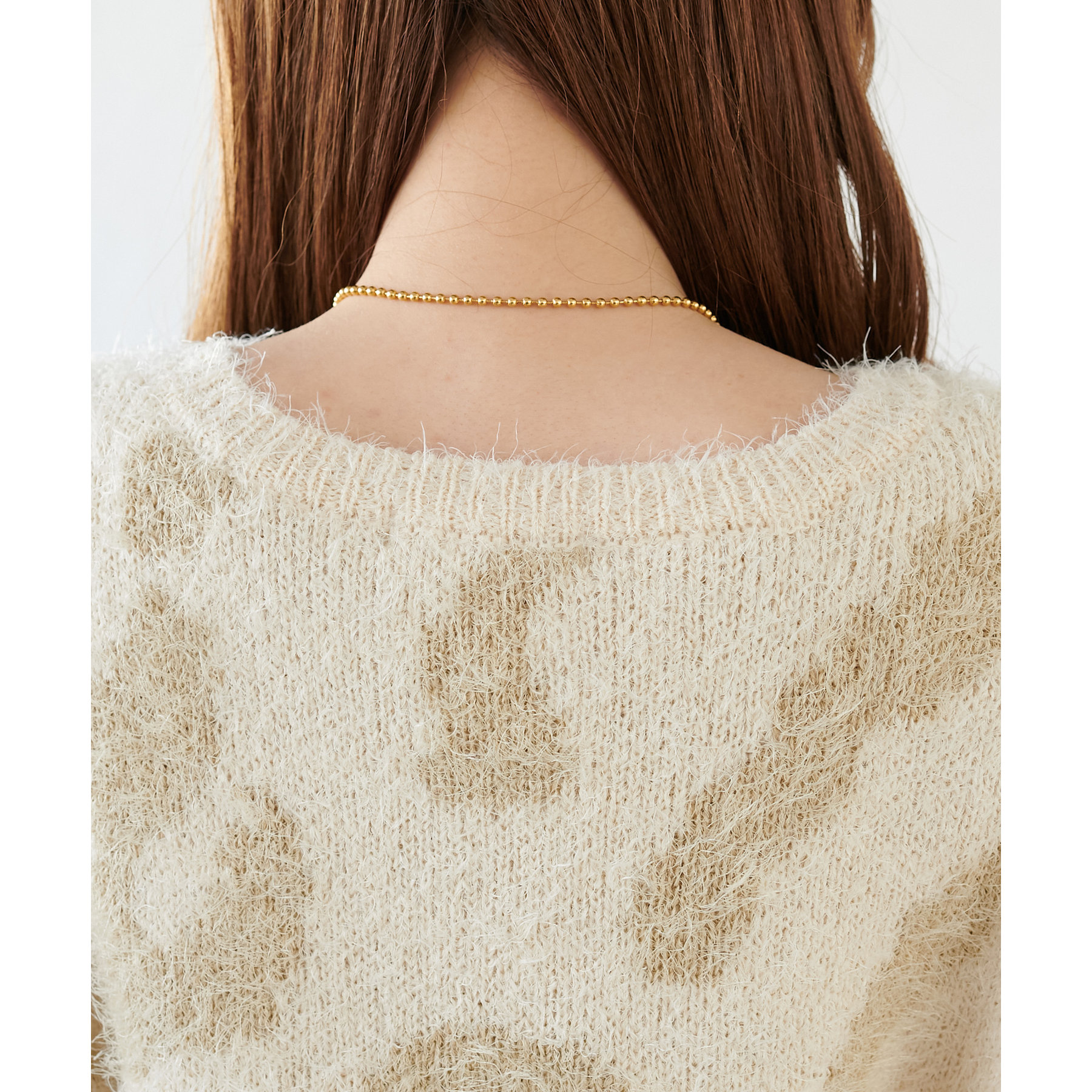 165cmスタッフ:レオパードといえばカジュアルな印象でしたが、フェザーヤーン素材にしたことで柔らかな印象になり甘目のアイテムとも合わせられます!