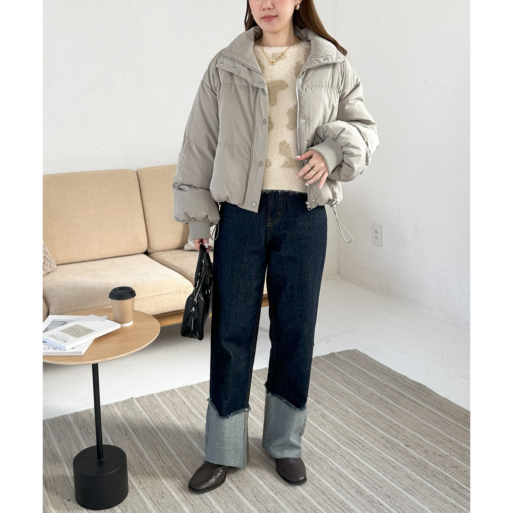 ややコンパクトな着丈なので、アウトスタイルもインスタイルも楽しんでいただきやすいデザインになっています。