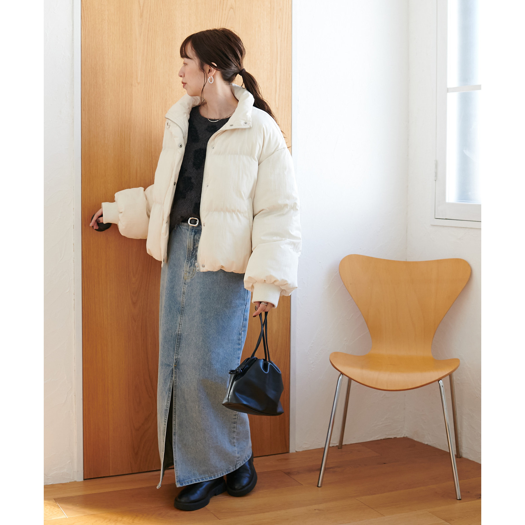 ゆったりとした身幅とボリューム袖がこなれた印象に◎