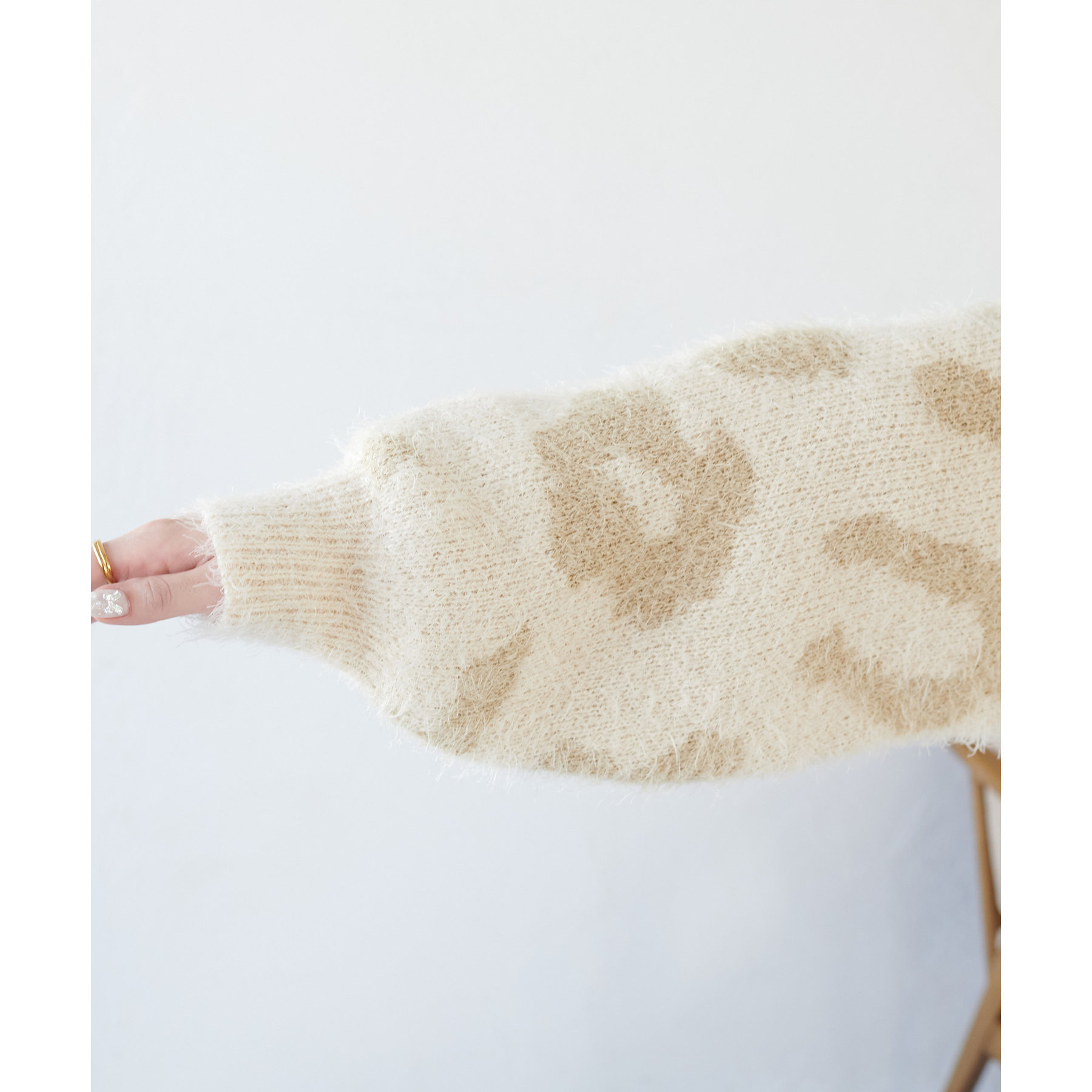 カジュアルな印象になりがちなレオパード柄を柔らかな素材感で仕上げたことで、女性らしい印象で着ていただけるニットです!