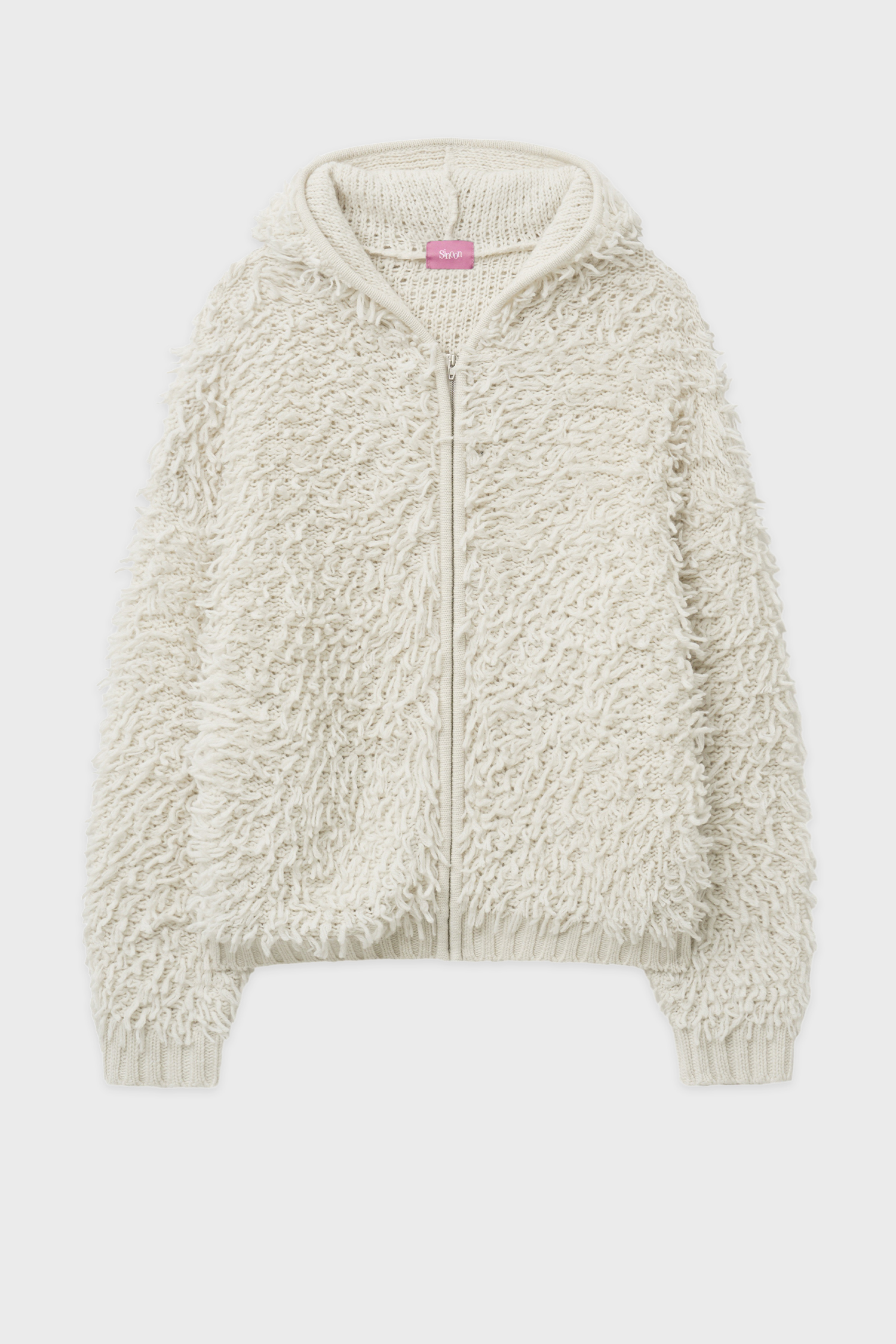 Sinoon Fringe Hooded Knit Zip-up (Ivory)