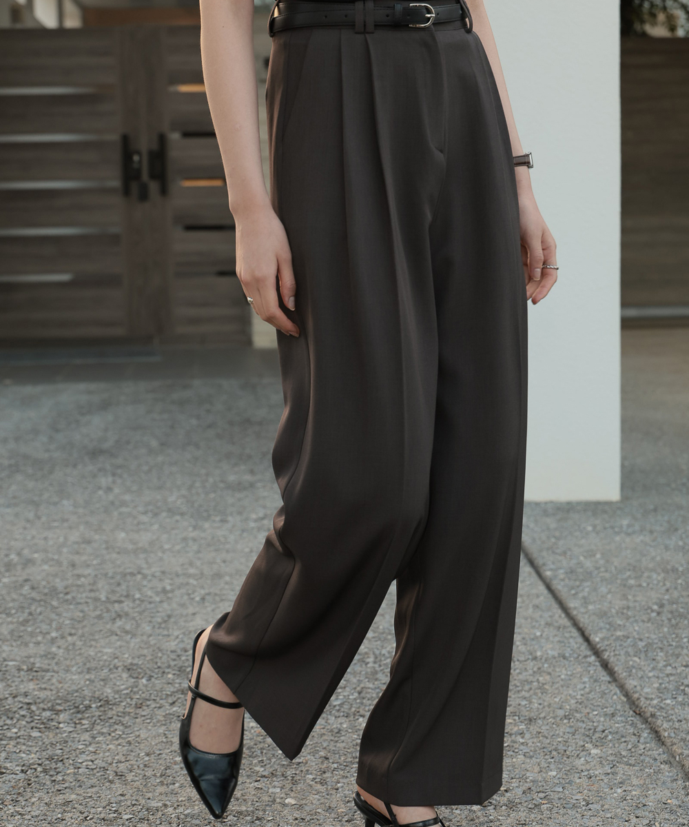 Classic Pintuck Wide Slacks [Charcoal]