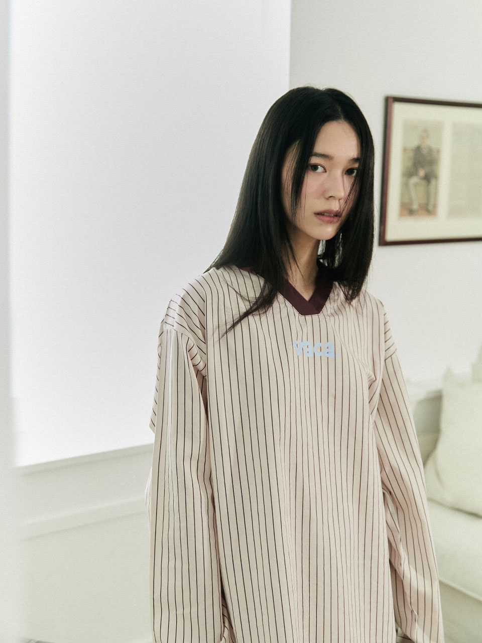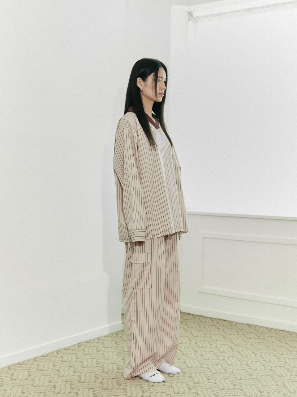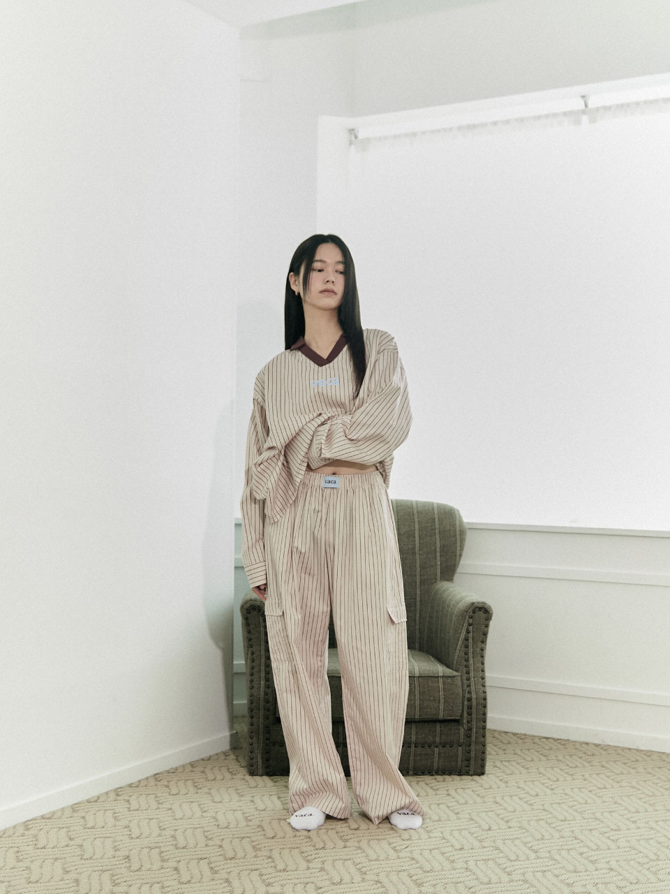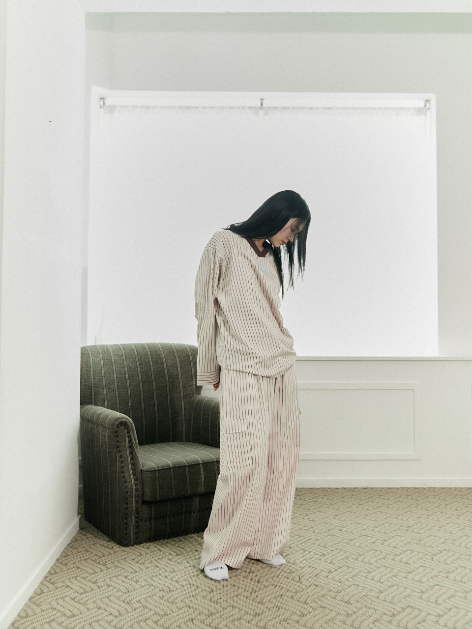UNISEX PAJAMA STRIPE RUGBY POLO TOP (PINK)