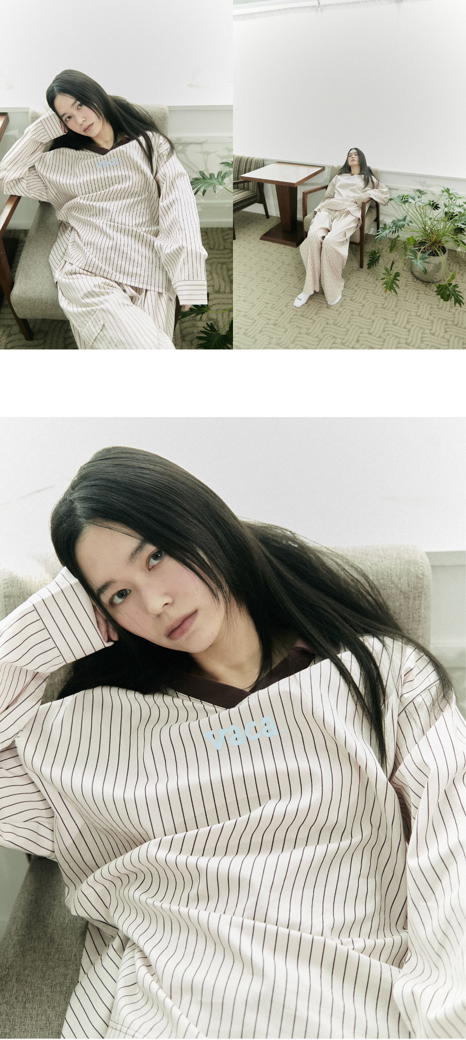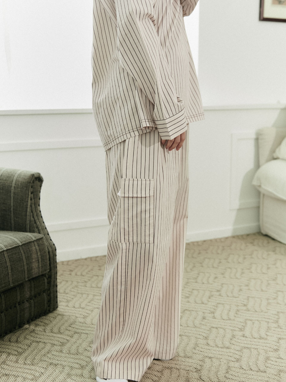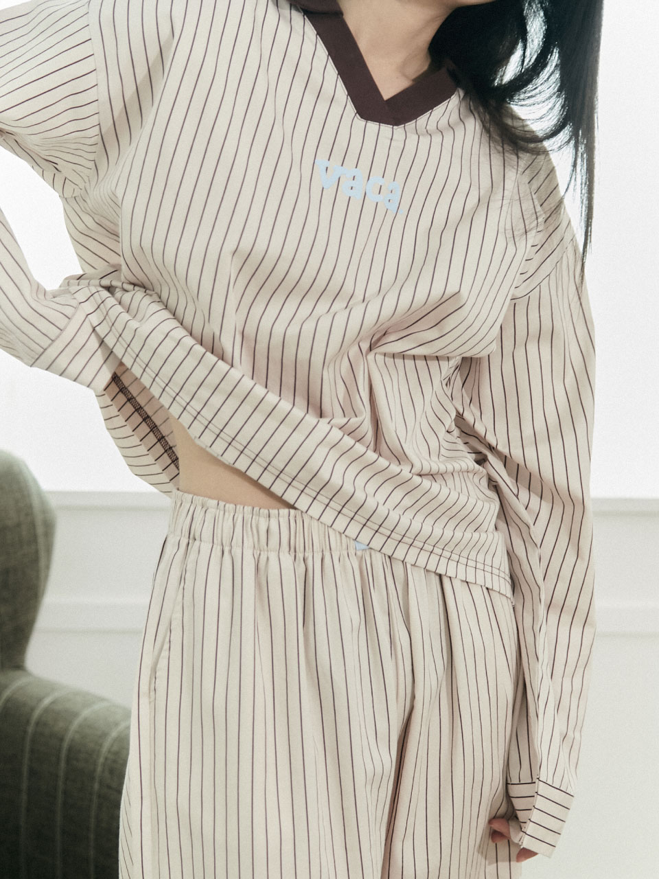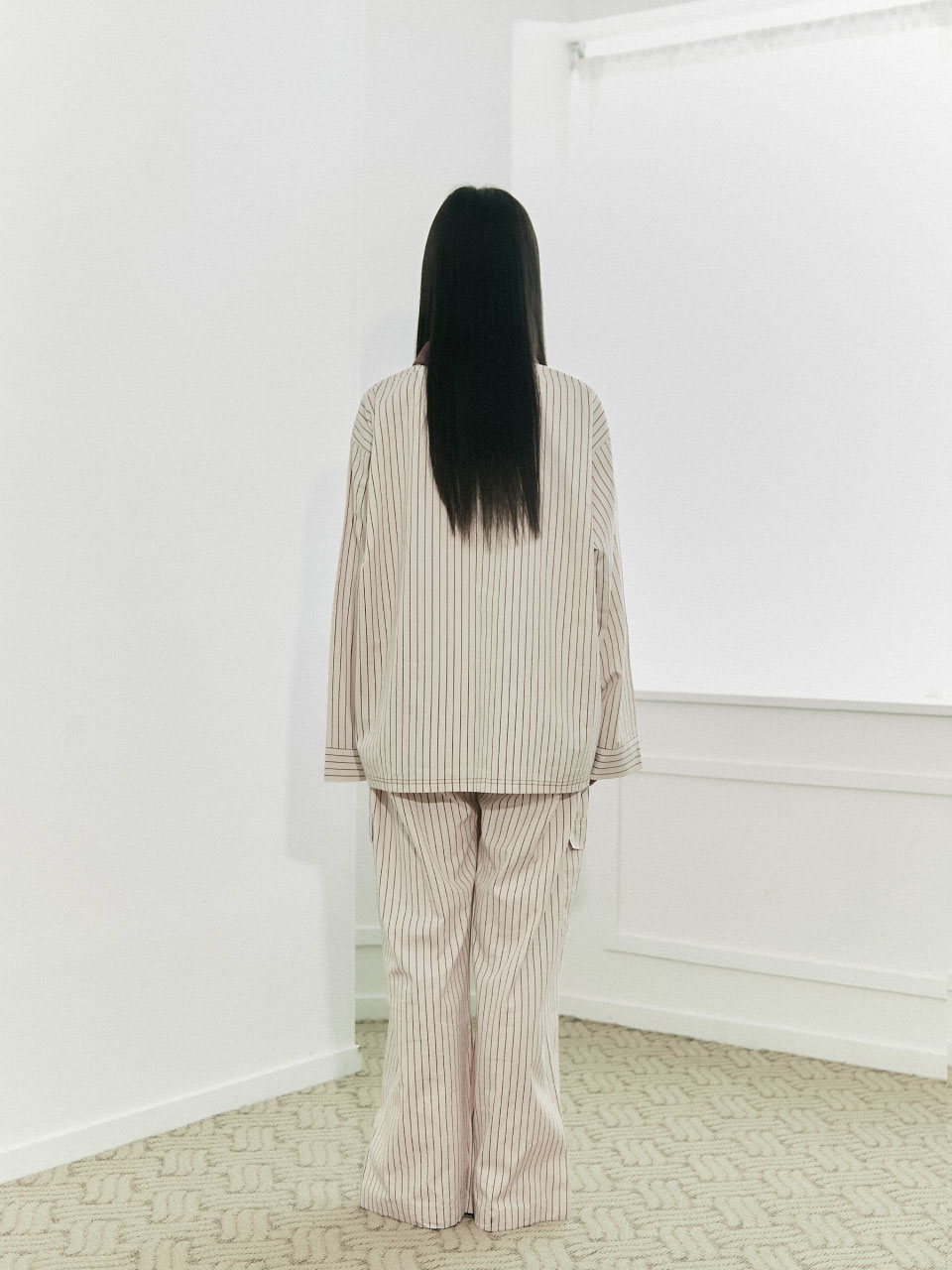 UNISEX PAJAMA STRIPE RUGBY POLO TOP (PINK)