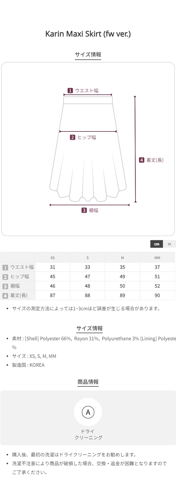 ※従来の Karin Maxi Skirt とサイズに若干の差異があります。必ず詳細サイズ表をご確認ください。