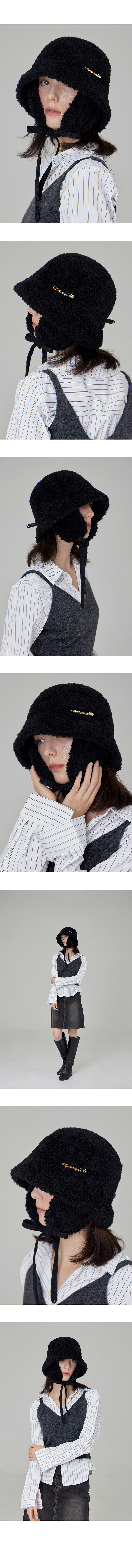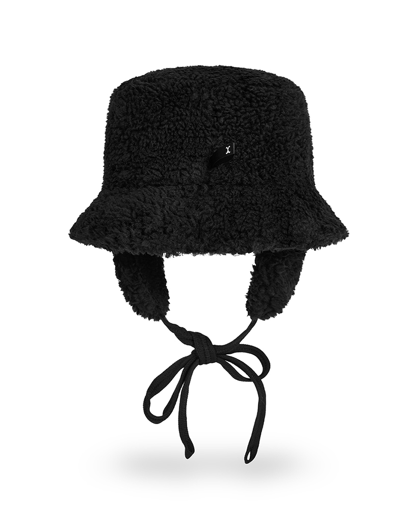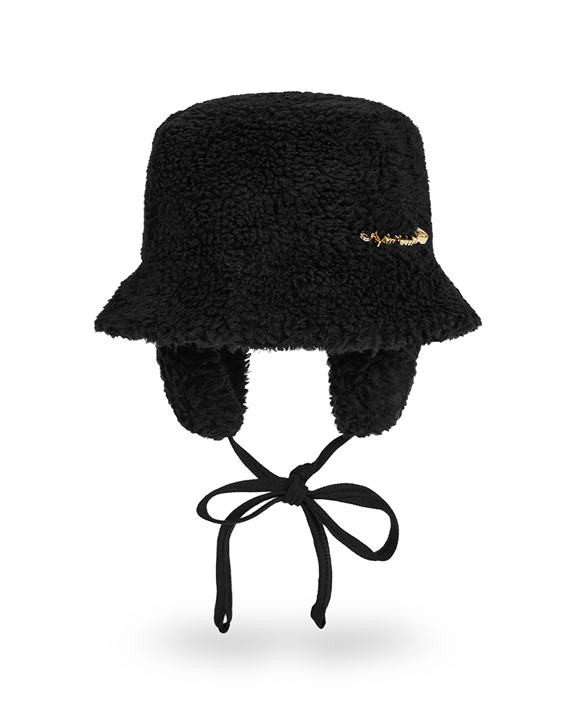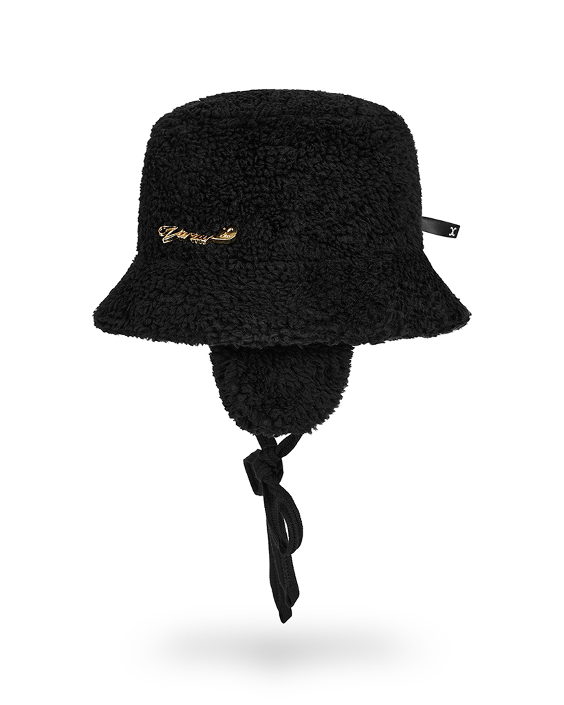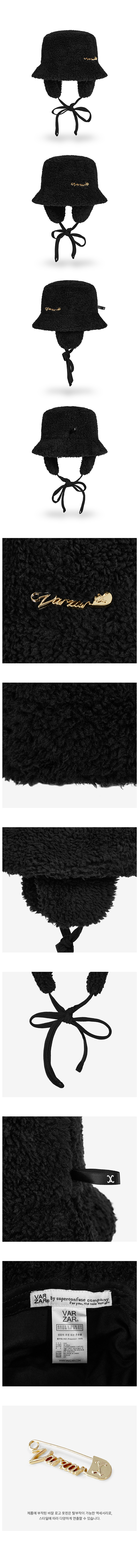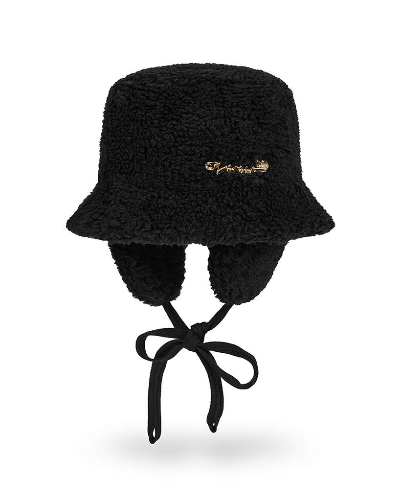VARZAR Safety Pin Sherpa Fur Flap Bucket Hat Black