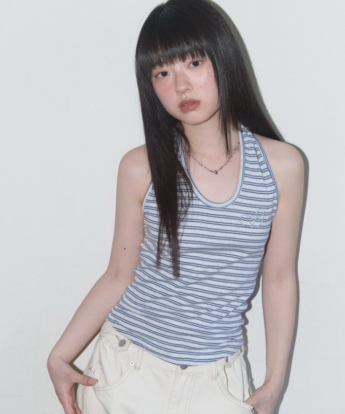 STRIPE OPEN-BACK HALTERNECK (BLUE) F25QB133