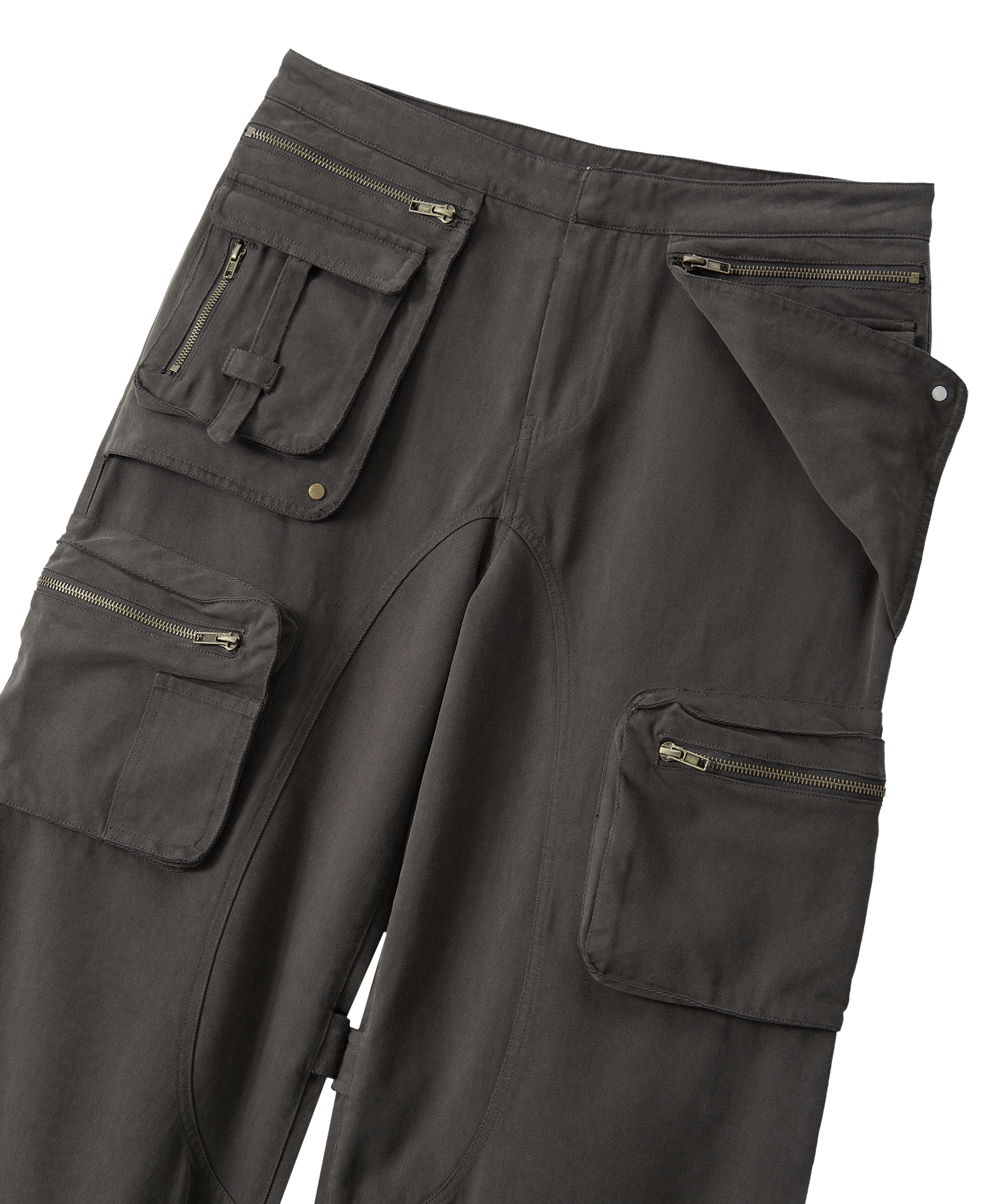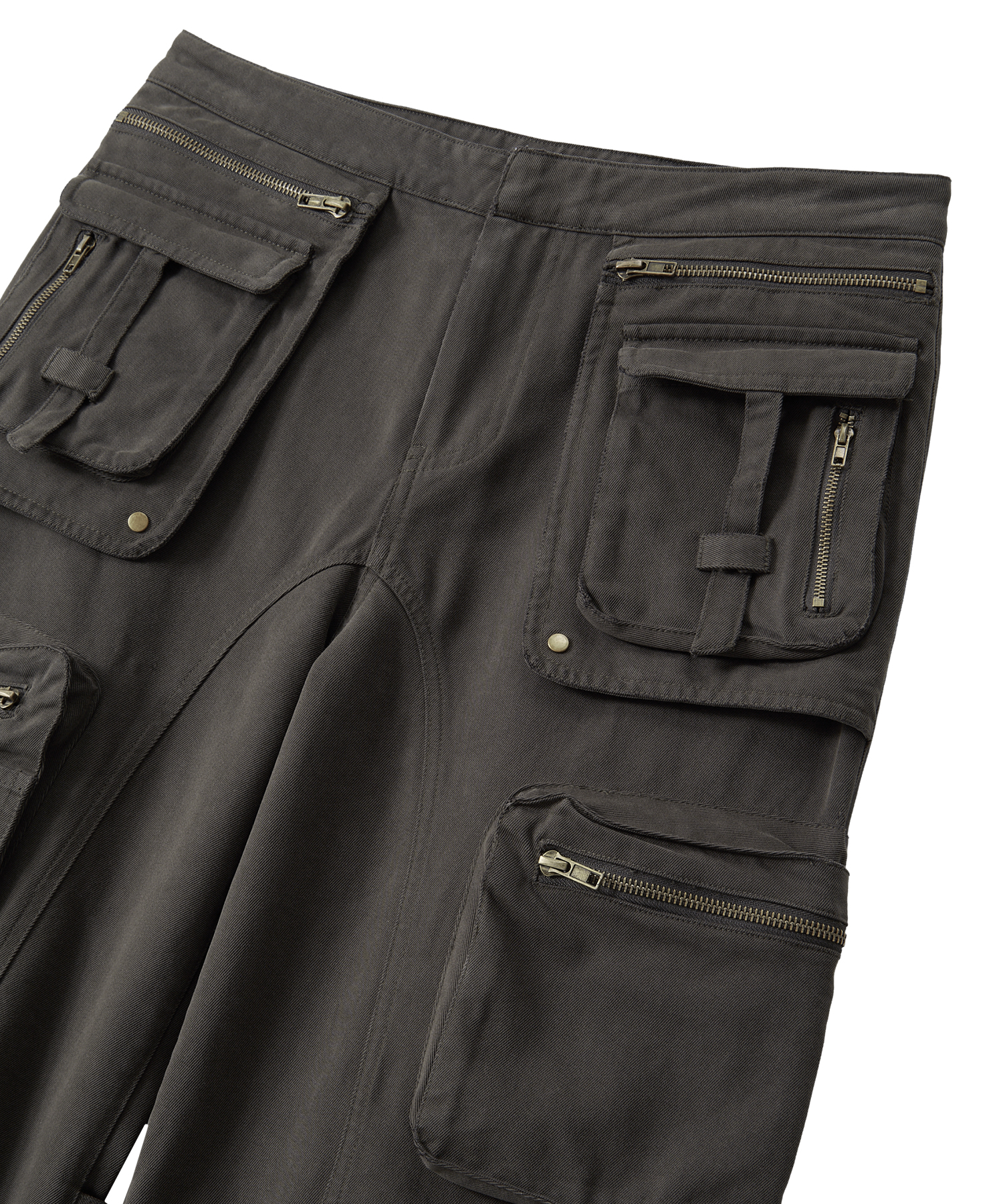 Lowrise Washed Curve Cargo Pants - KHAKI