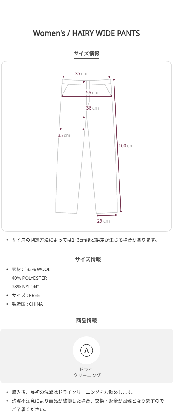 着用後、ヘアリー素材の特性により、多少の毛玉が生じる場合があります。