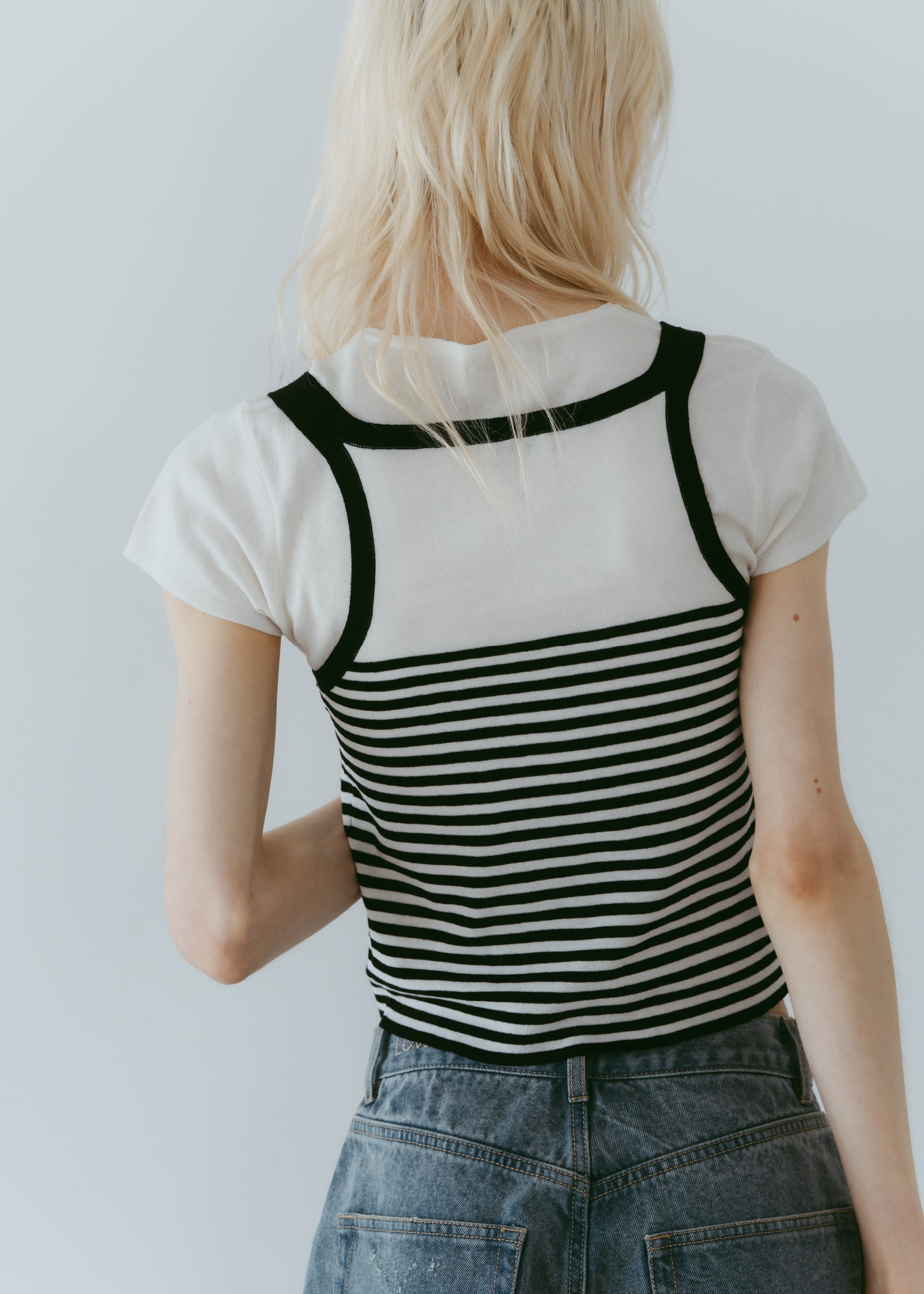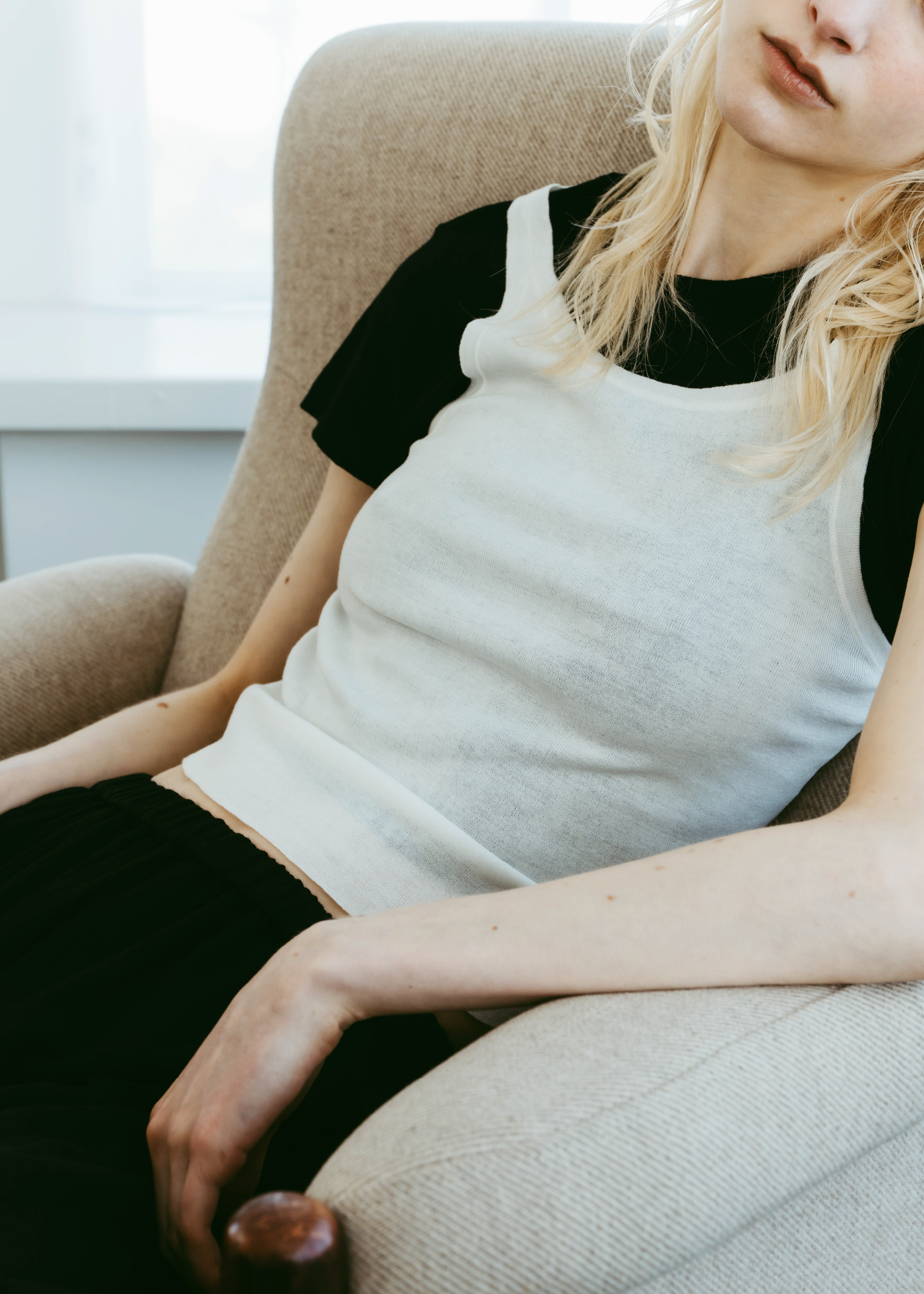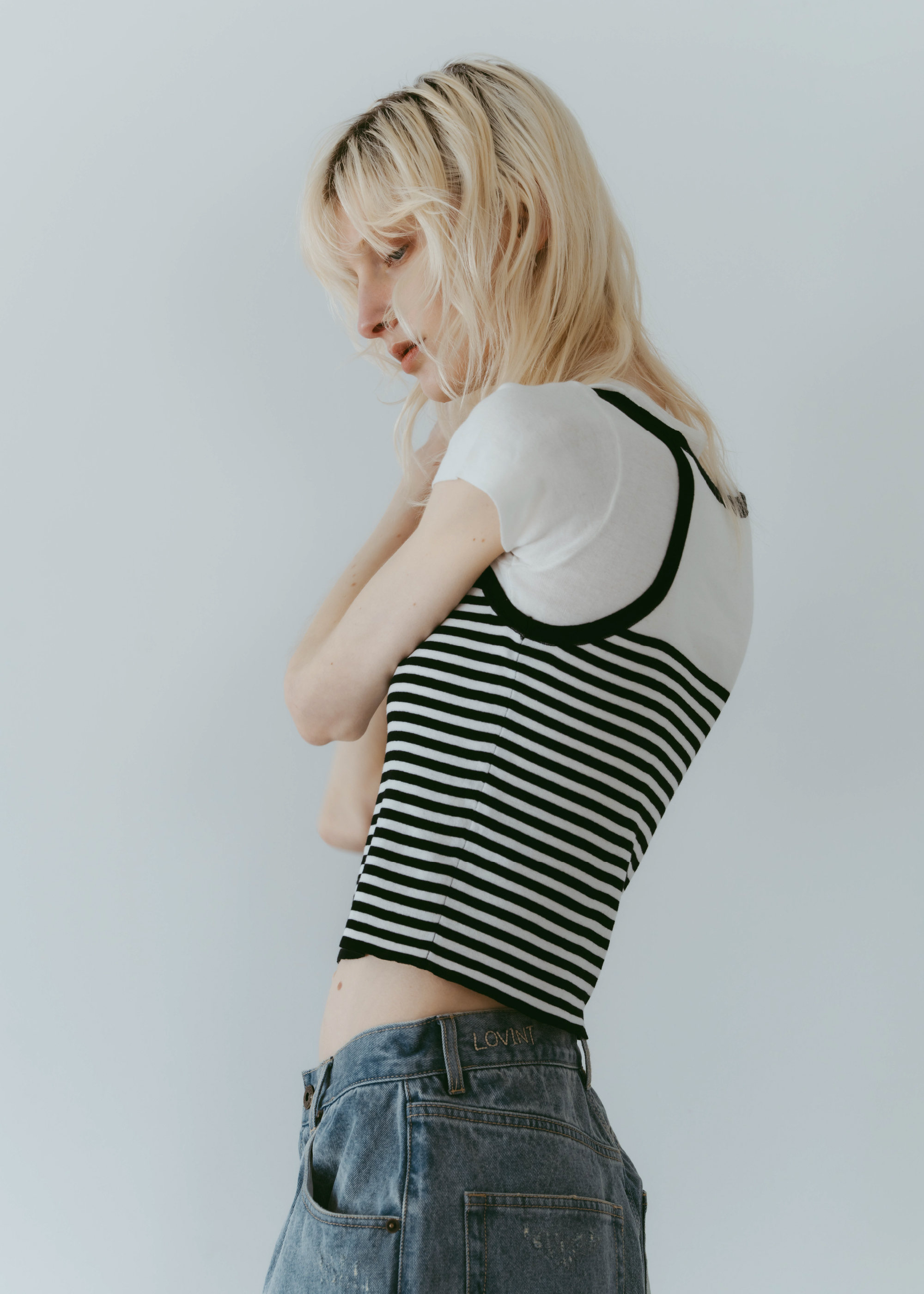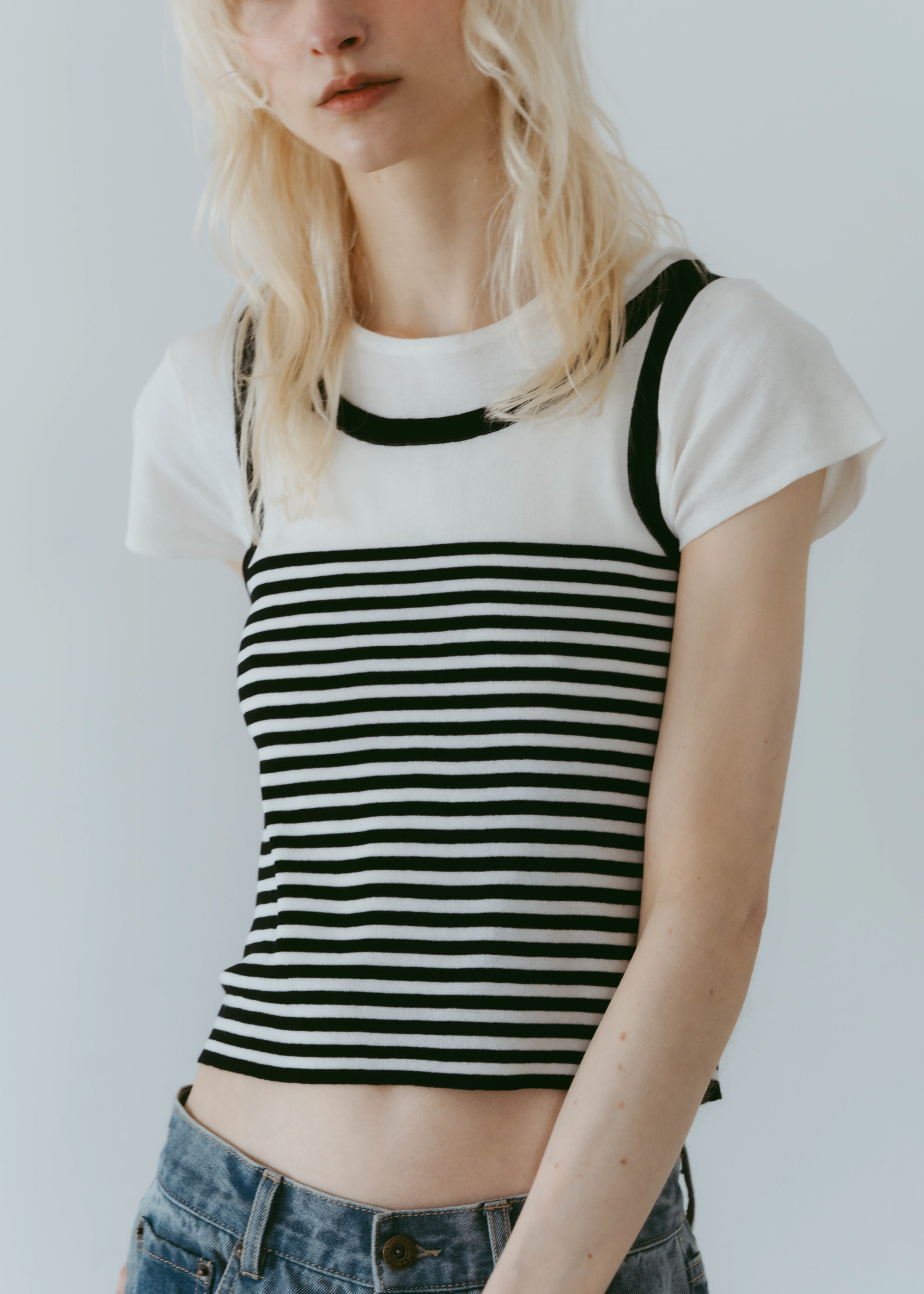 Tシャツとタンクトップのレイヤードスタイルはもちろん、