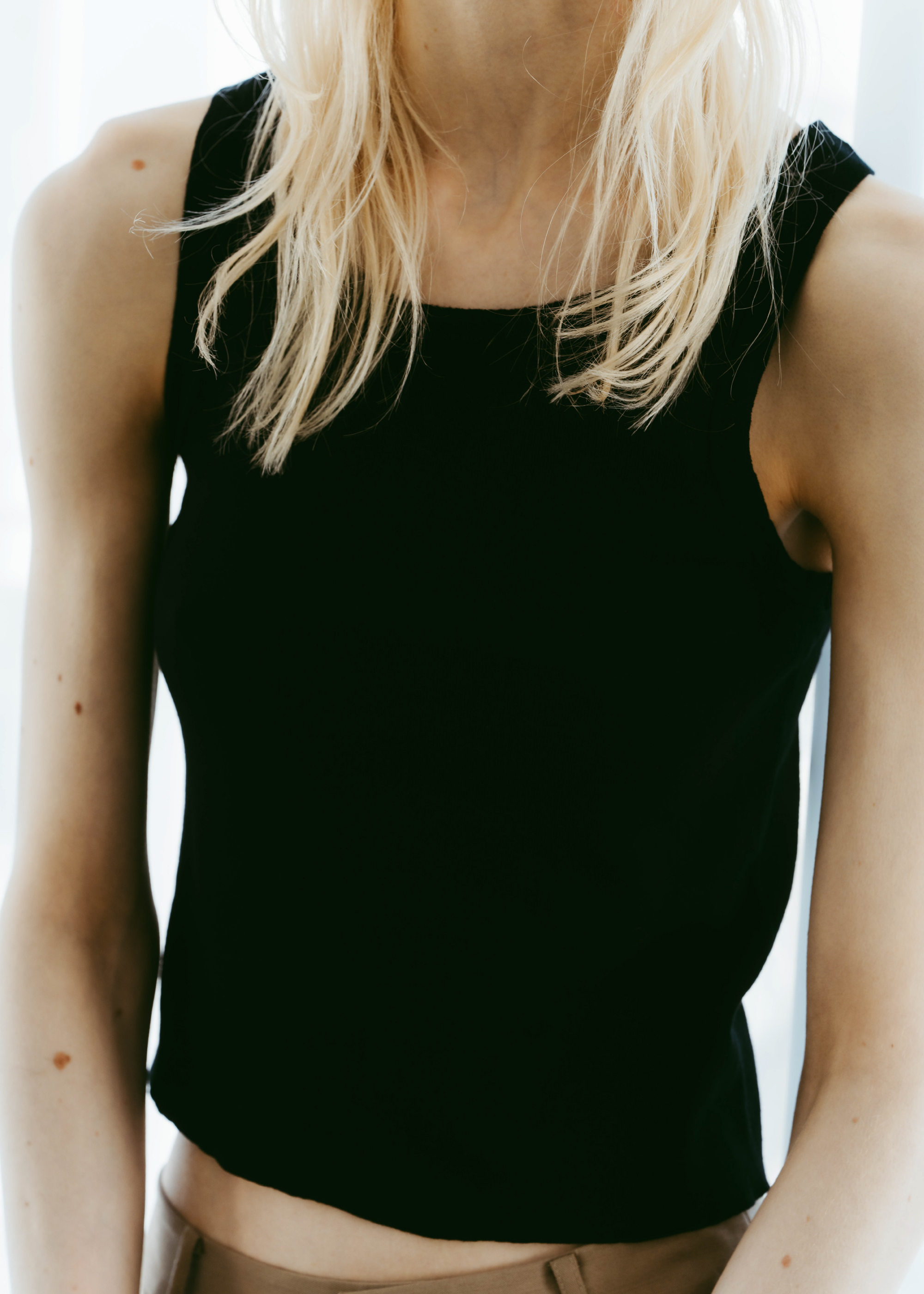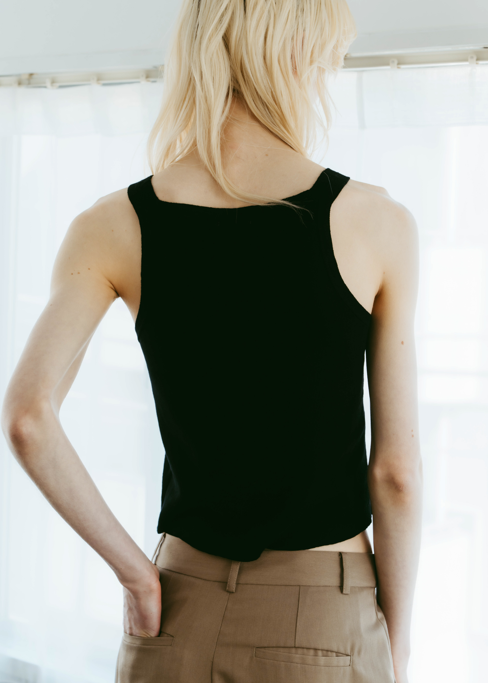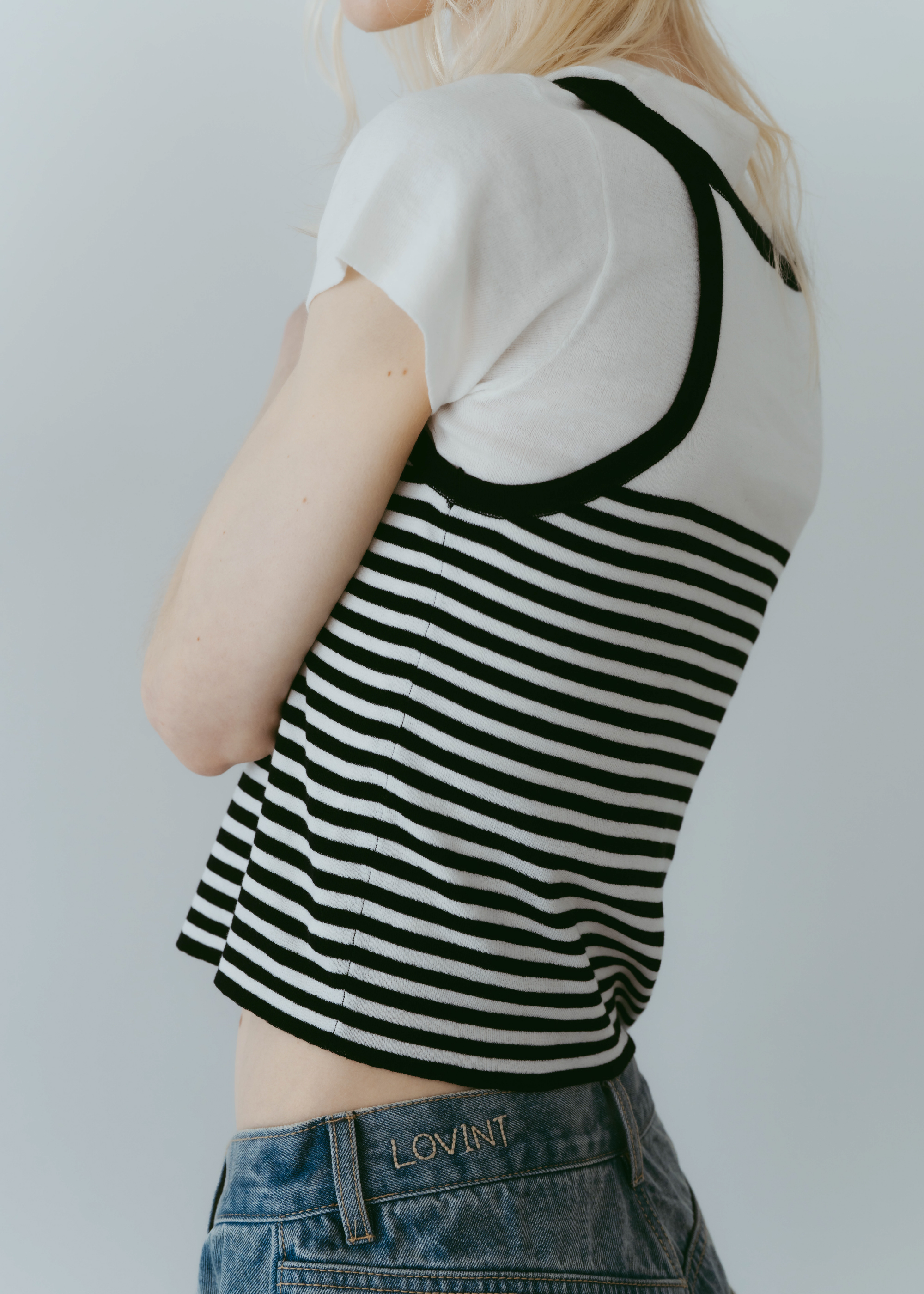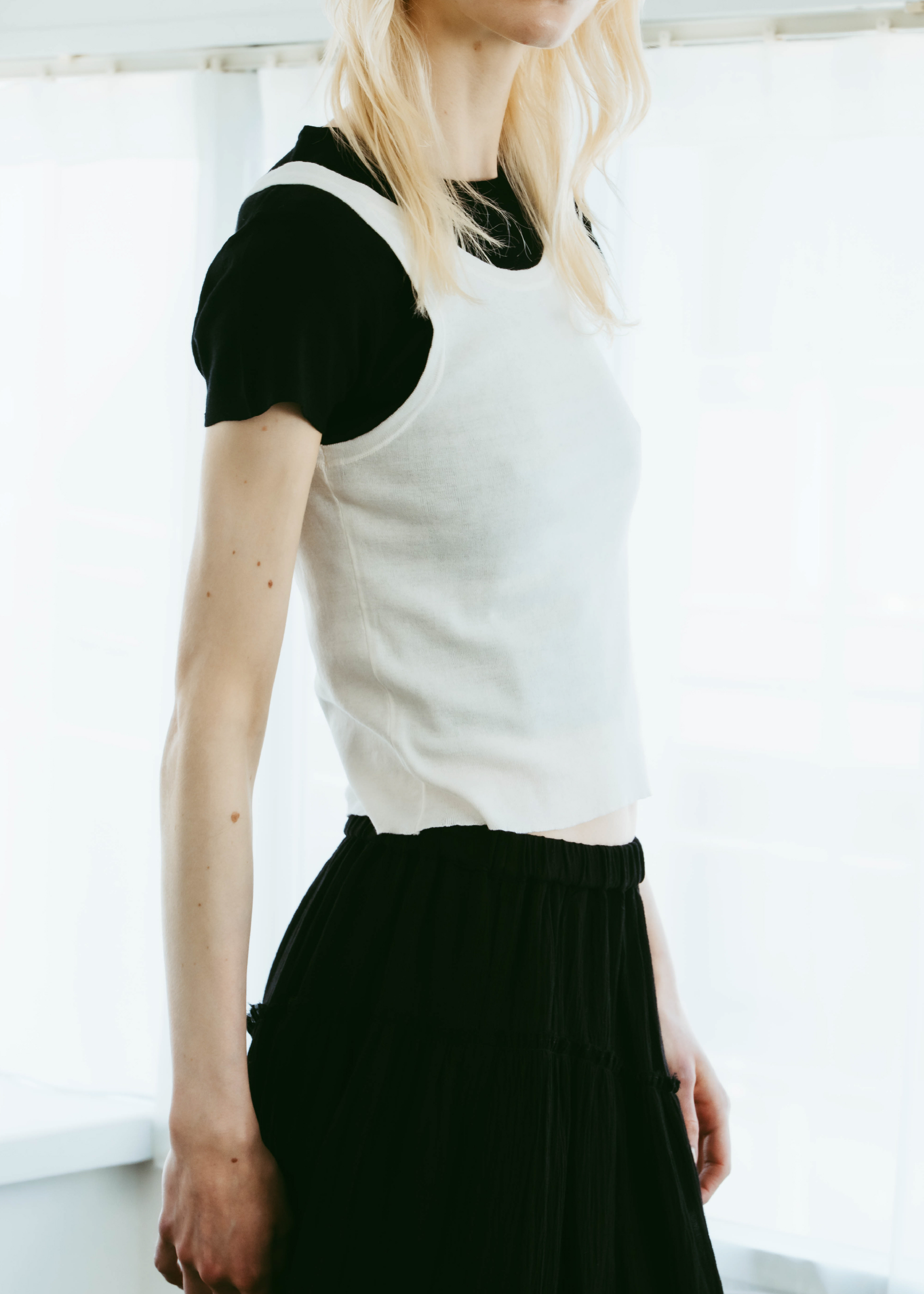 Tシャツとタンクトップのレイヤードスタイルはもちろん、