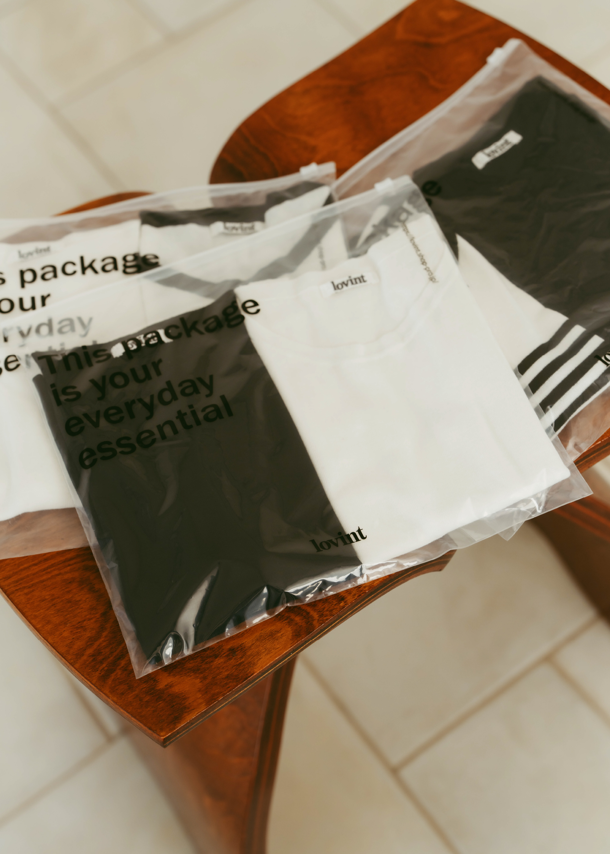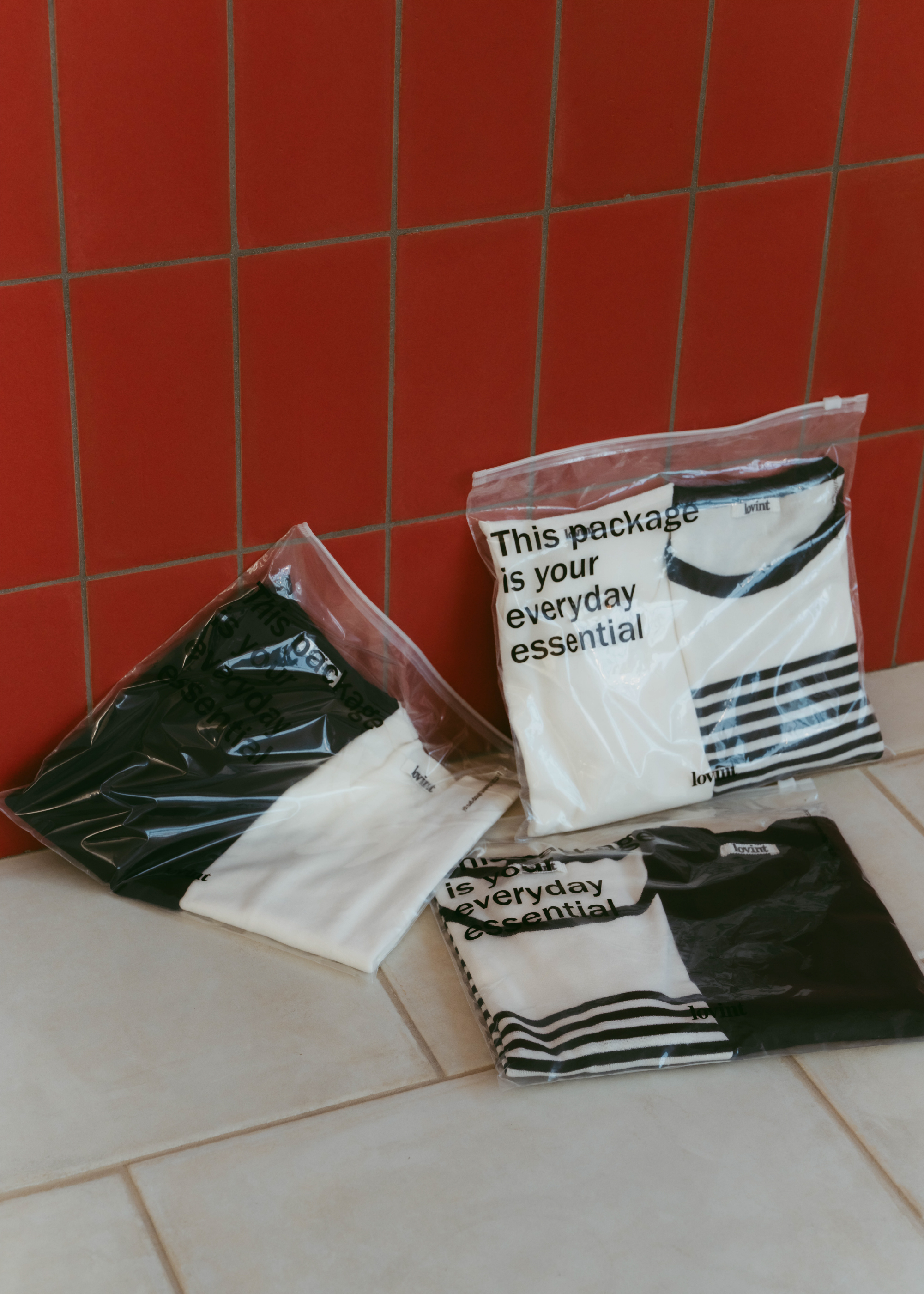 オリジナルパッケージに収めた、BASIC KNIT 2PACK。