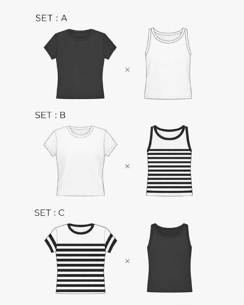 一枚での着用やインナーとしても活躍する汎用性の高いセットです。
