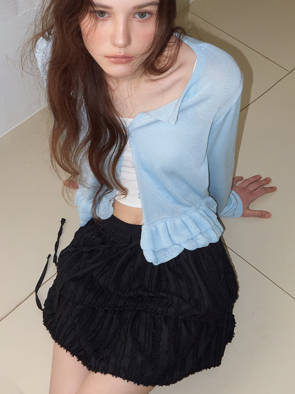 Double Frill Cardigan, Sky Blue