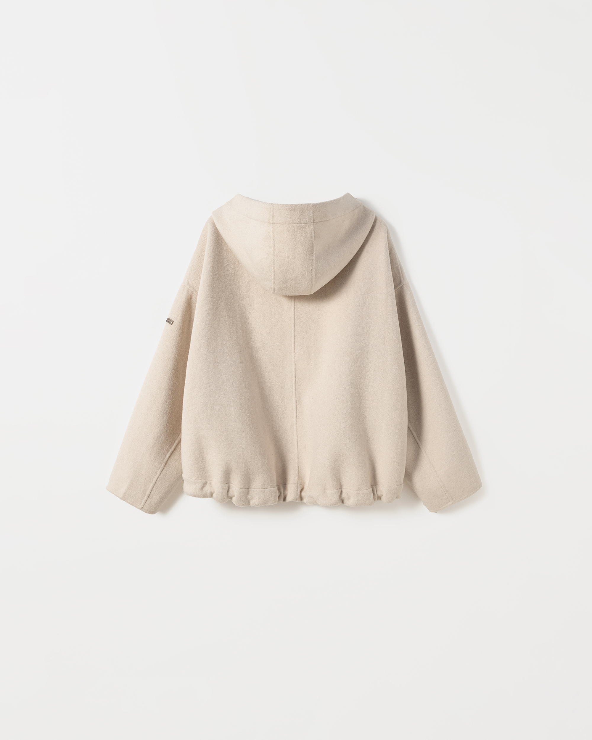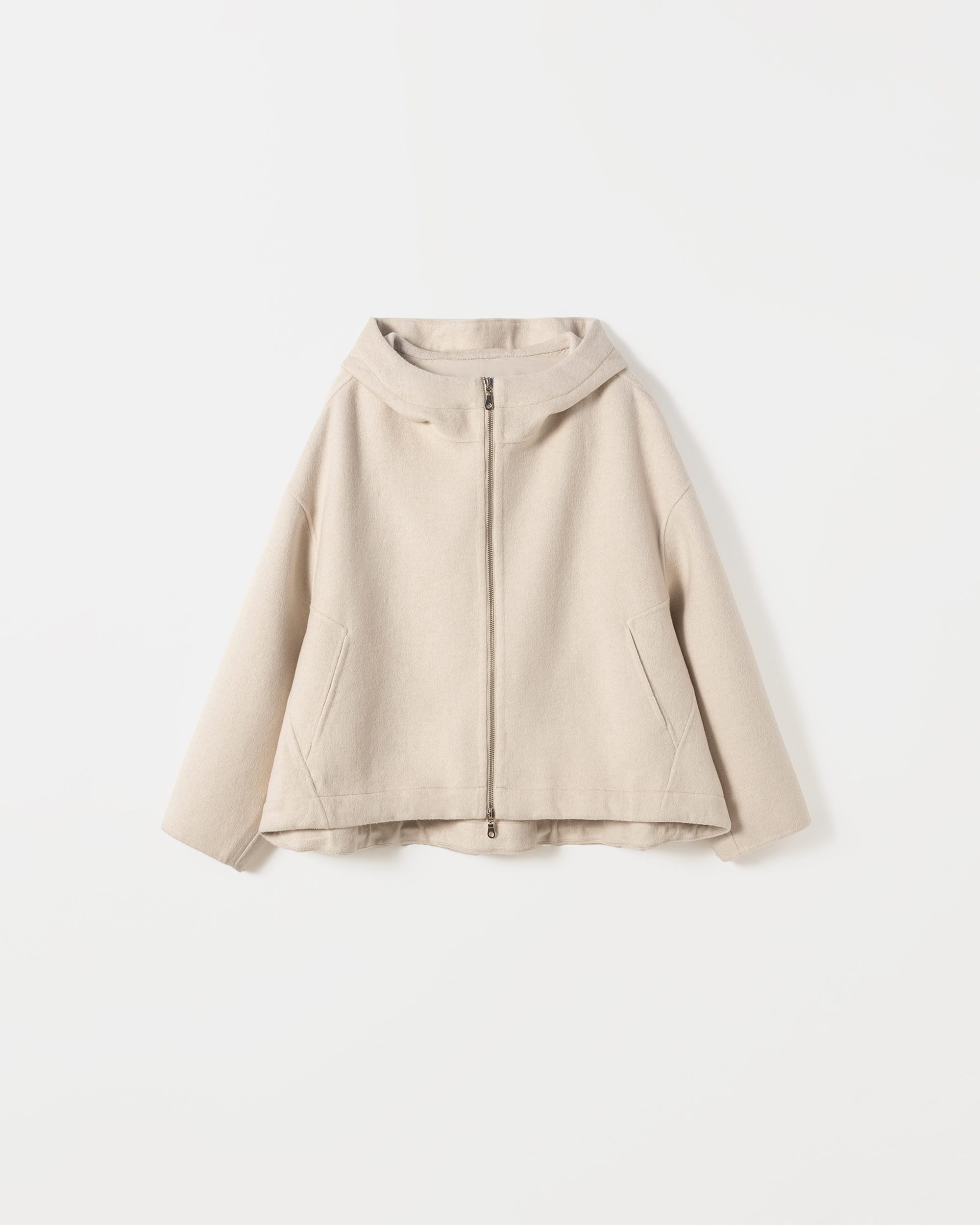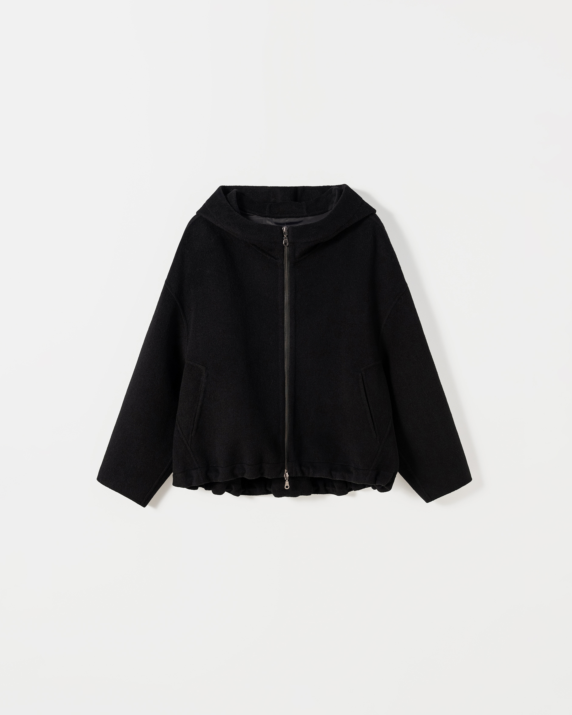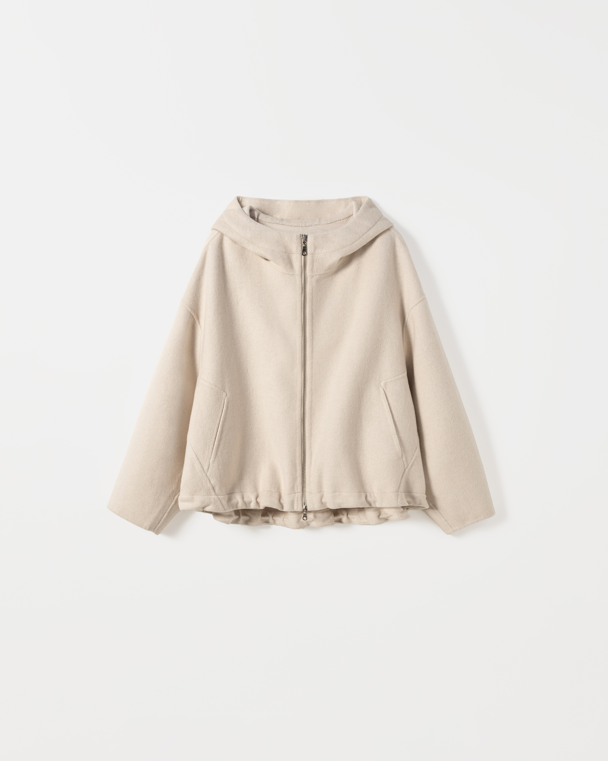 裾のドローストリングを調整することで、ボリューム感のあるシルエットにもアレンジ可能。