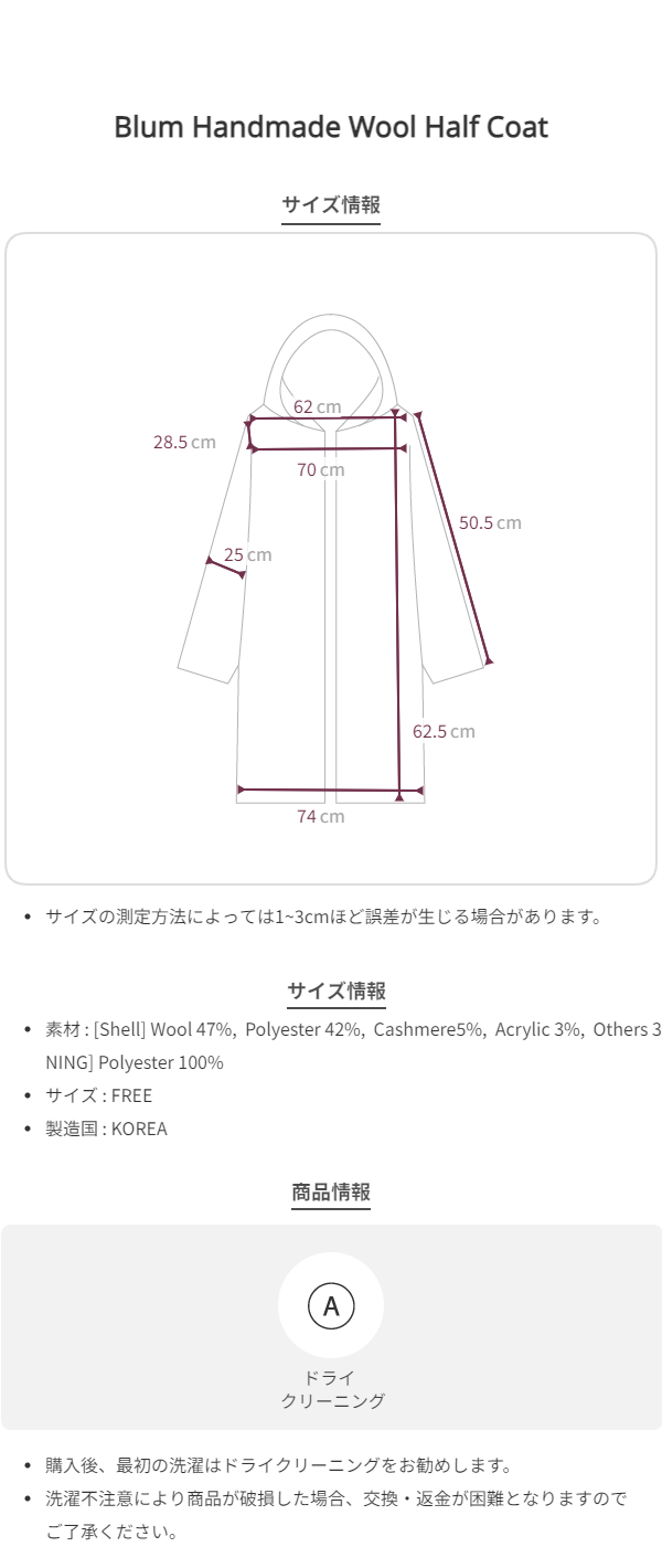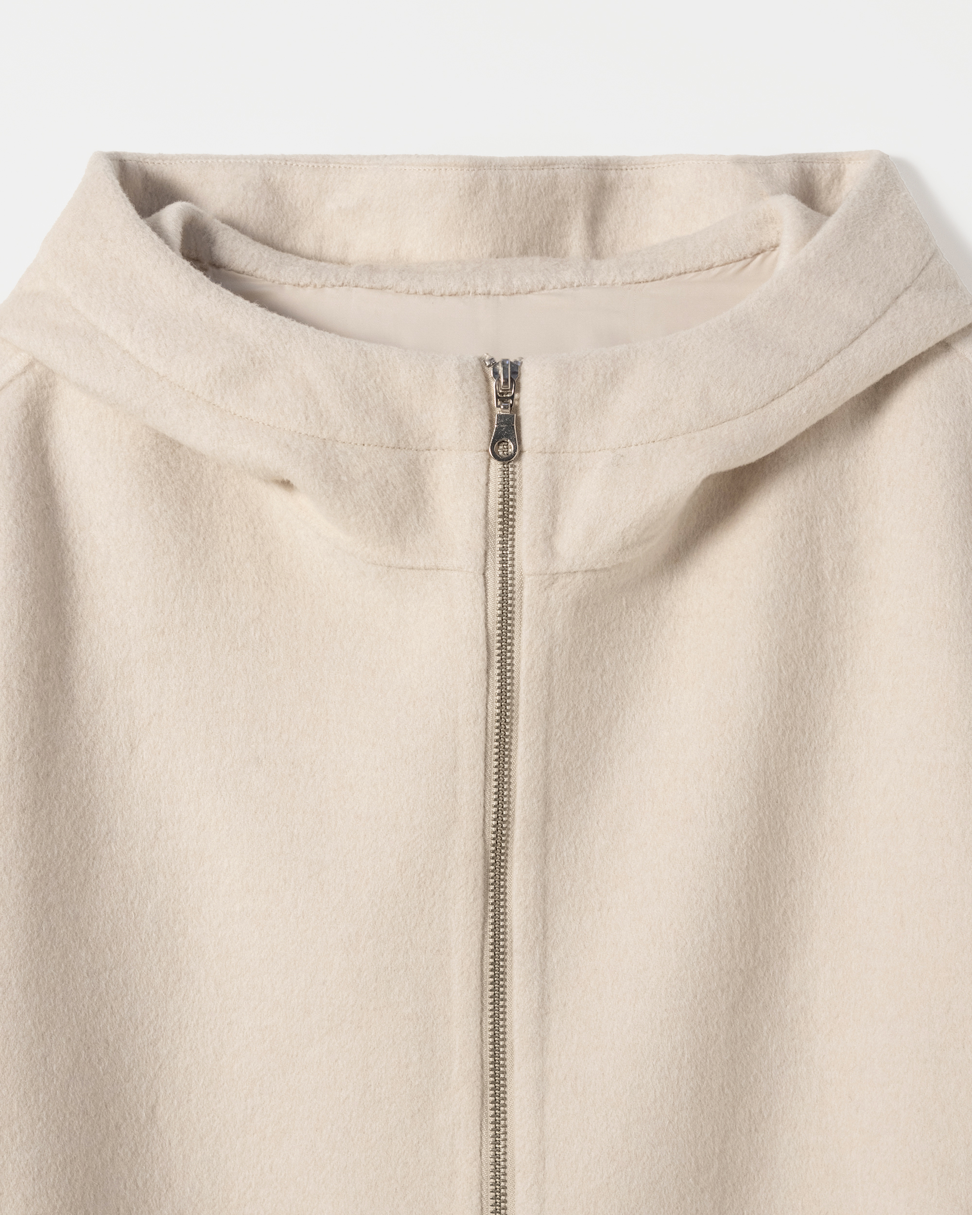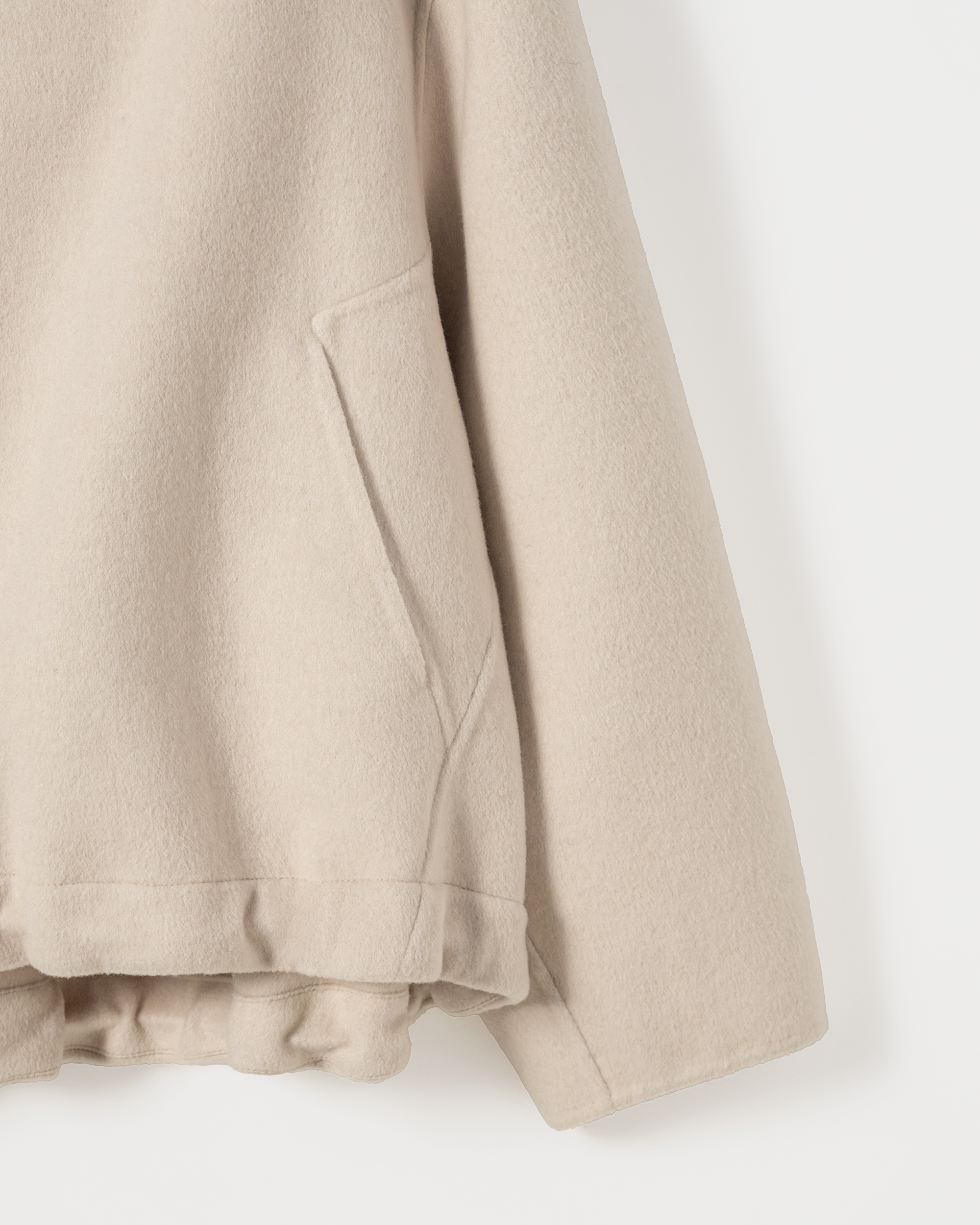 ゆったりとしたシルエットで、冬のシーズンを通して幅広く活躍する Blum Handmade Wool Half Coat(ブルム ハンドメイド ウール ハーフコート) です。