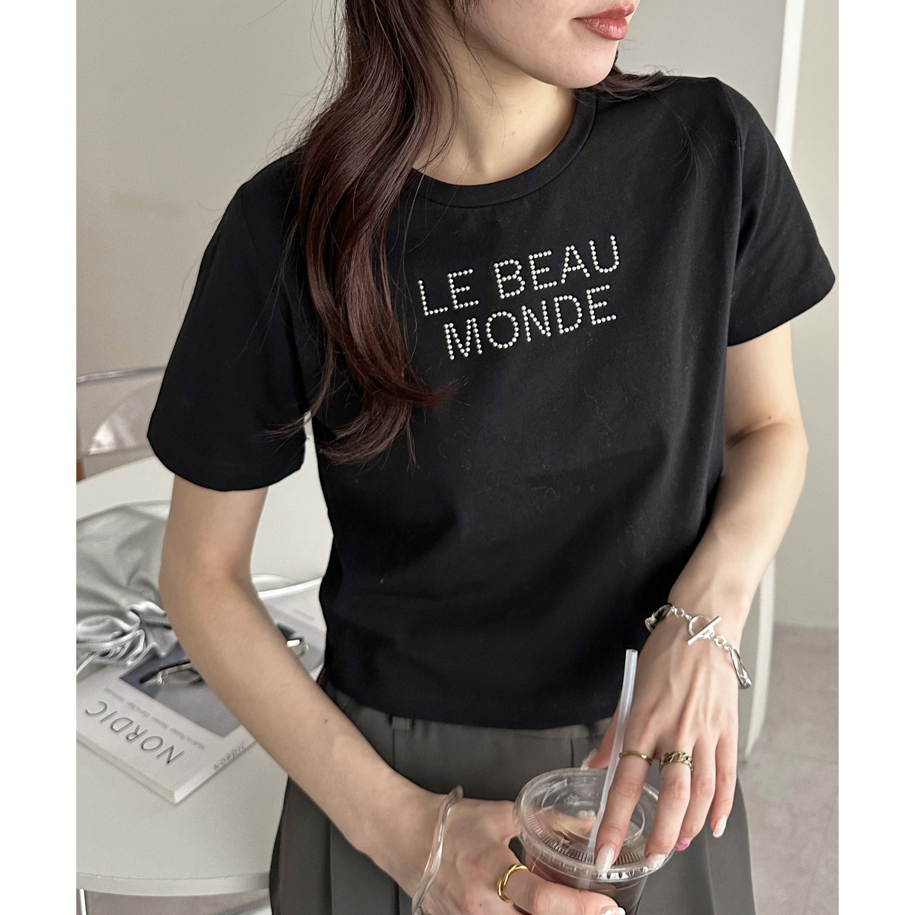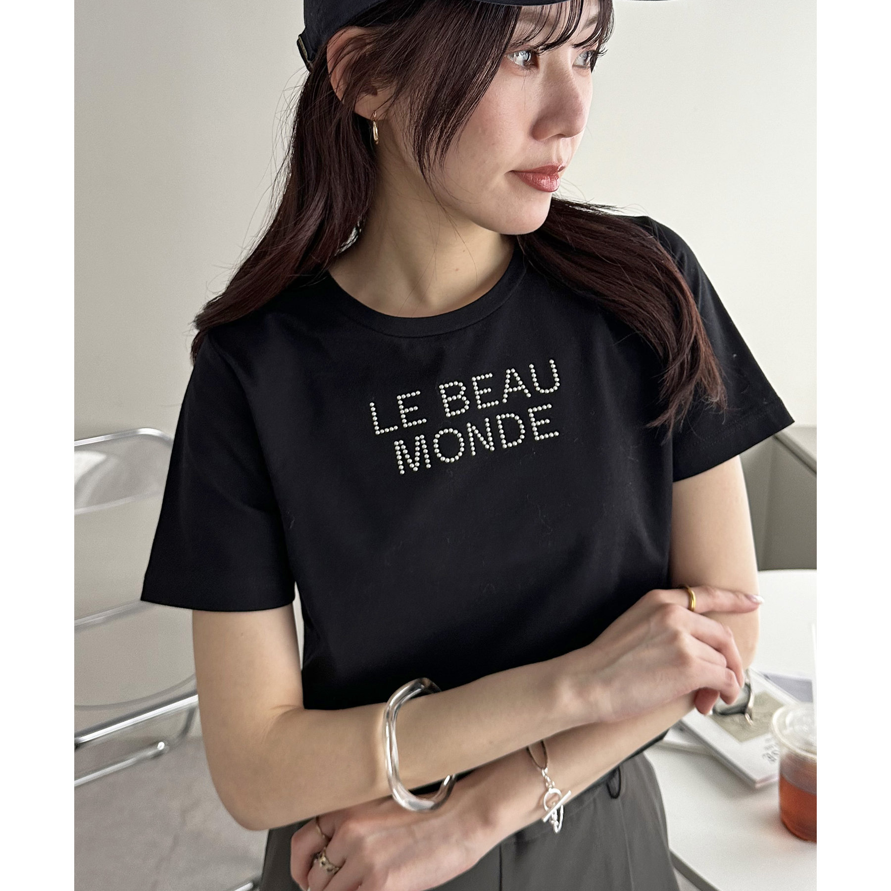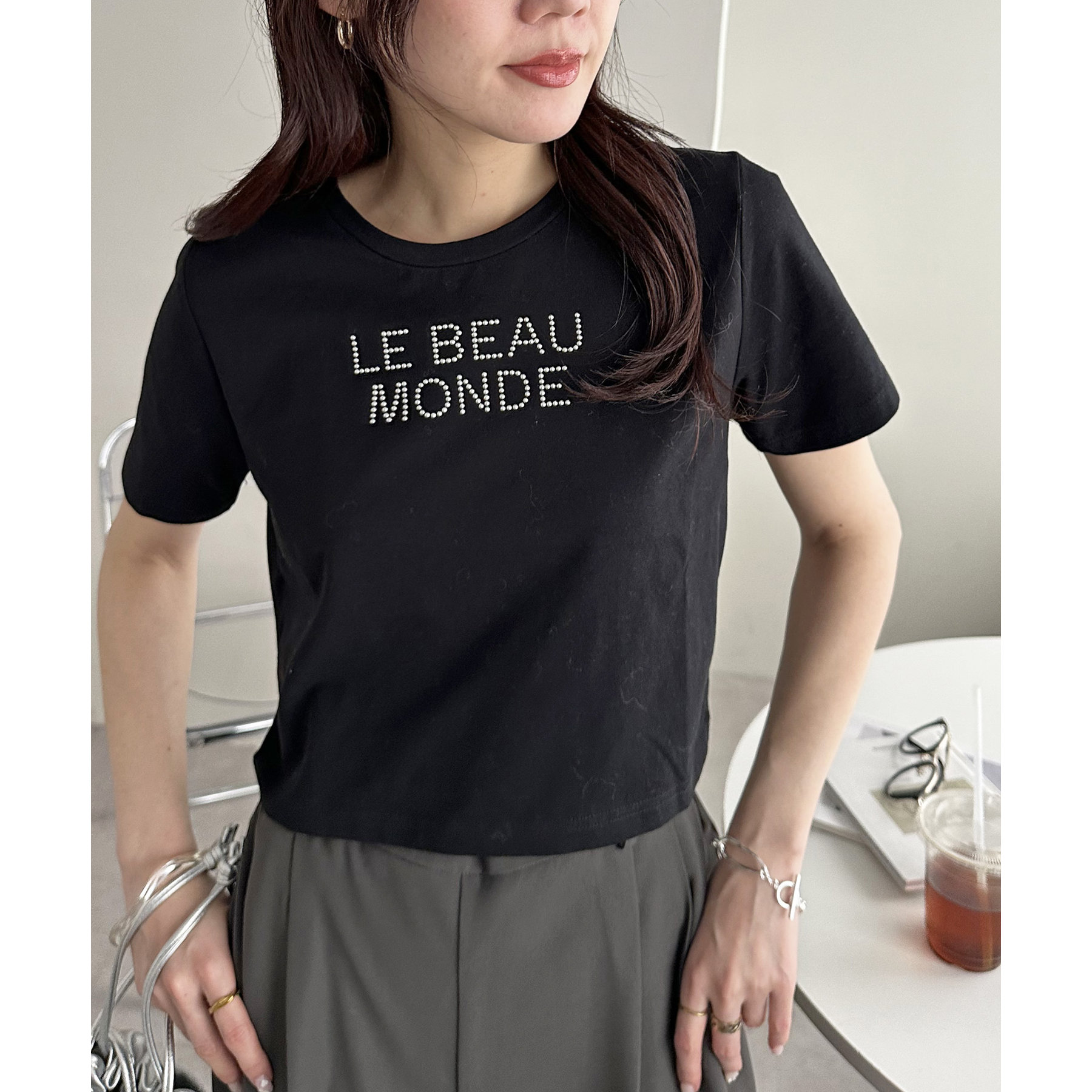 コンパクトな着丈ときらきらとしたロゴがポイントのTシャツ。