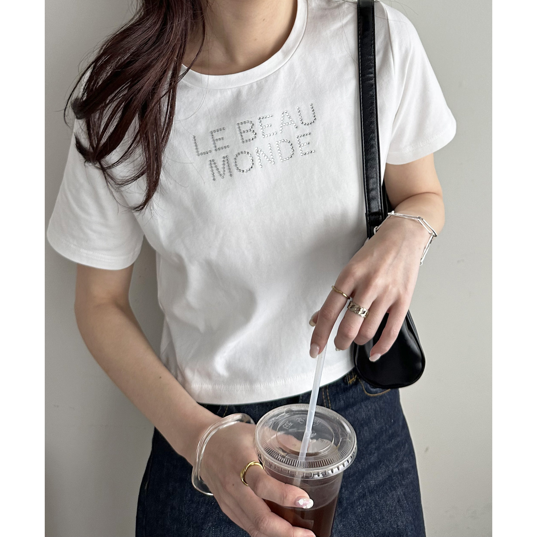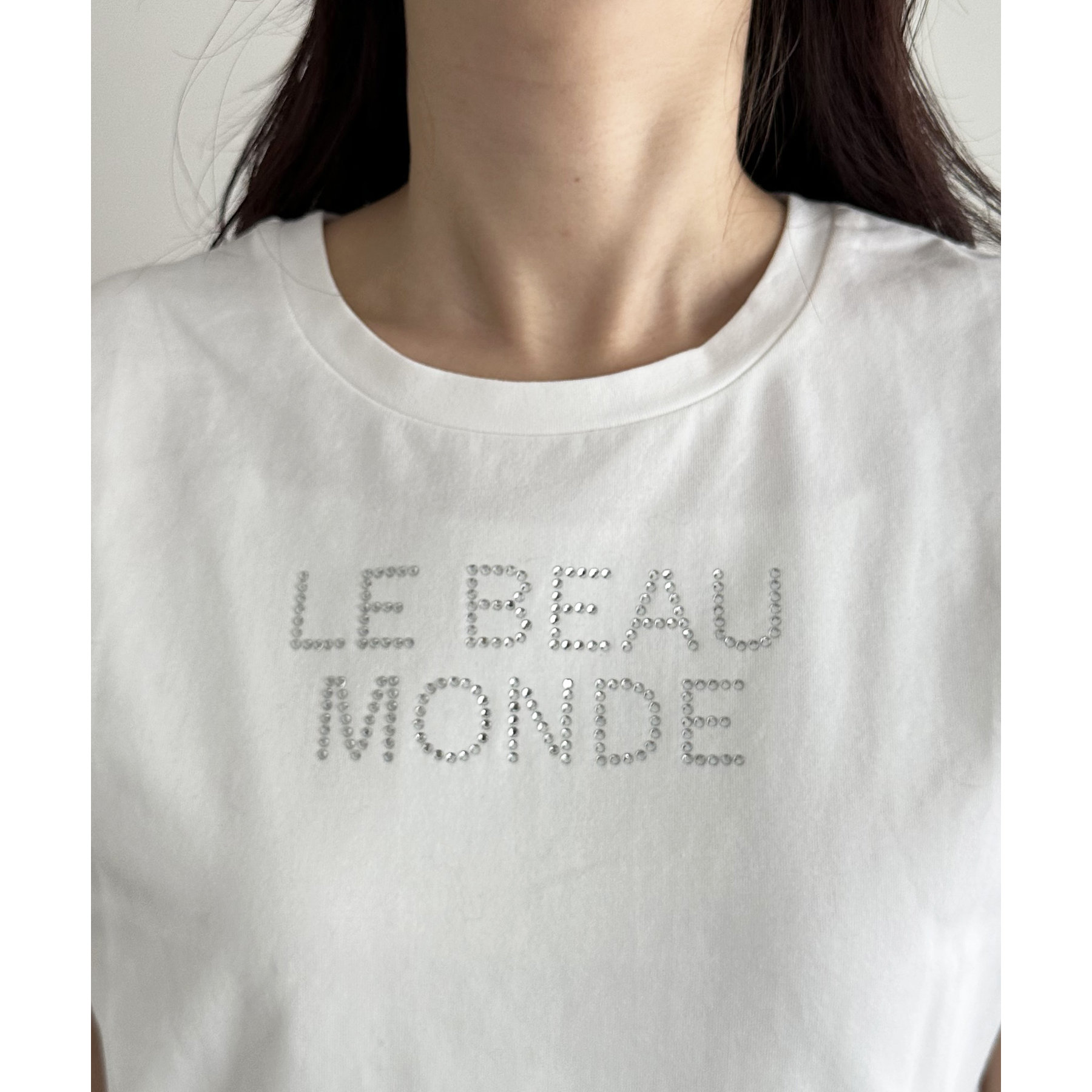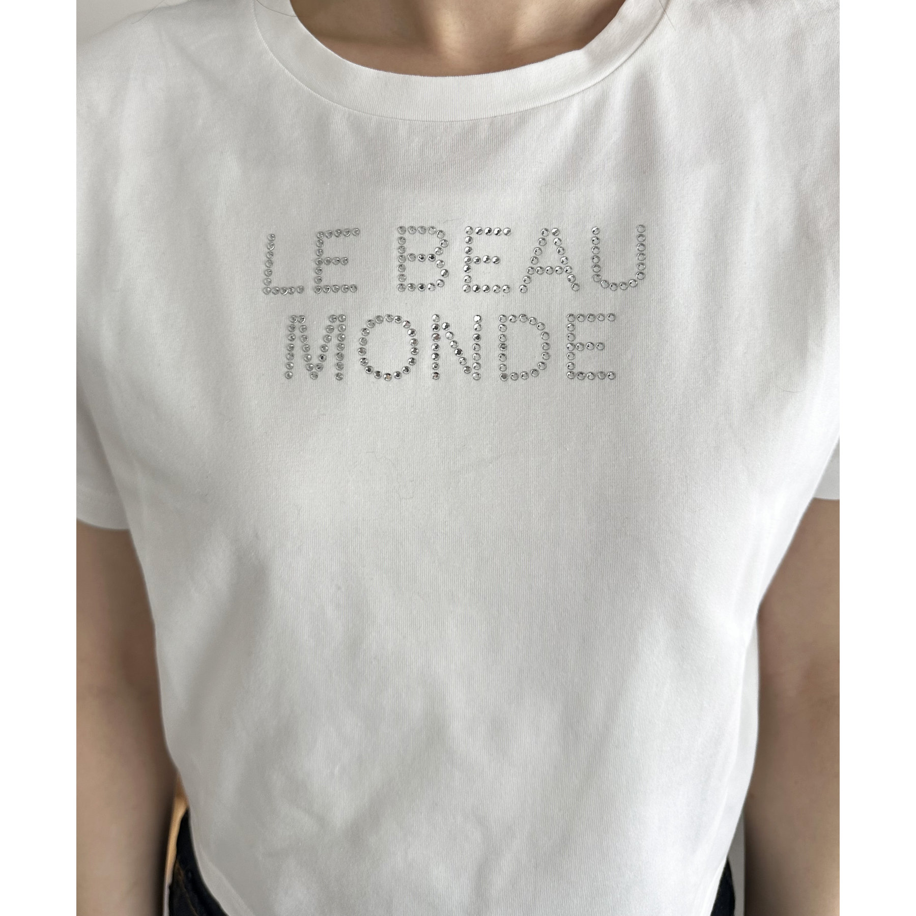 コンパクトな着丈ときらきらとしたロゴがポイントのTシャツ。
