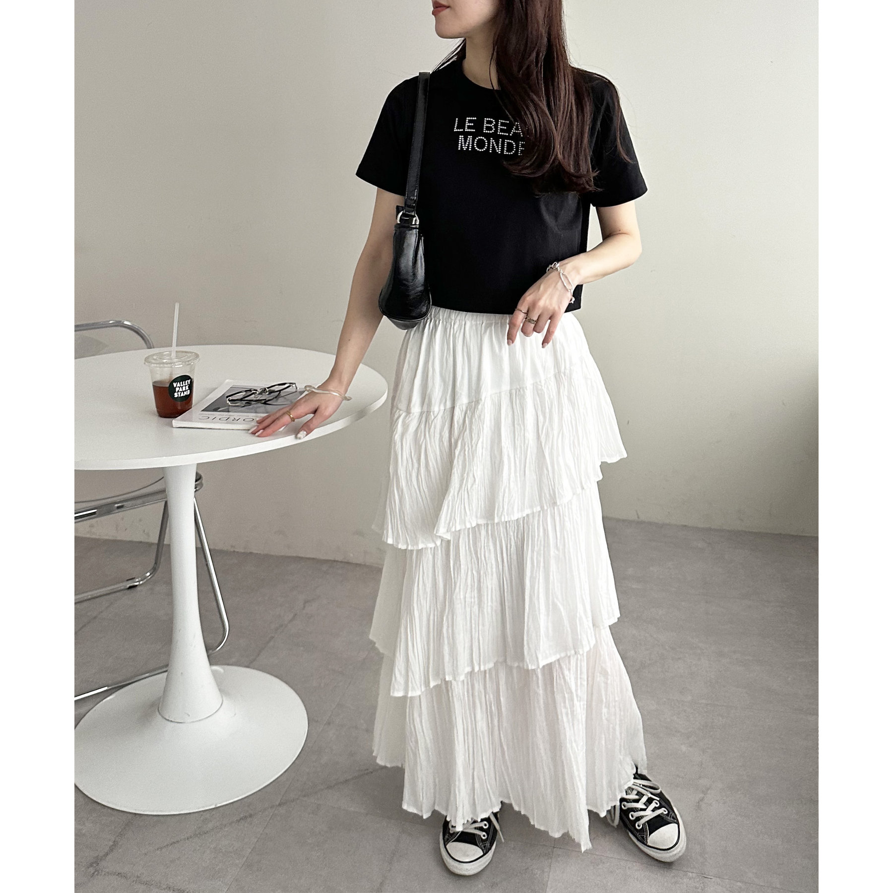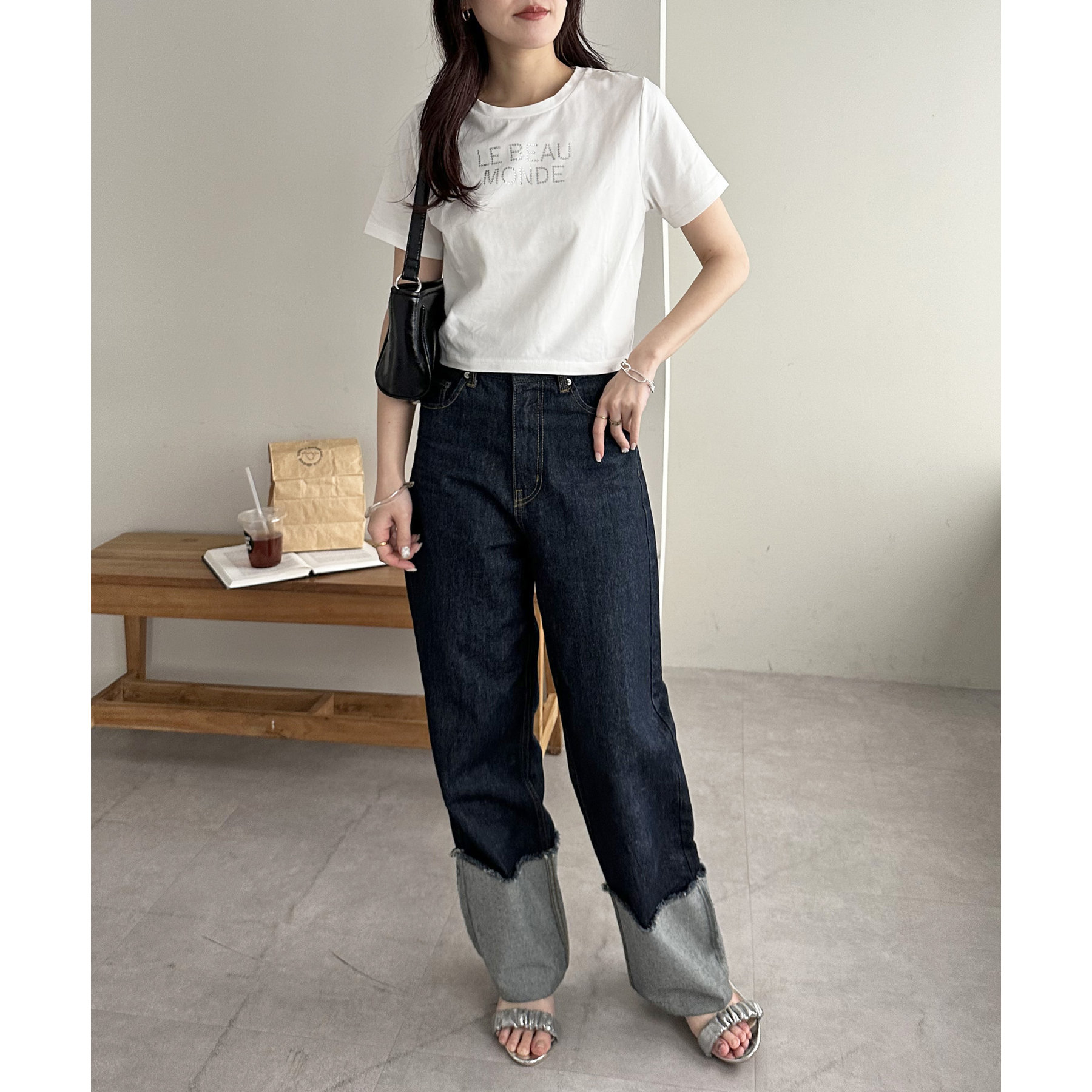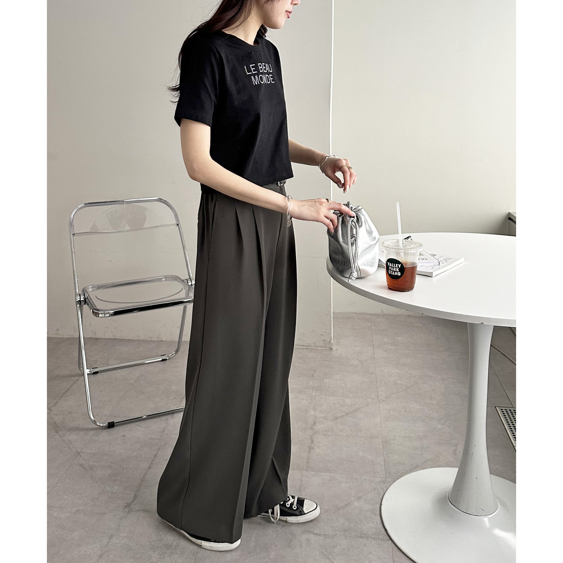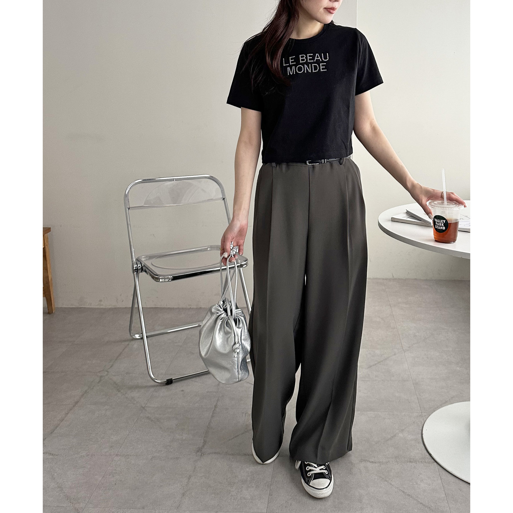 コンパクトなTシャツなので、ボリューム感のあるボトムスとの相性が抜群〇