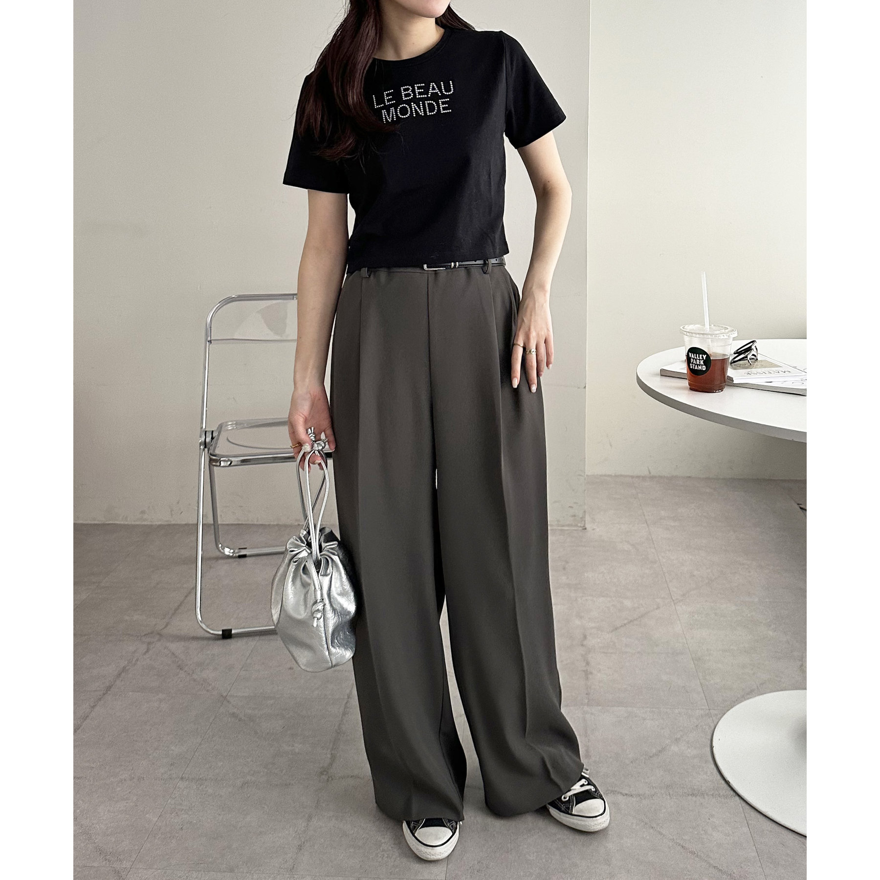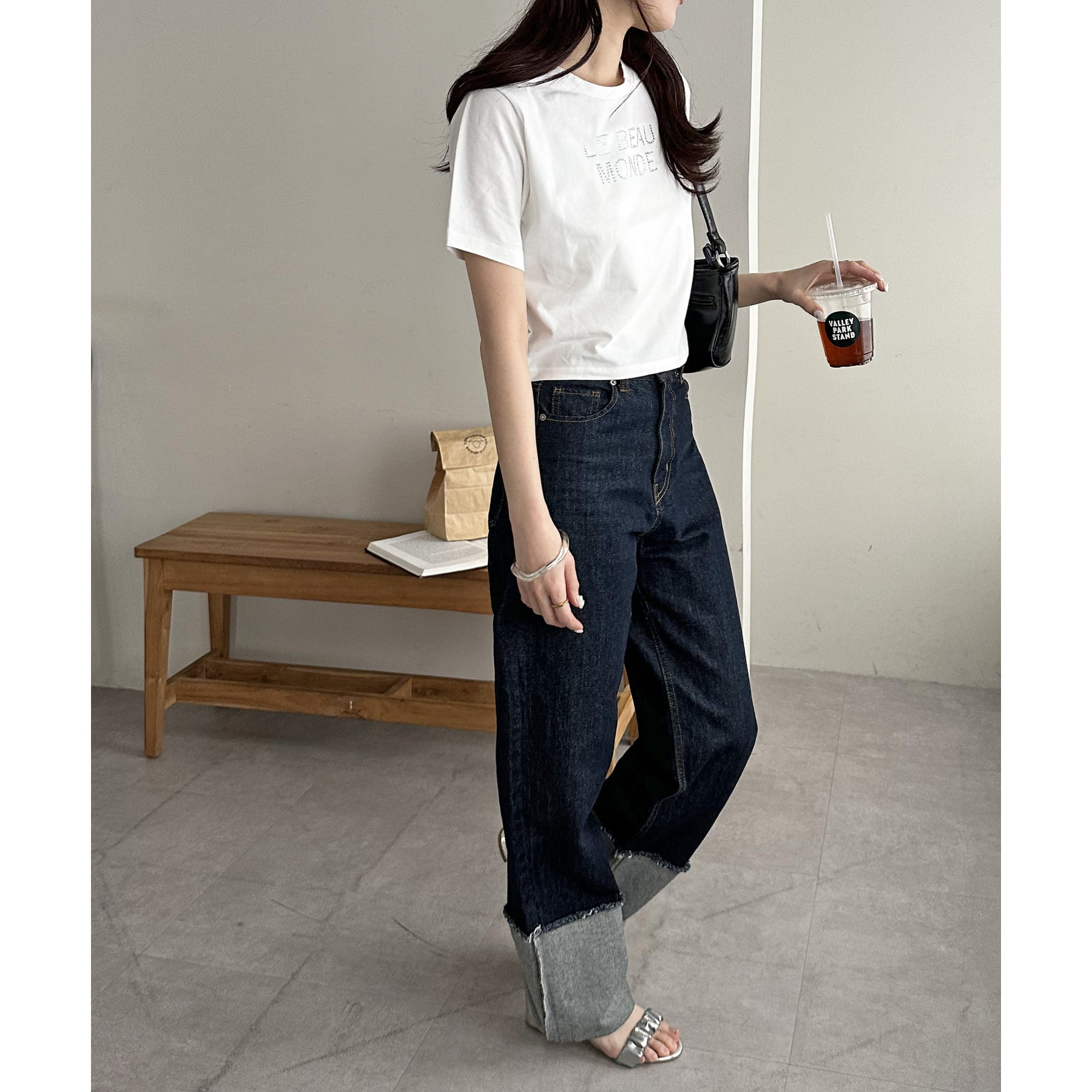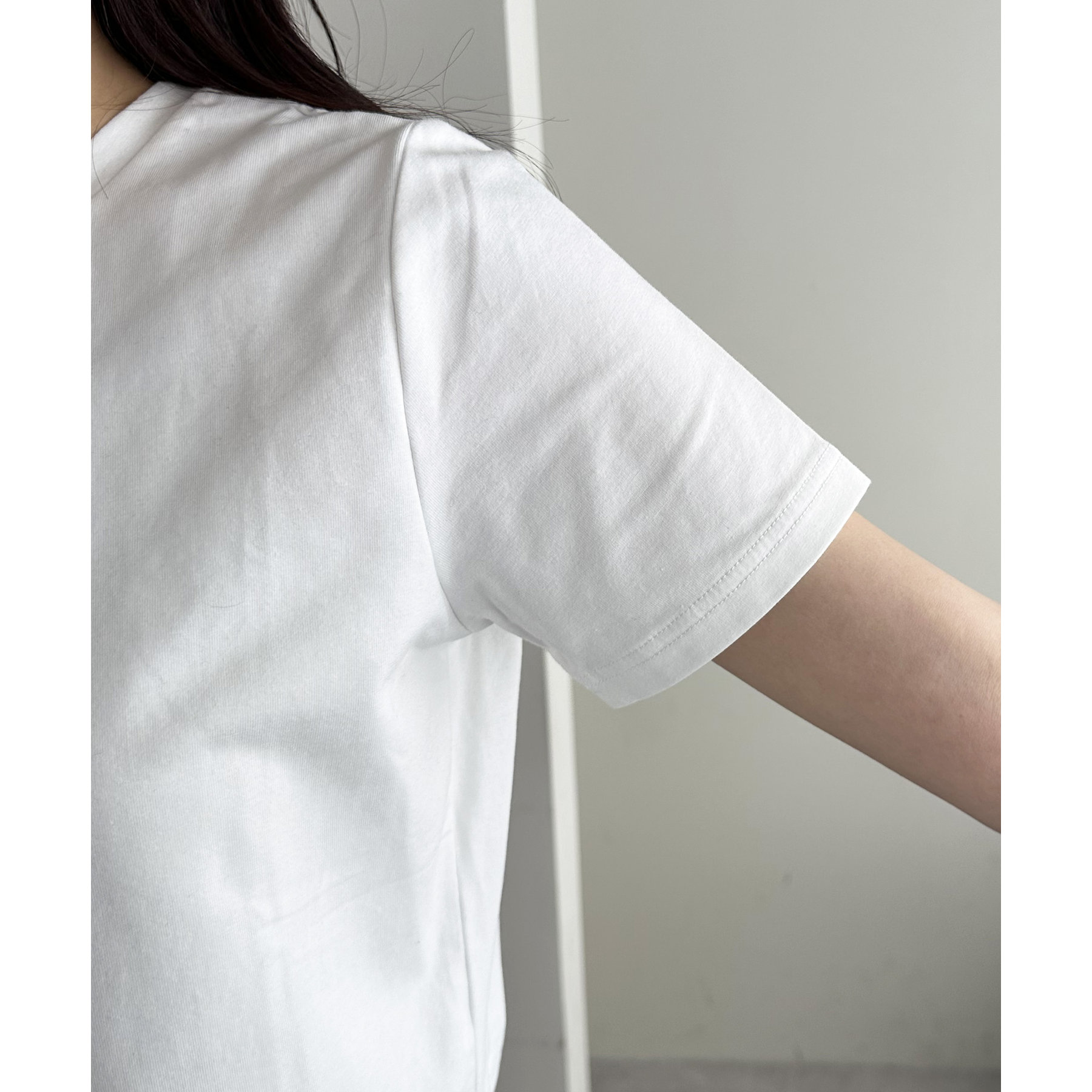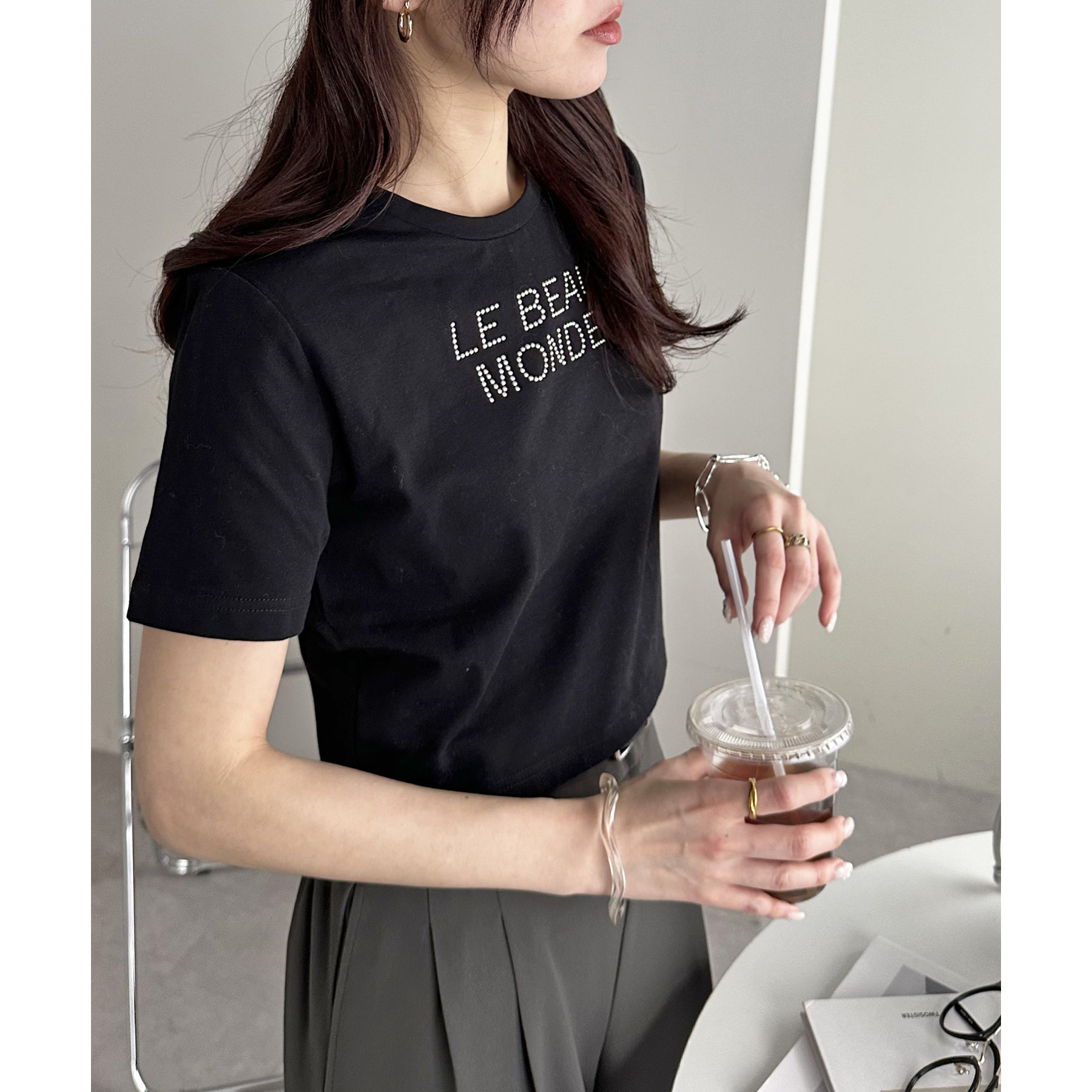 コンパクトなTシャツなので、ボリューム感のあるボトムスとの相性が抜群〇