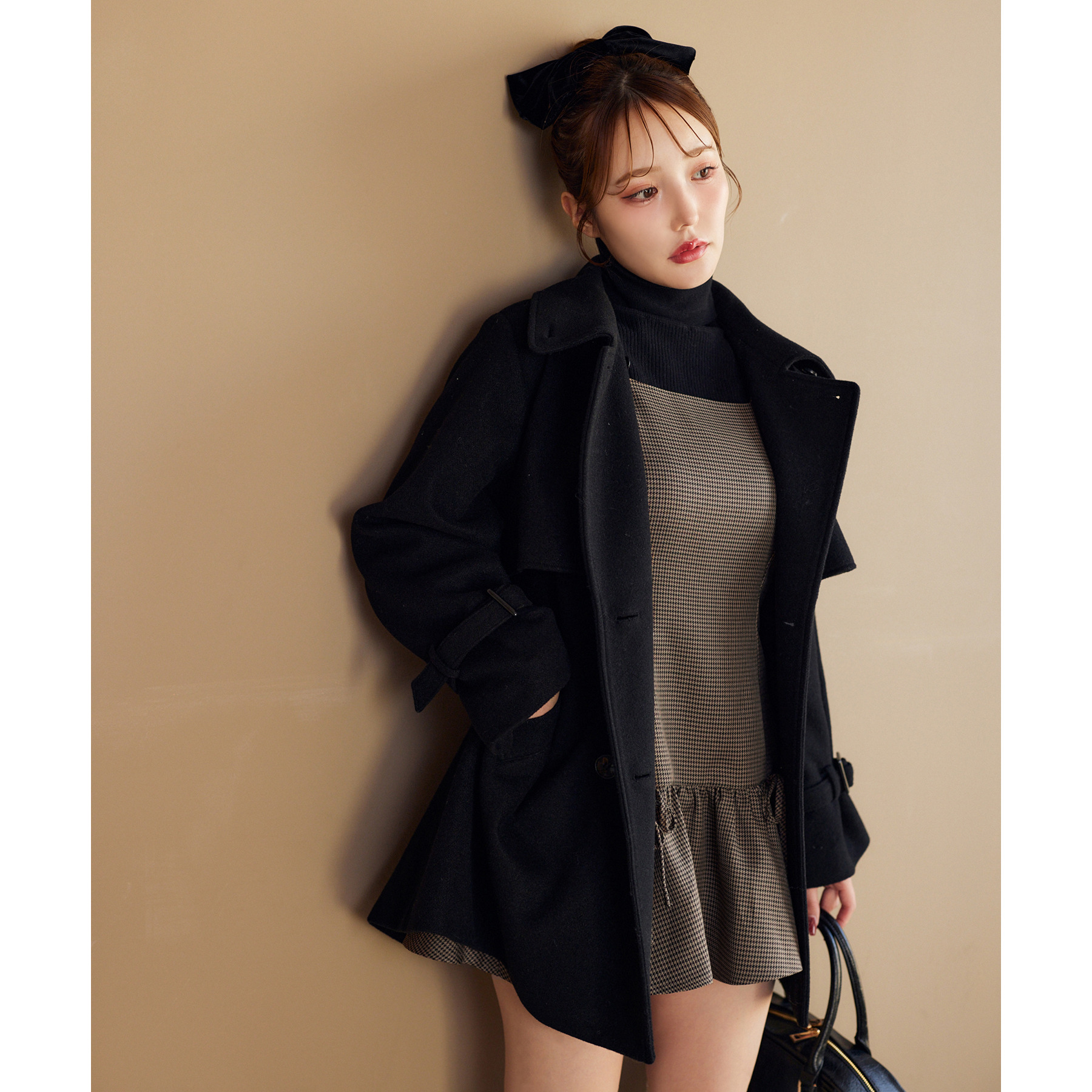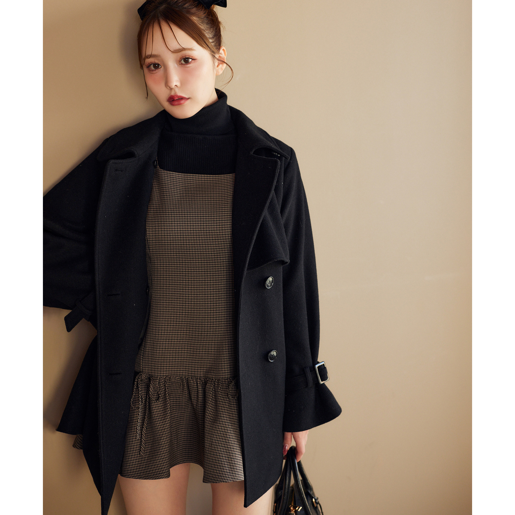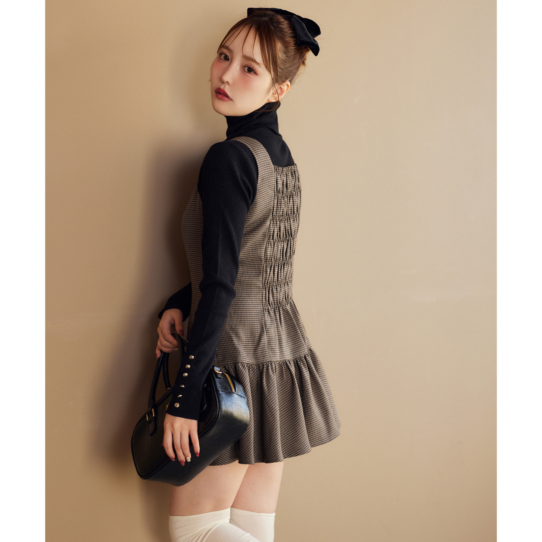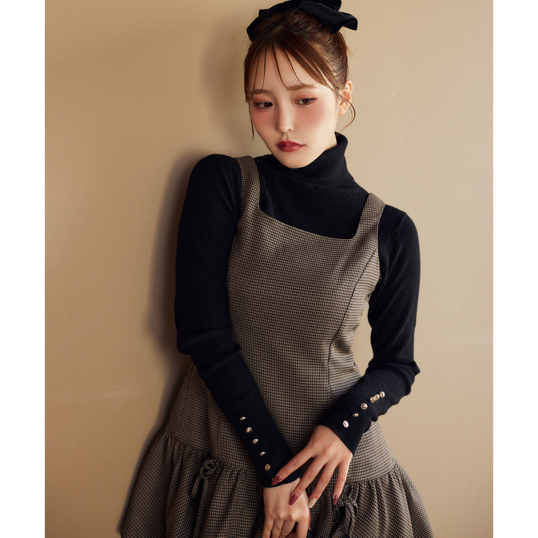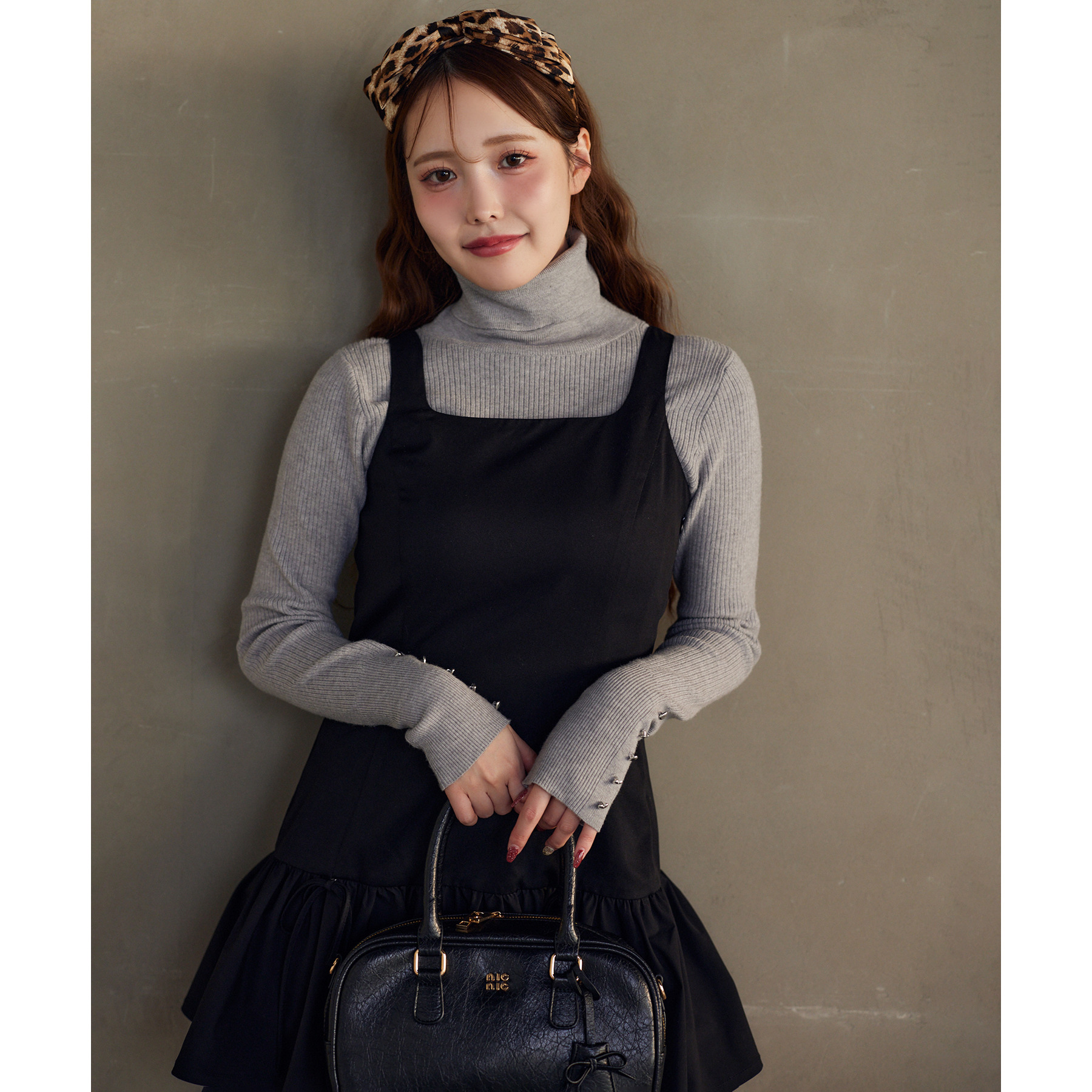 ハイネックニットや薄手のトップスと合わせたレイヤードコーデがオススメ。
