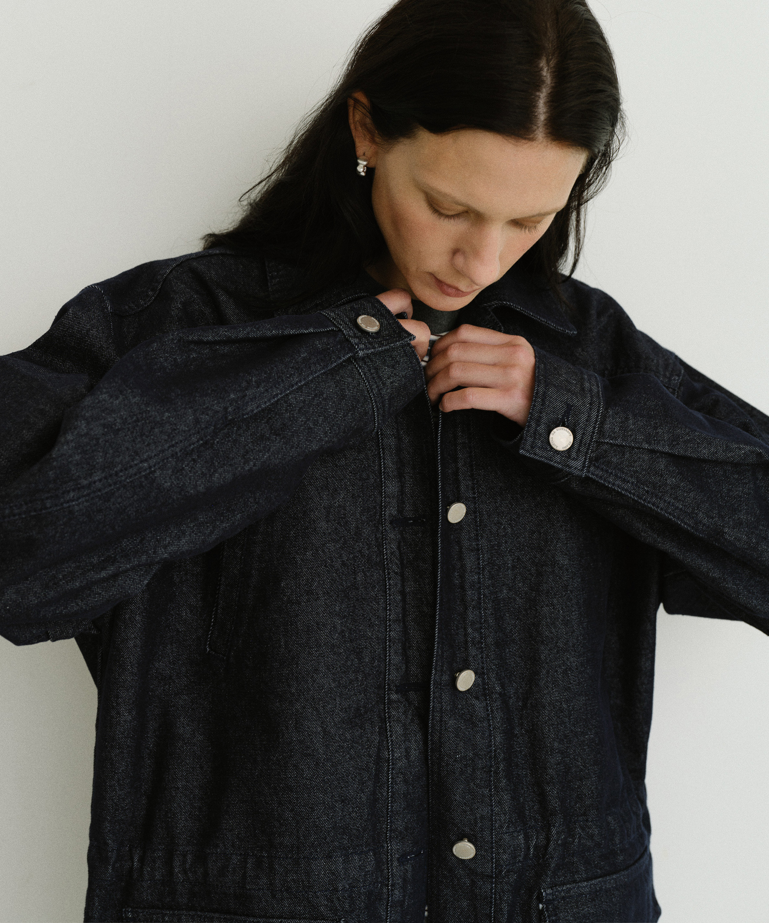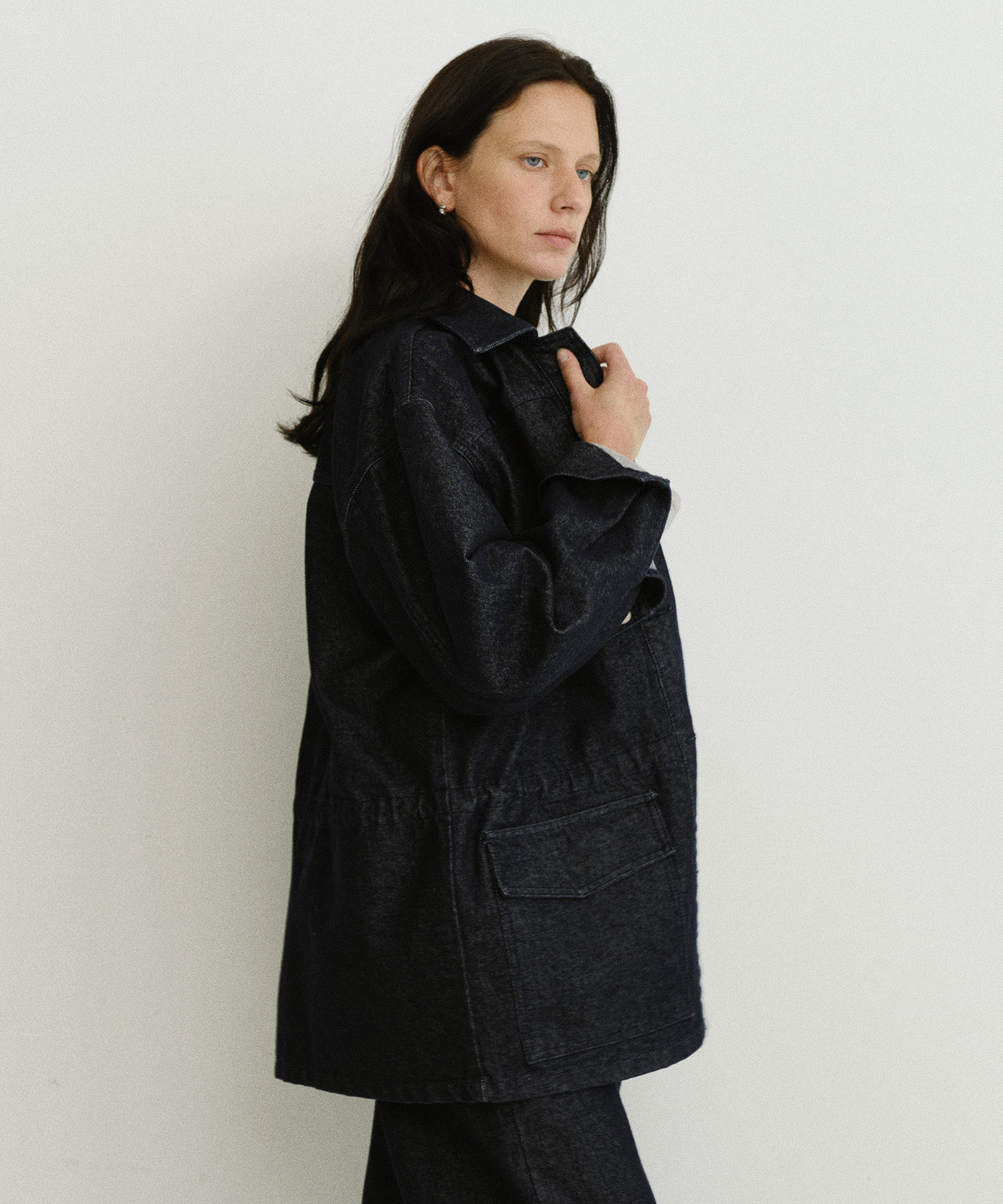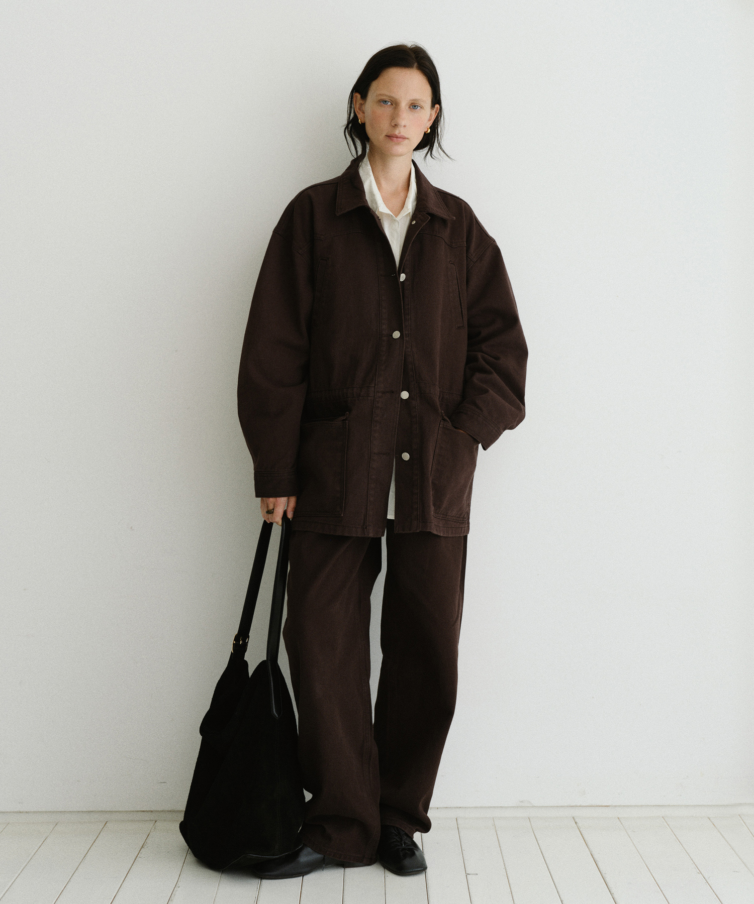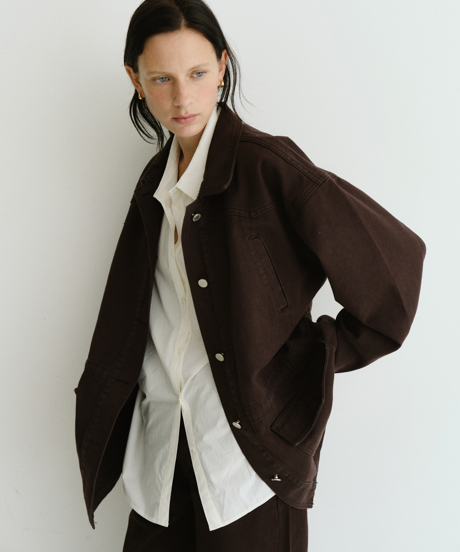 -ゆとりのあるサイズ感と丈感で、同素材のパンツと合わせた洒落感のあるセットアップスタイリングに最適です。