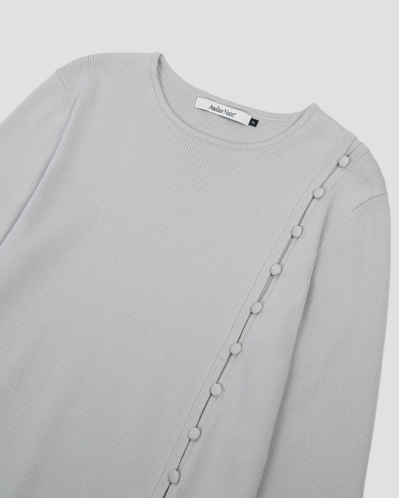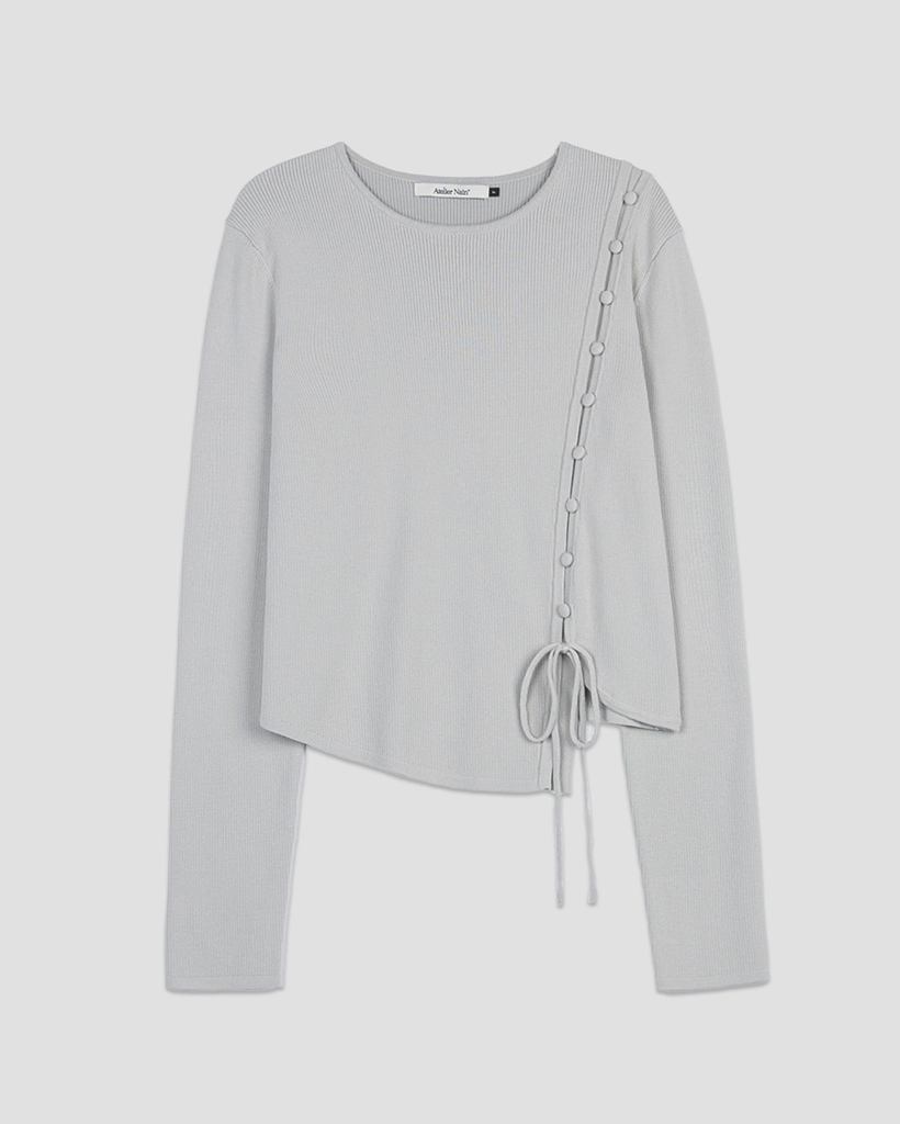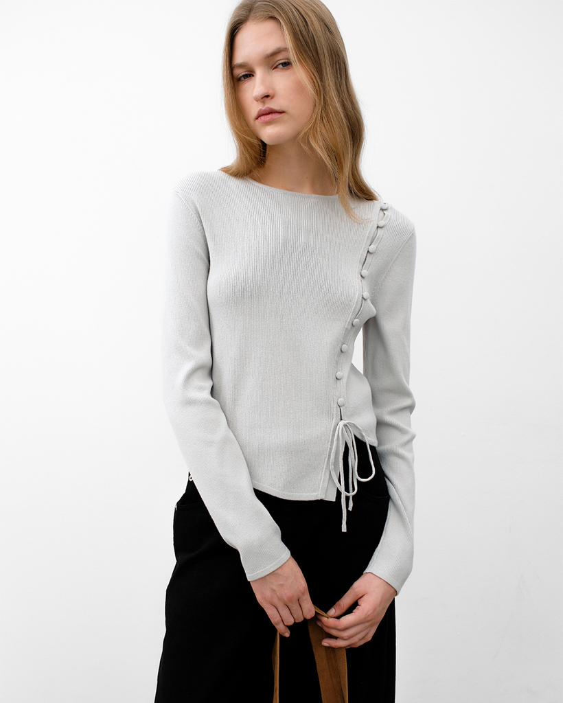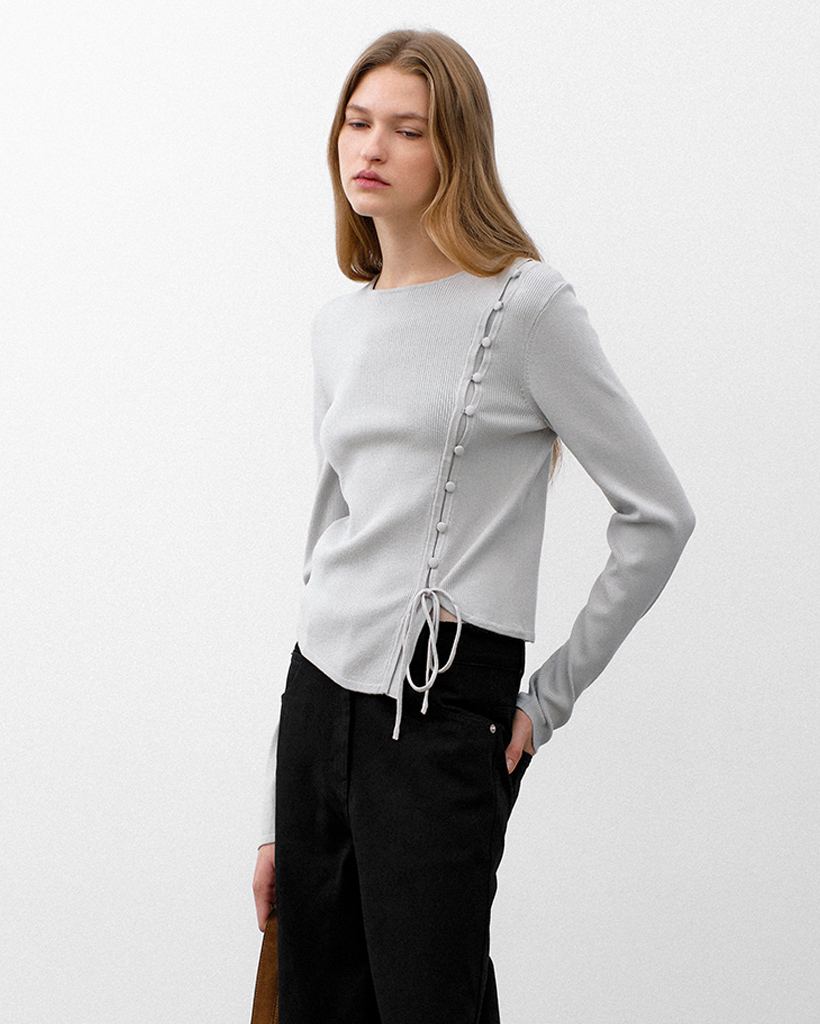 アシンメトリーボタンディテールラインのクロップ丈ニットトップです。