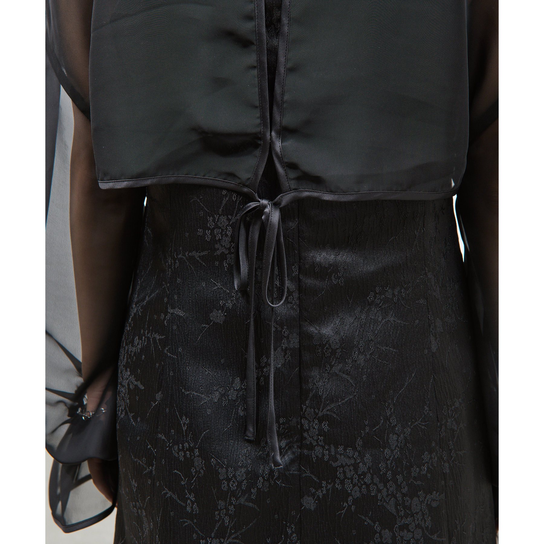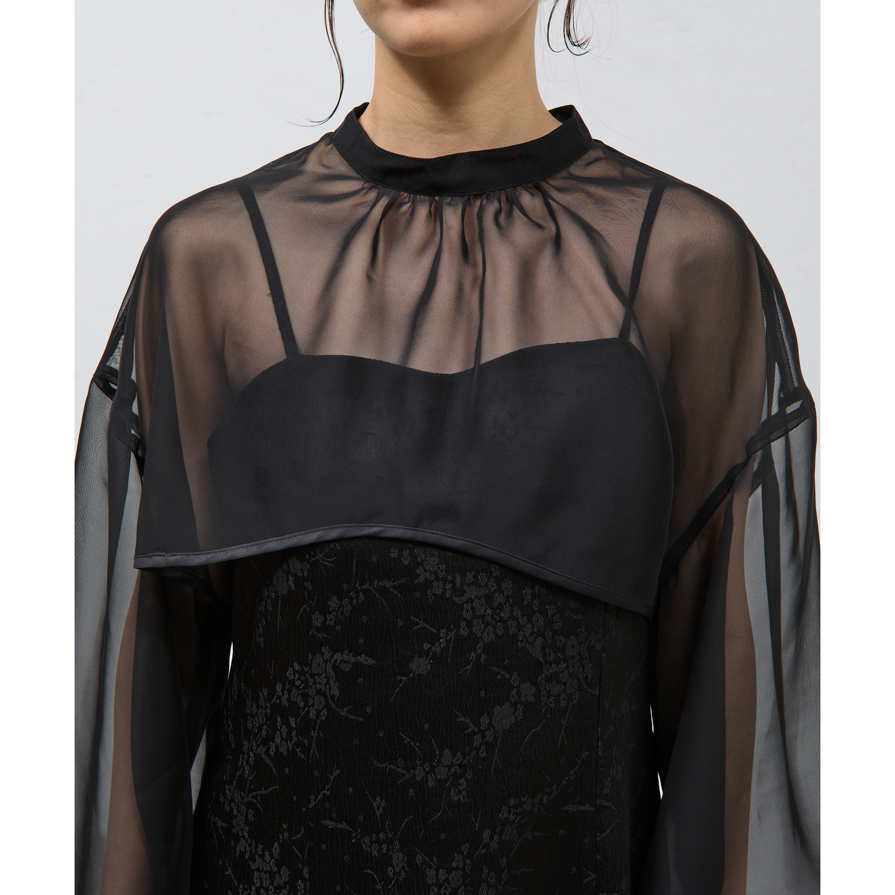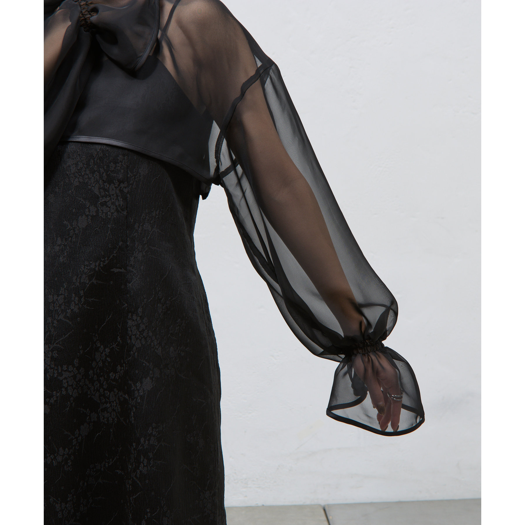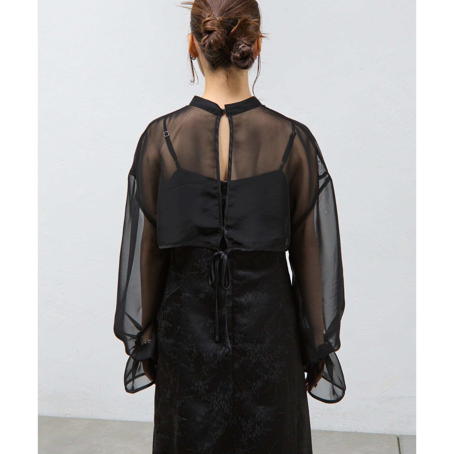 ボレロはキャンディースリーブになっていて、華やかな印象をプラス