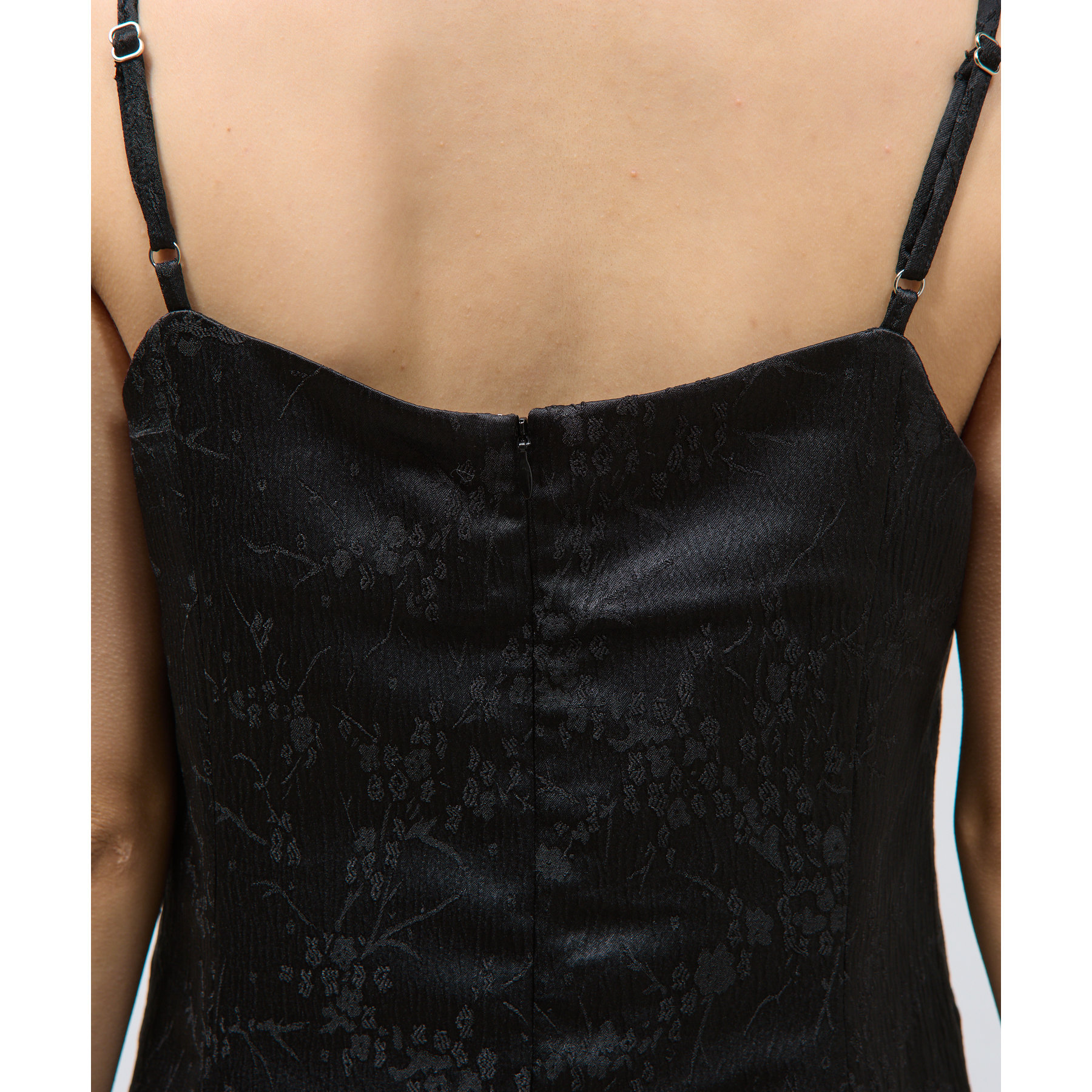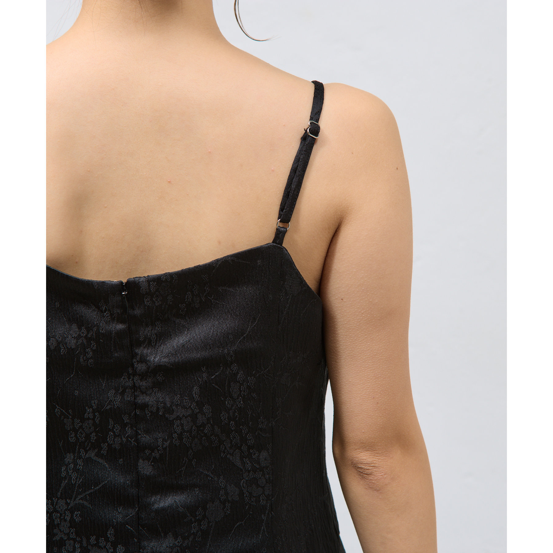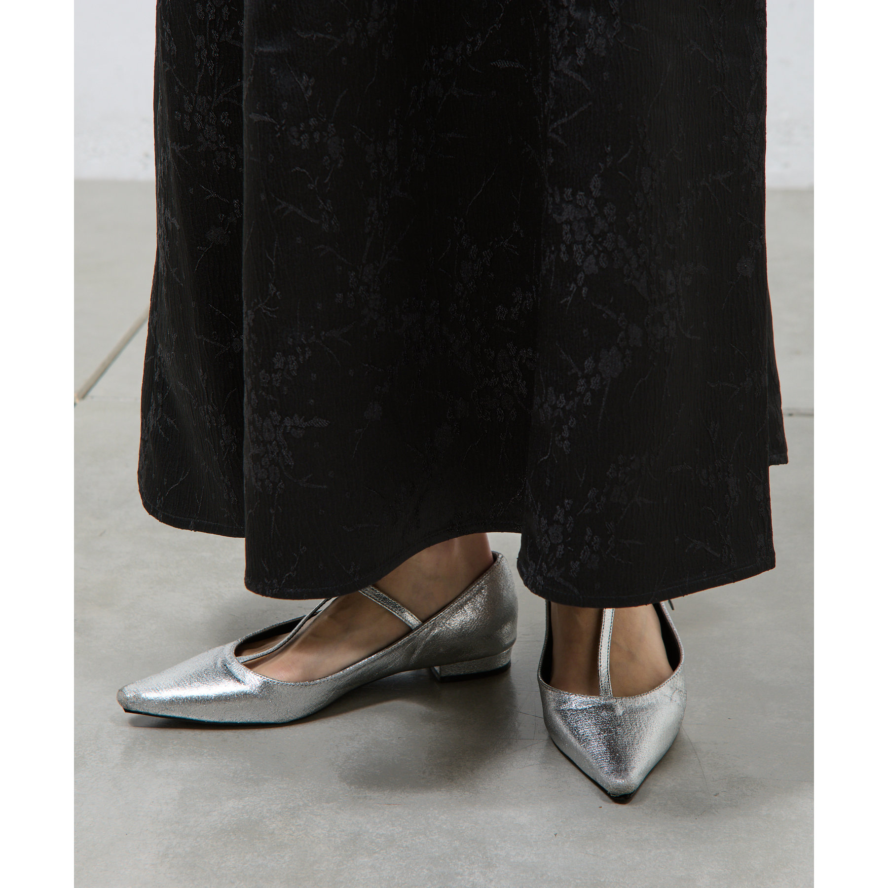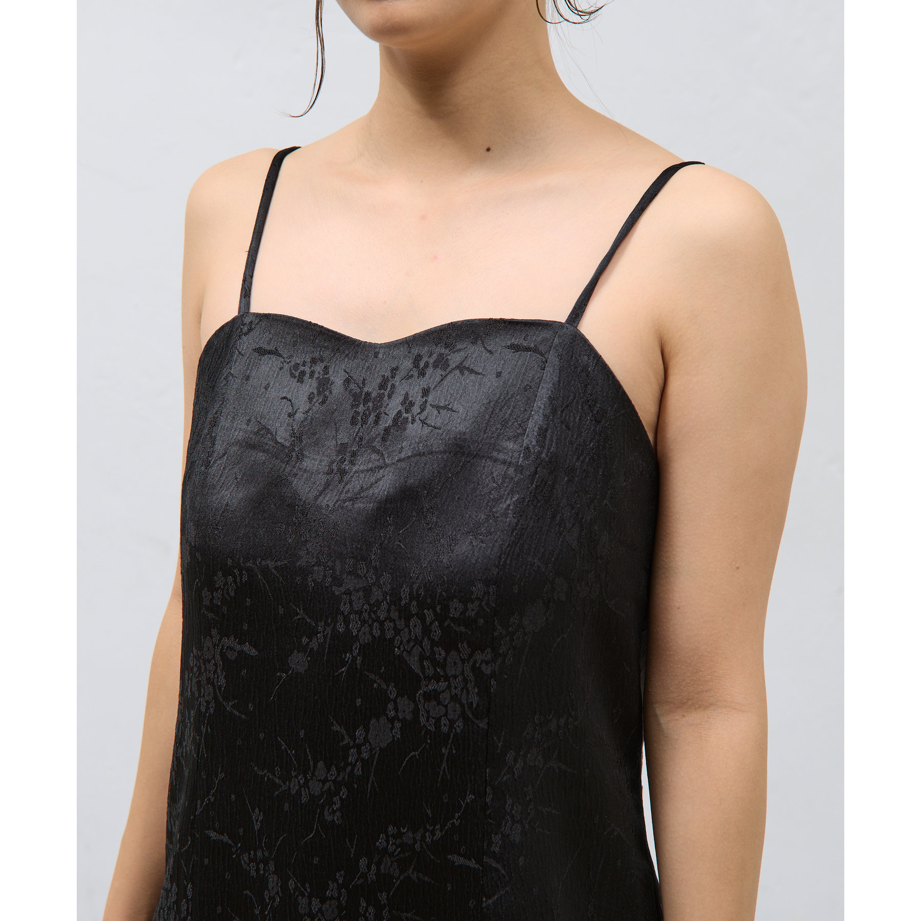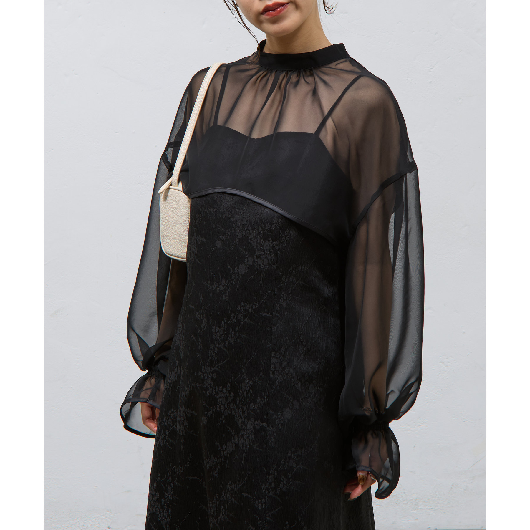 ワンピースはジャガードで、揺れるたびさり気ない光沢感が高見え