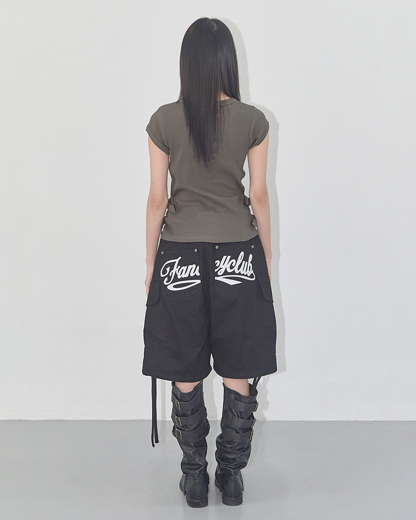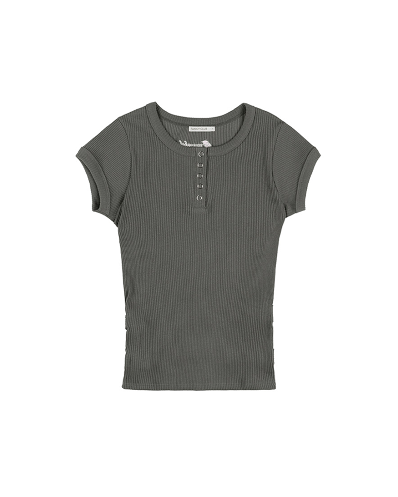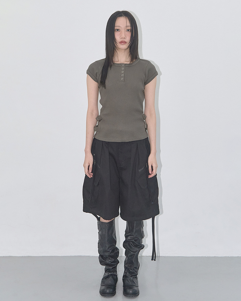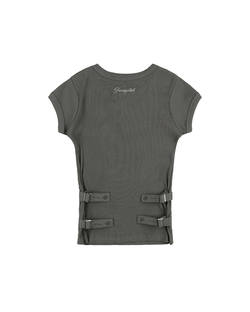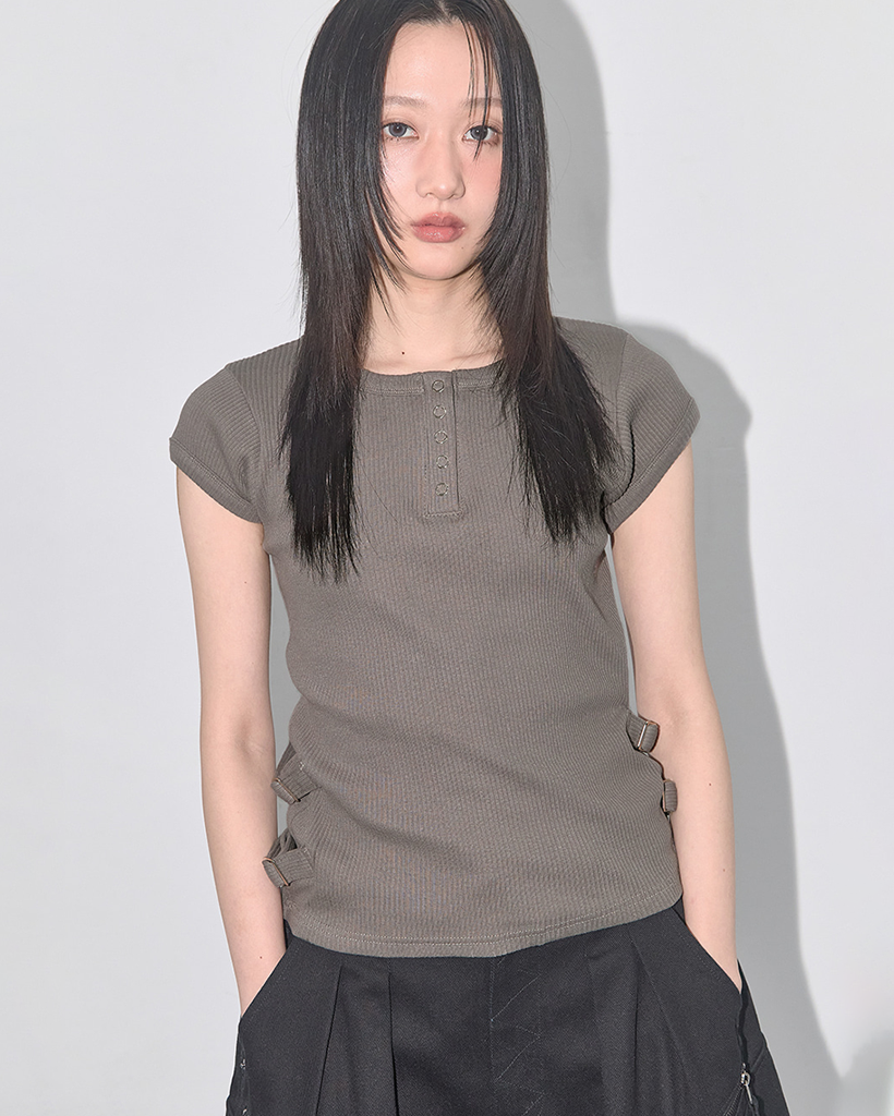 SIDE BUCKLE RIBBED TEE (DARK BEIGE) F25QB110