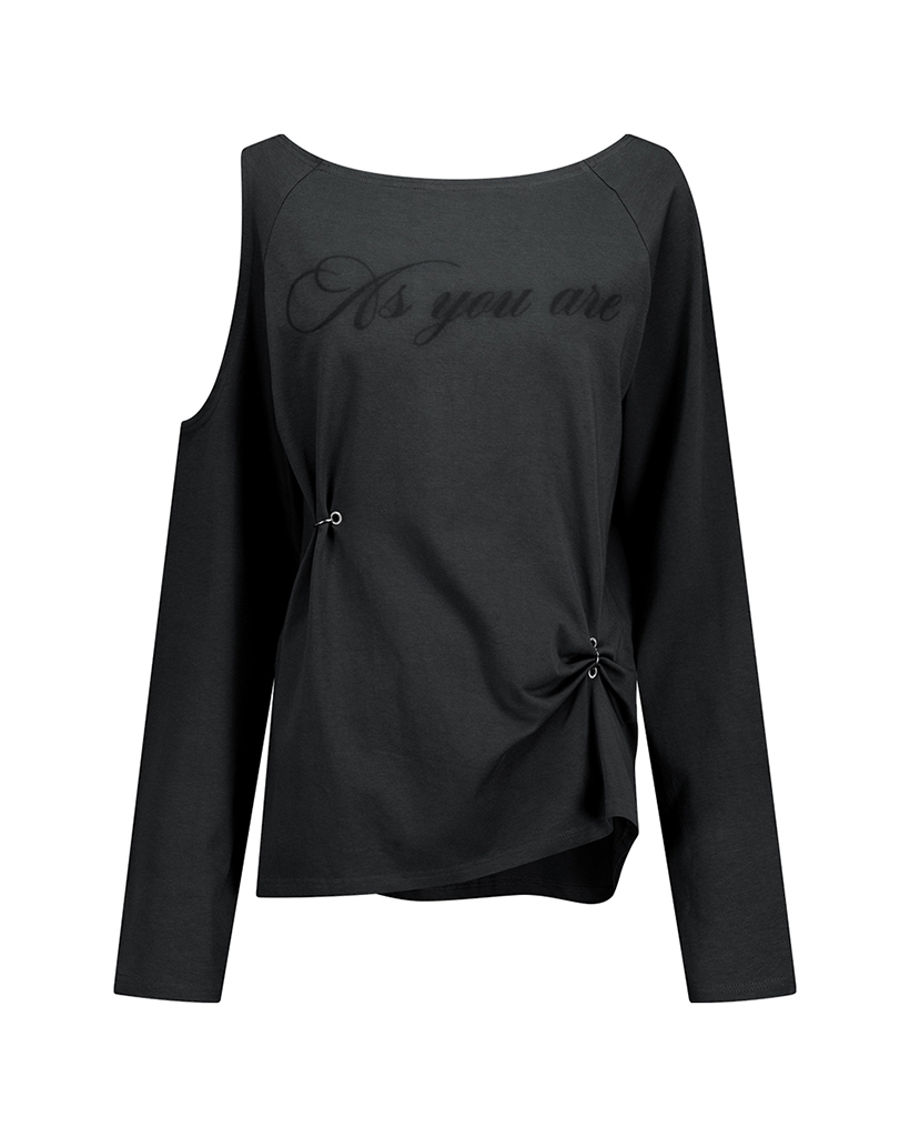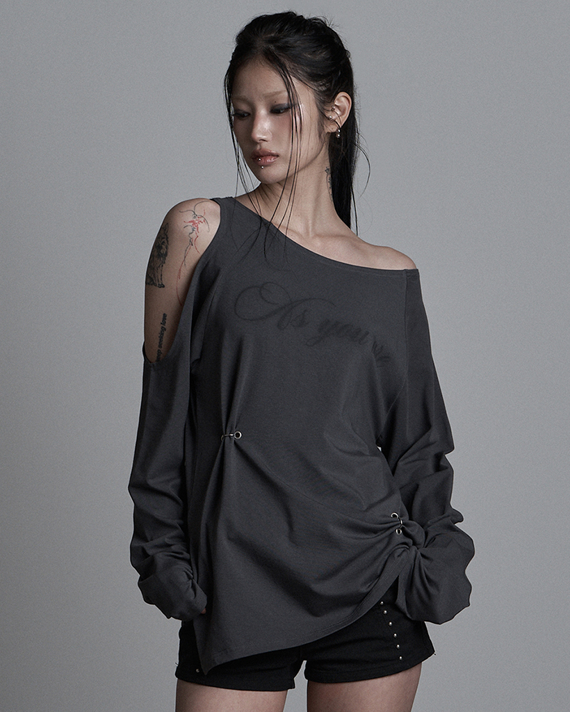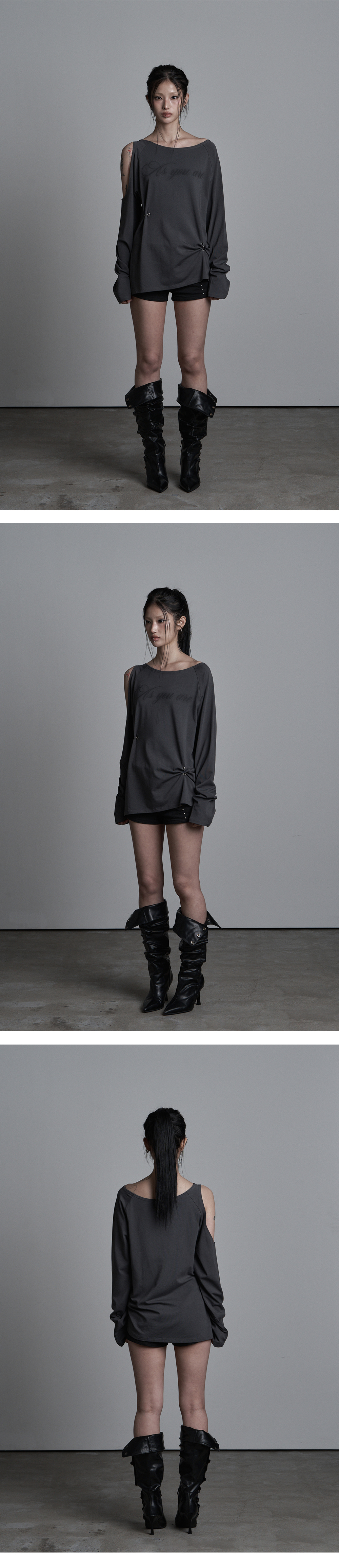 CUT-OUT PIERCING LONG SLEEVE CHARCOAL